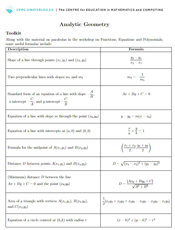 本次分享的欧几里得必背公式覆盖了欧几里得竞赛常考的8大考点。包含:几何,三角学,函数、方程和多项式,数列与级数,数字性质,指数与对数,解析几何等。