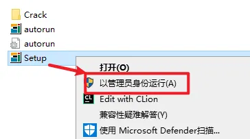 2.打开刚刚解压的文件夹,选中“Setup”右键选择“以管理员身份运行”