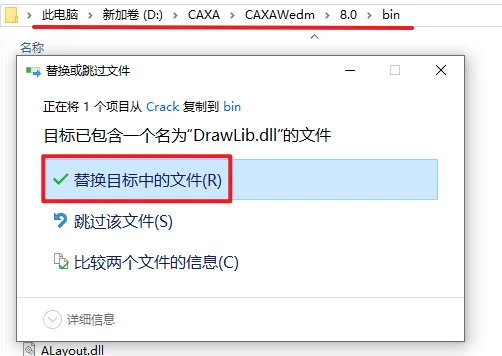 10.粘贴复制的文件到该路径下,选择“替换目标中的文件”