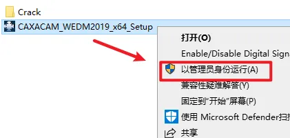 2.打开刚刚解压的文件夹,选中“CAXACAM_WEDM2019_x64_Setup”右键选择“以管理员身份运行”
