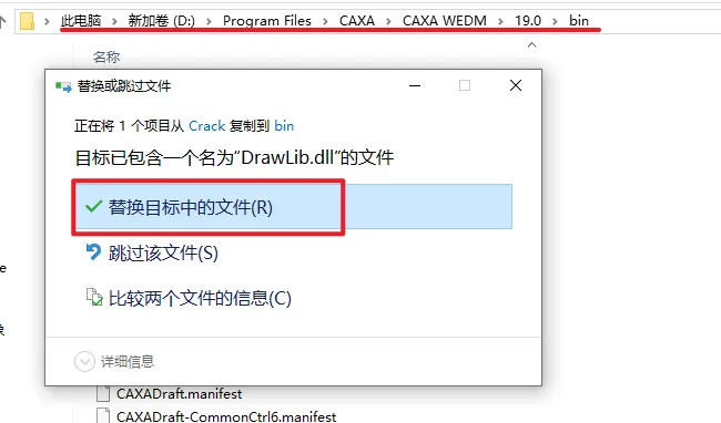 10.粘贴复制的文件到该路径下,选择“替换目标中的文件”
