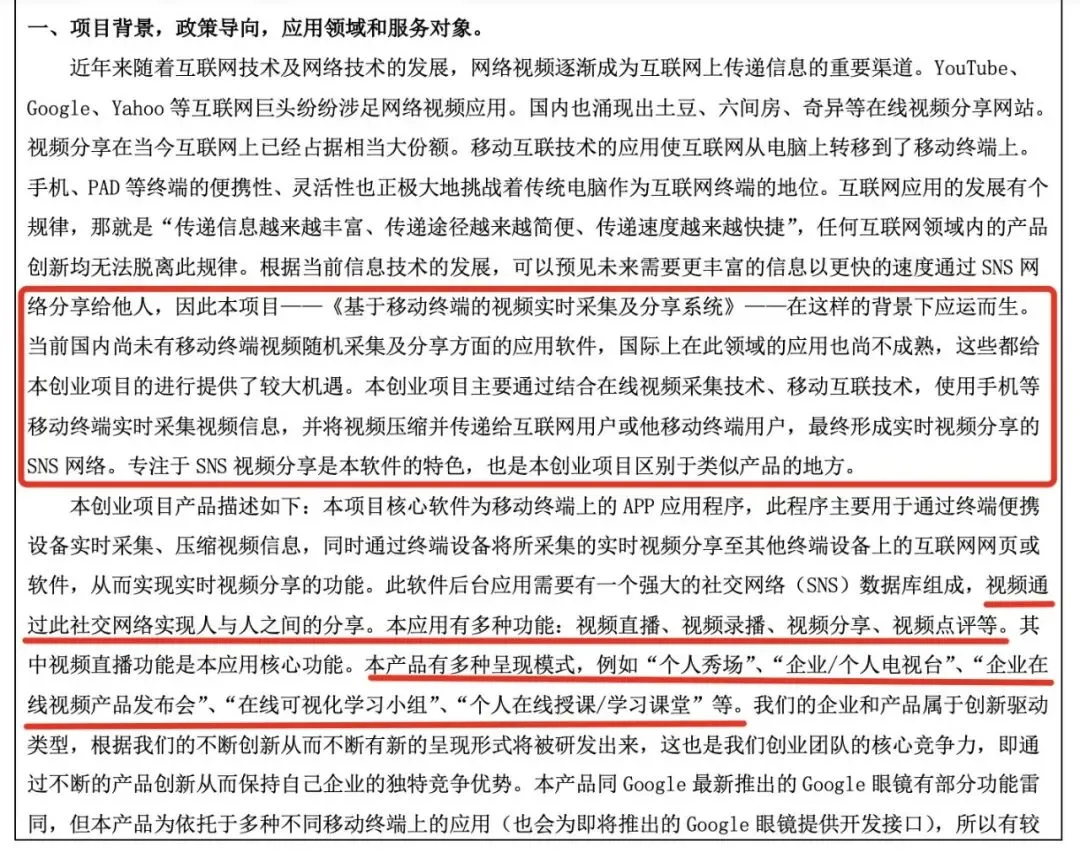 有一天,学院发通知说上海市研究生创业基金委员会有创业基金可以申请。于是,我兴奋地花一晚上写了一份创业申请书《基于移动终端的移动实时视频和分享系统》。在申请书中,我提出了一款手机端视频直播APP—SeeU。用户可以拿着手机随时随地分享自己看到的一切给粉丝(例如,旅游风景、探险、足球比赛、新品发布会、跳舞等等),还可以录播、点评等等。当时 “直播” 这个词还没普及到大家耳熟能详,所以只能表示成 “分享眼睛给他人”。