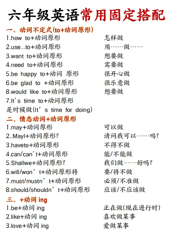 16页六年级英语常用固定搭配超全汇总!可打印~