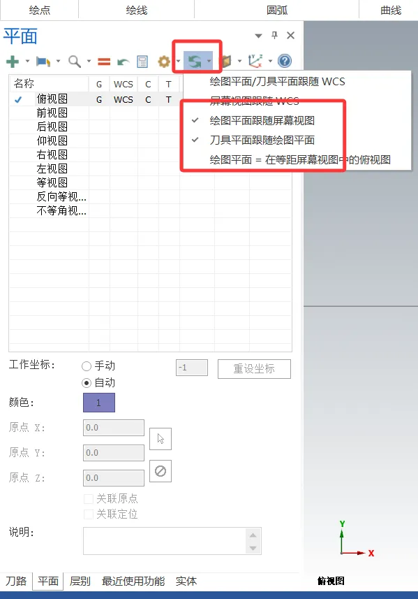 把绘图平面跟随屏幕视图打勾就好了,这样改变视图,也跟着改了