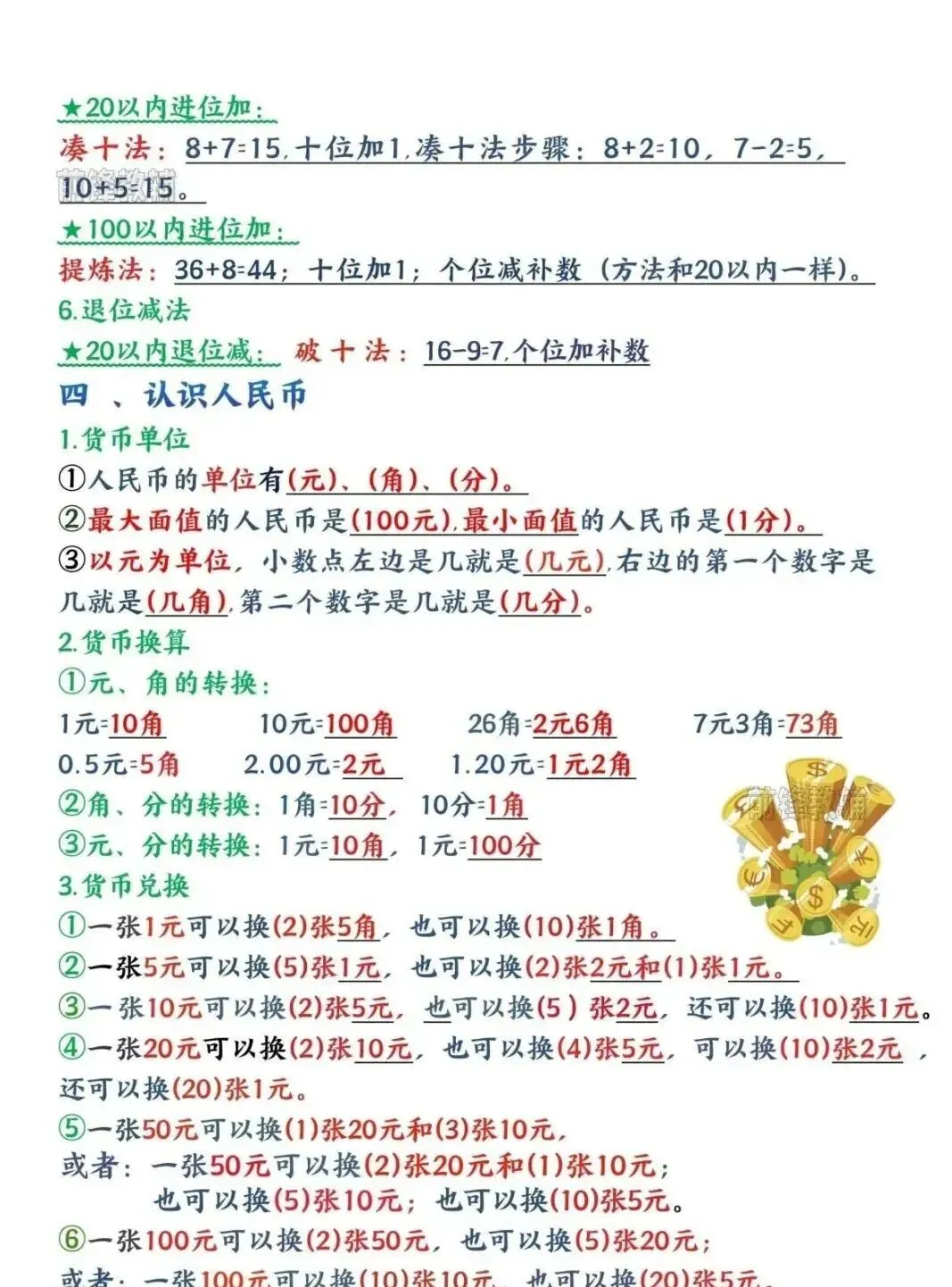 小学数学一年级下册《全册重点知识归纳》|可下载打印
