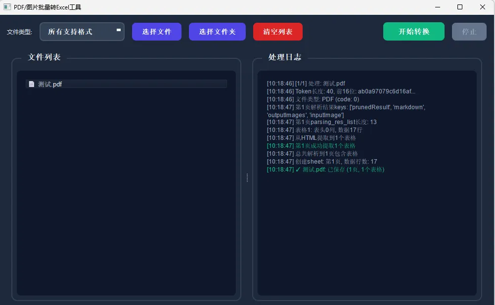 PDF 文件:支持多页 PDF,自动识别每页中的表格 -
