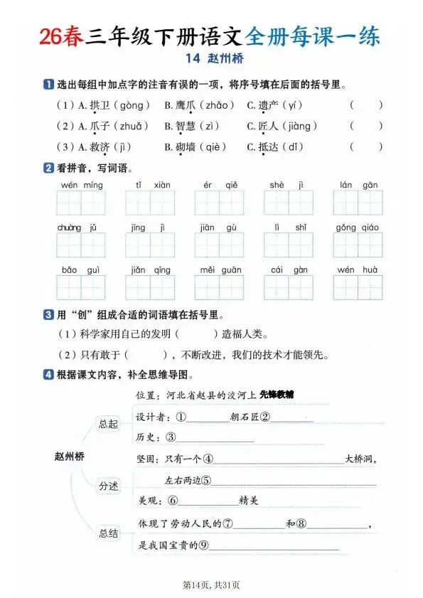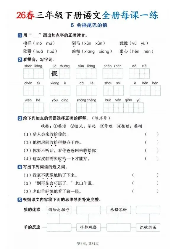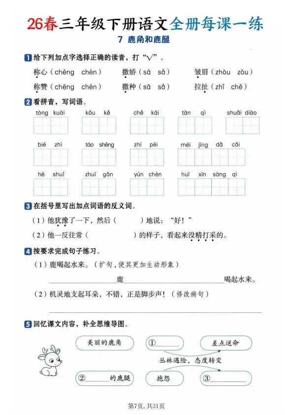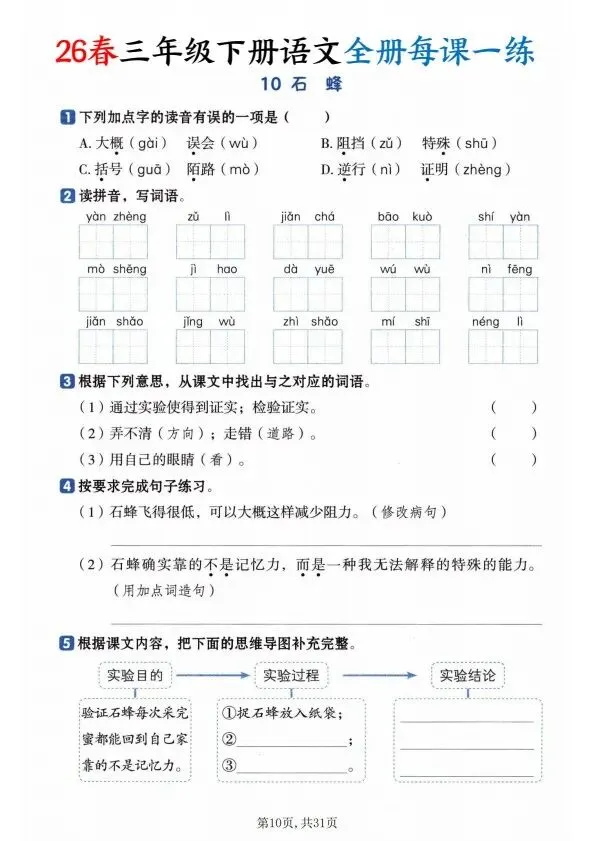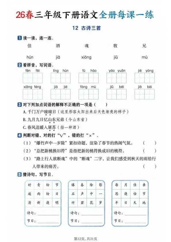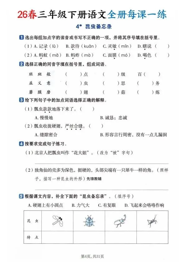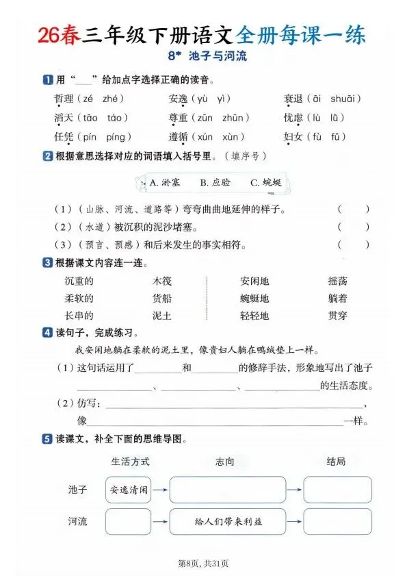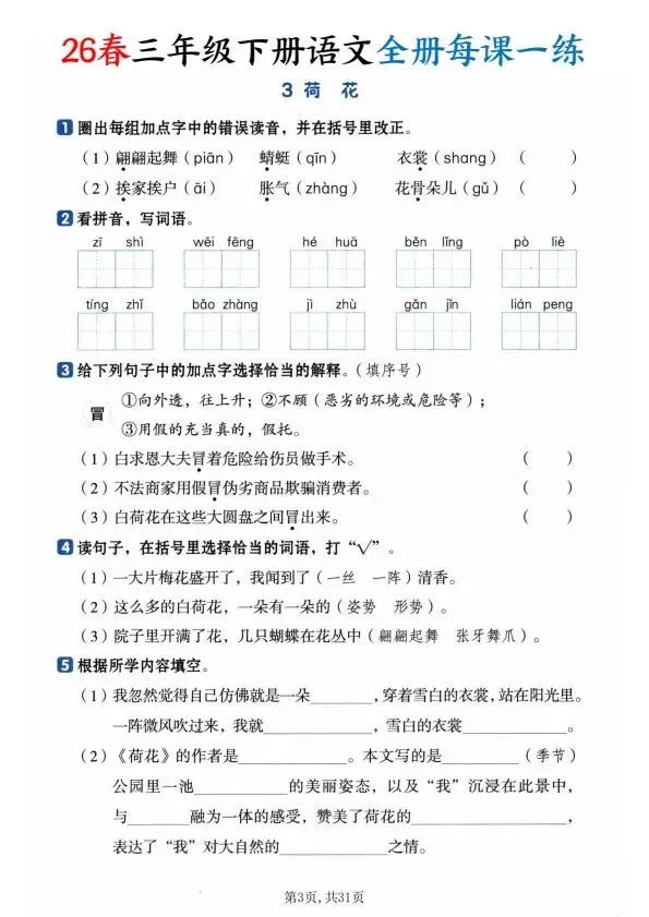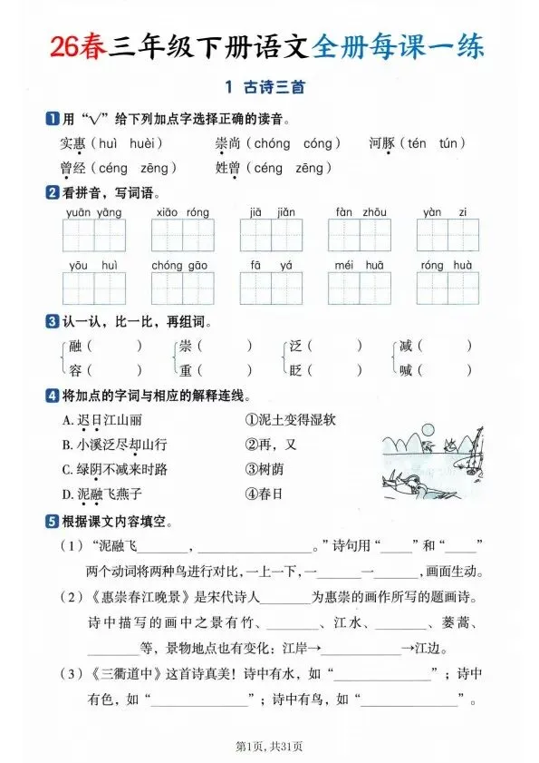 26春三年级下册语文全册一课一练(完整电子版可打印)