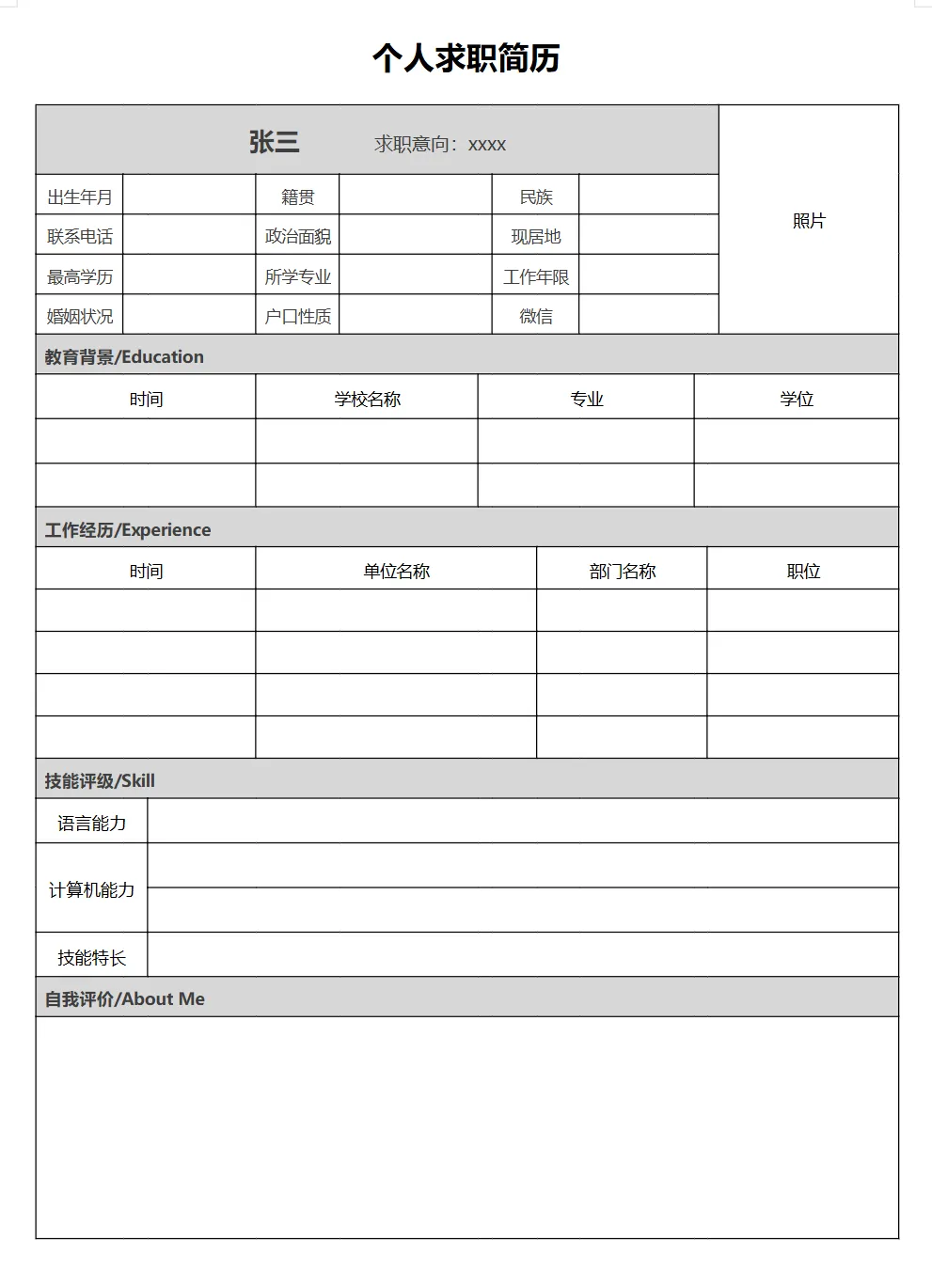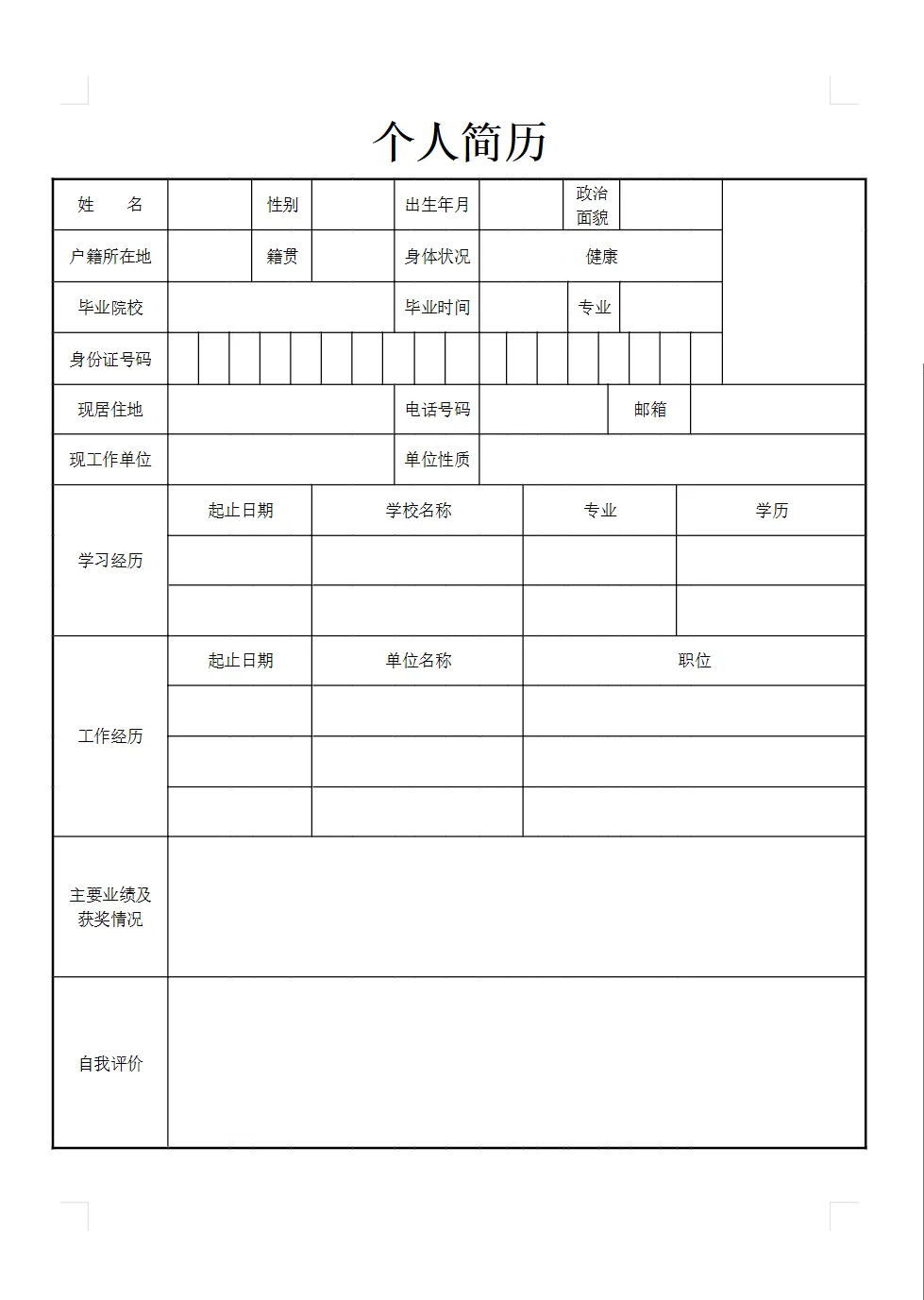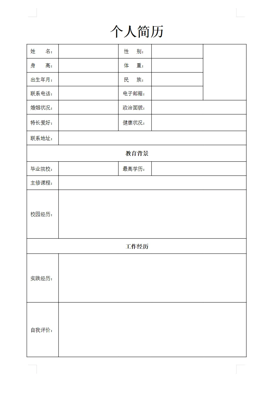 个人简历模板(word电子版可编辑打印)