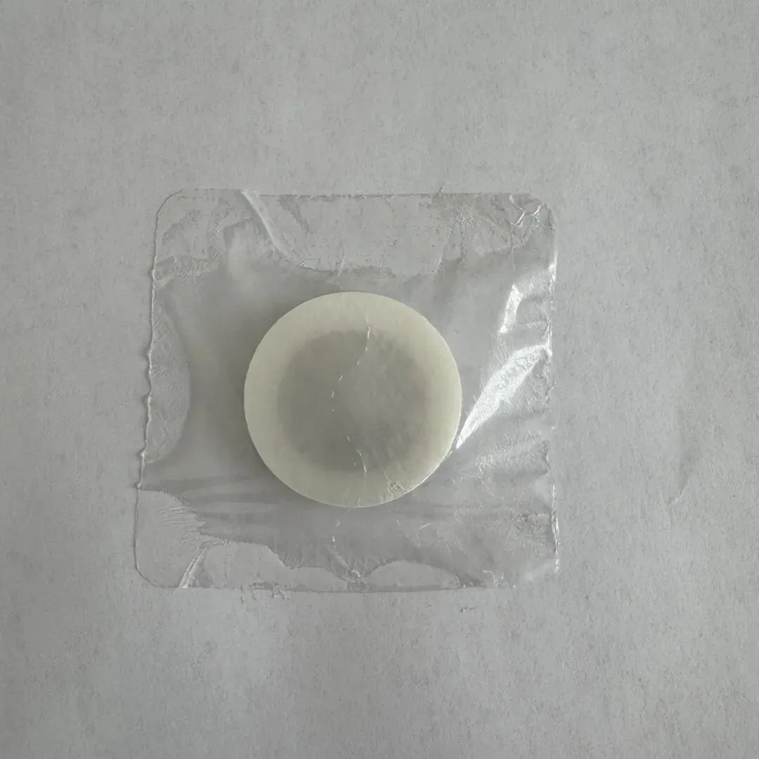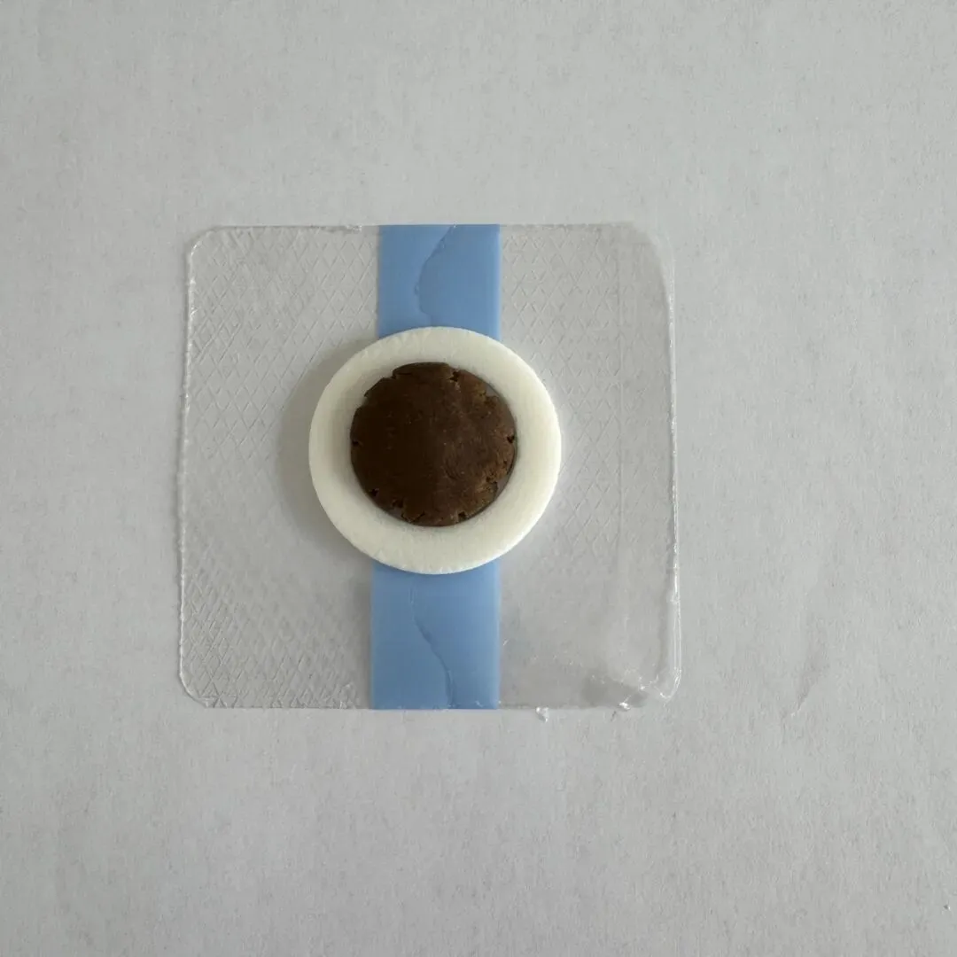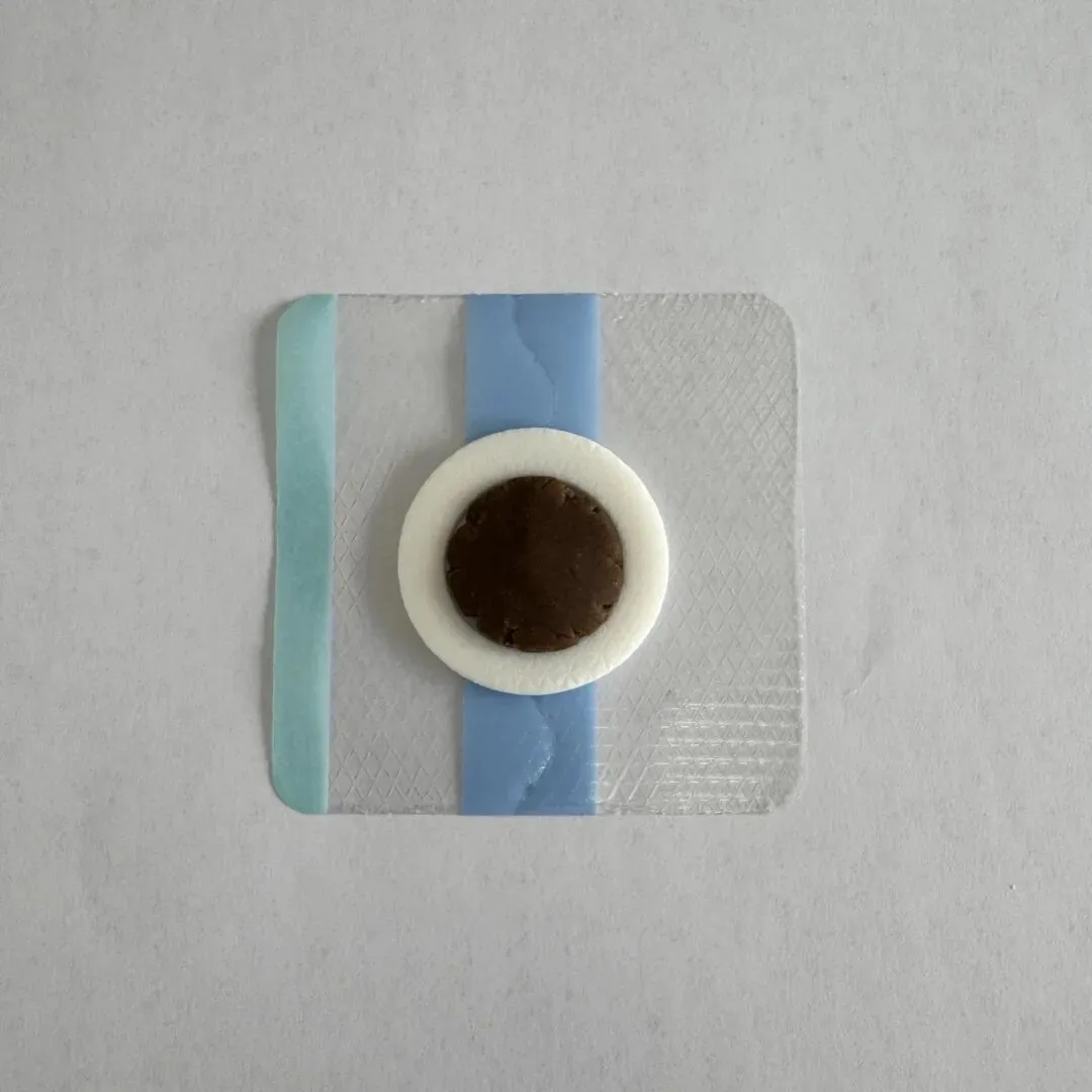 撕开贴敷纸,将药丸附着于敷贴纸中心圆环内。