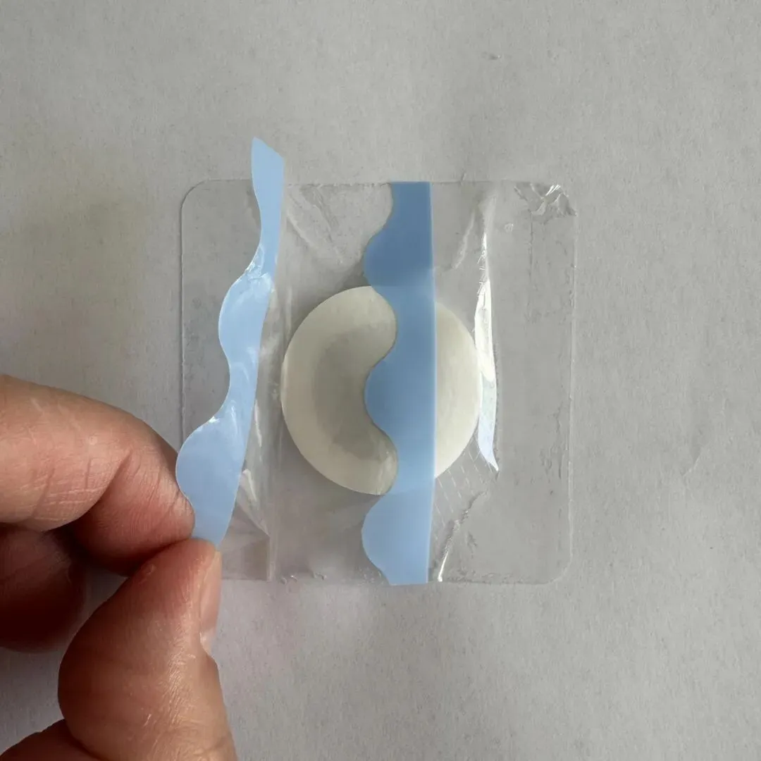 贴敷于具体部位后,将两侧的蓝色标记薄膜撕去。