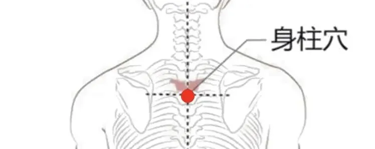 颈部最大突起(第7颈椎棘突)下方第三个突起(第3胸椎棘突)下。