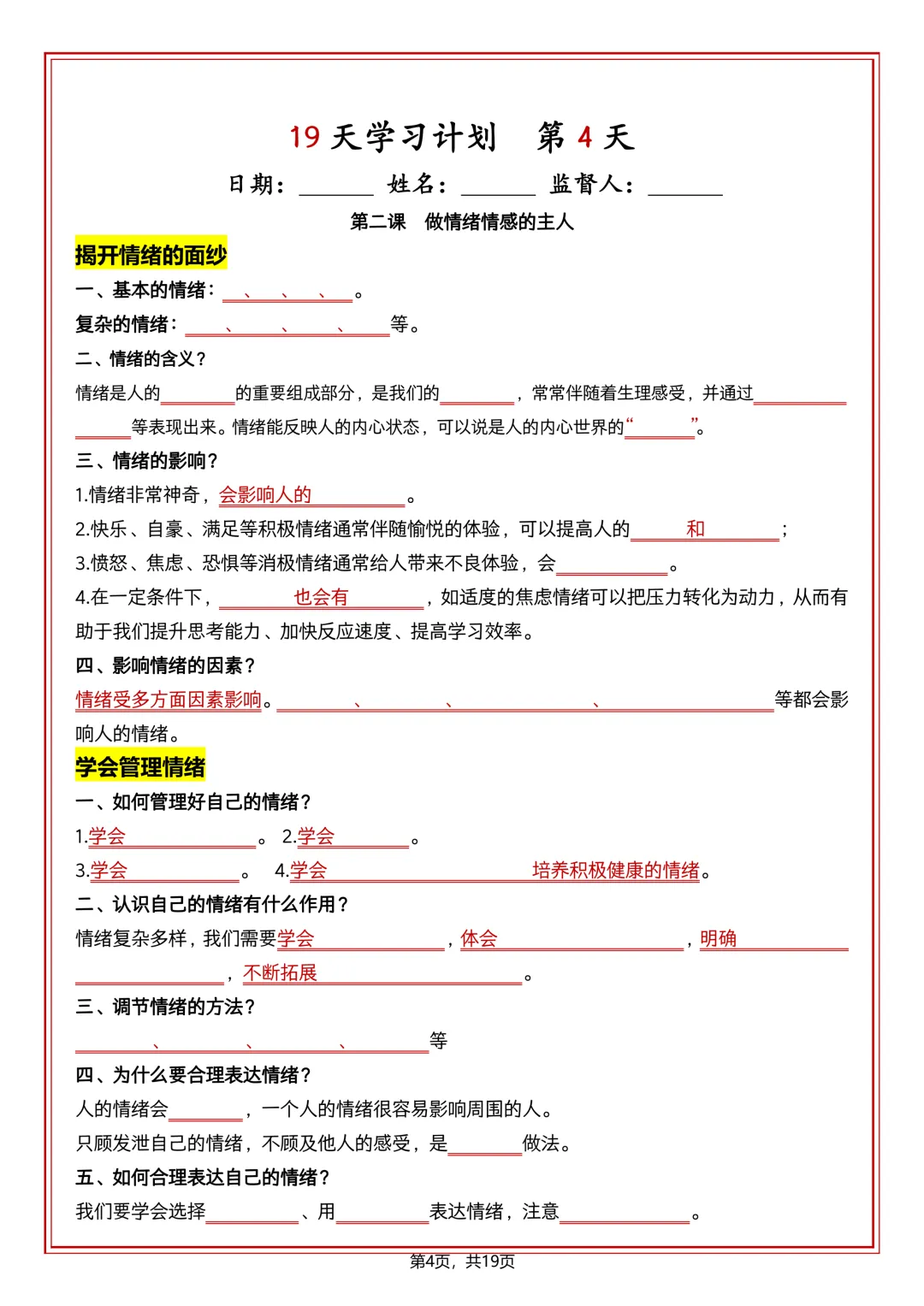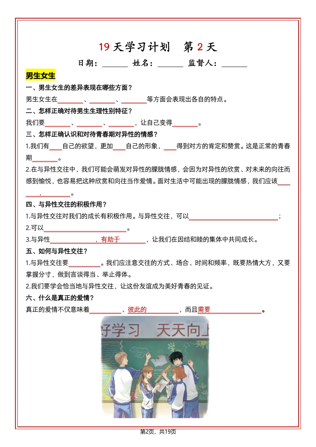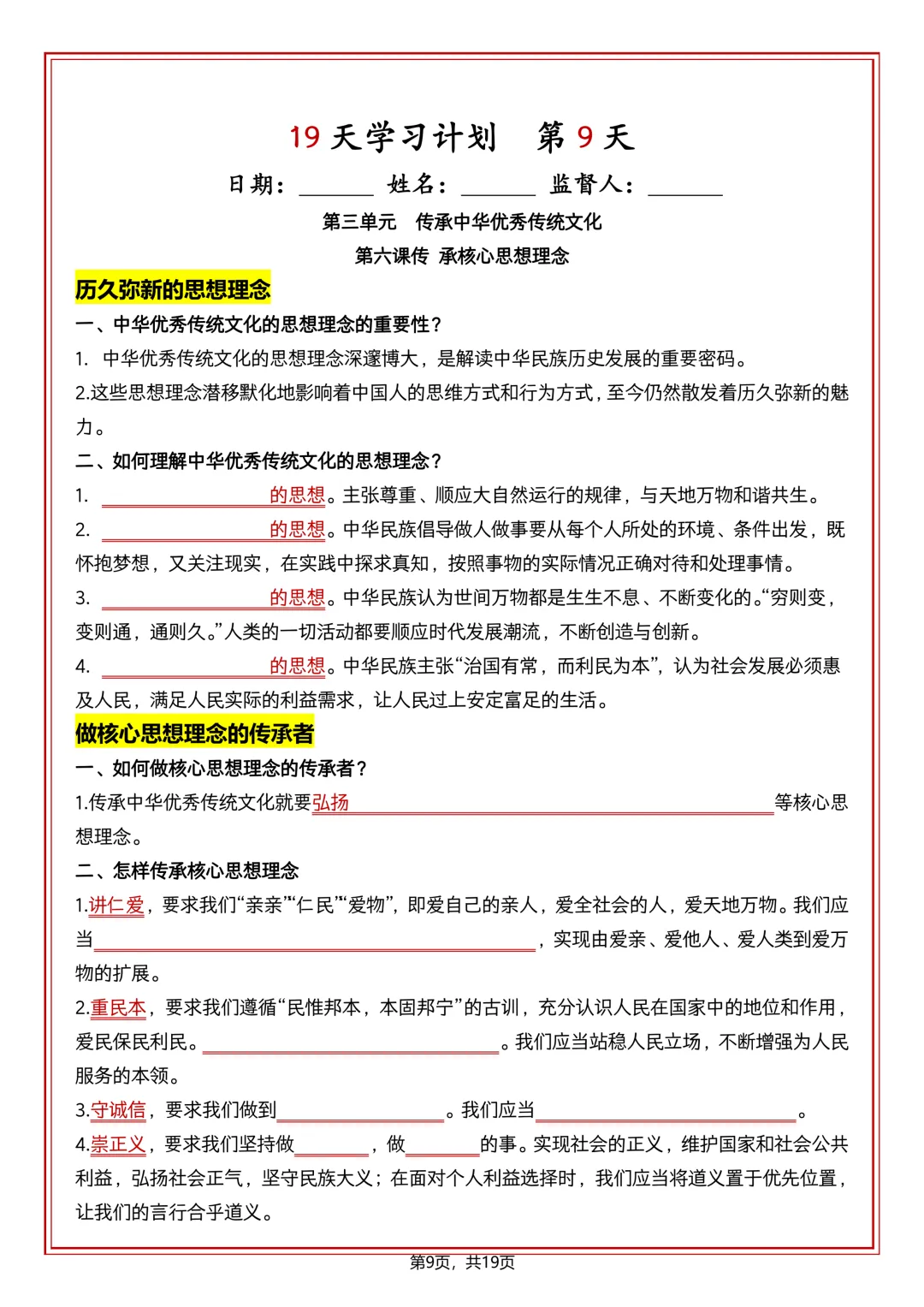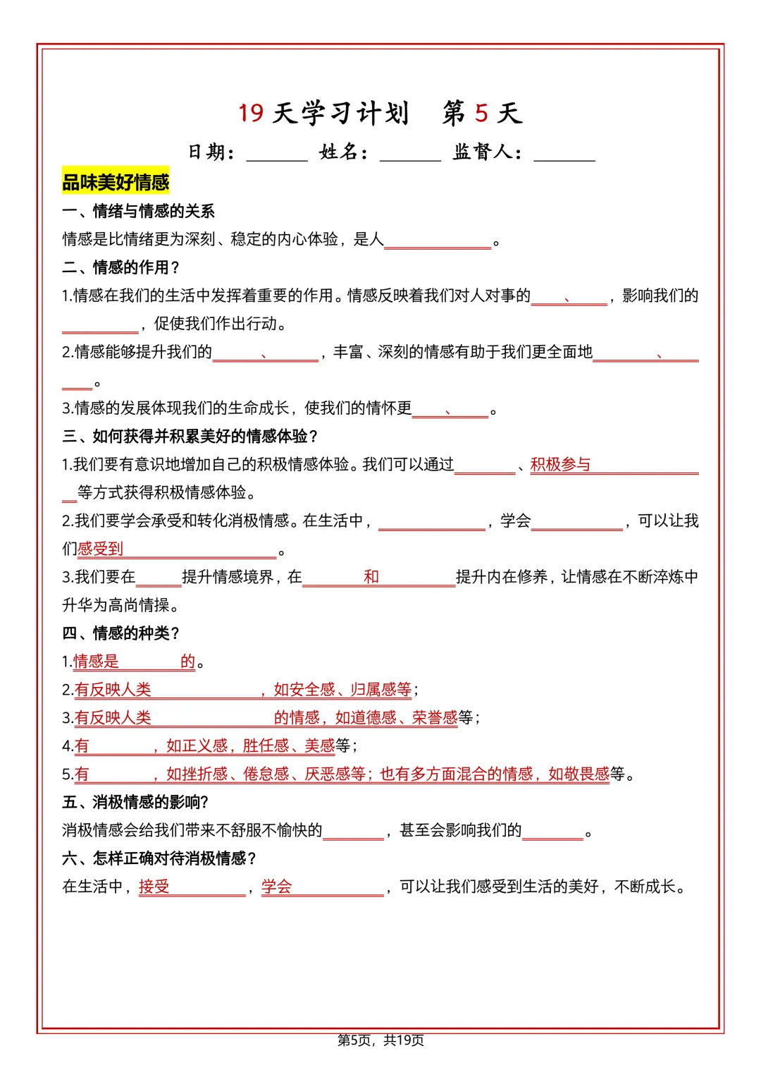 七下道法 19 天学习计划(知识清单)可打印!