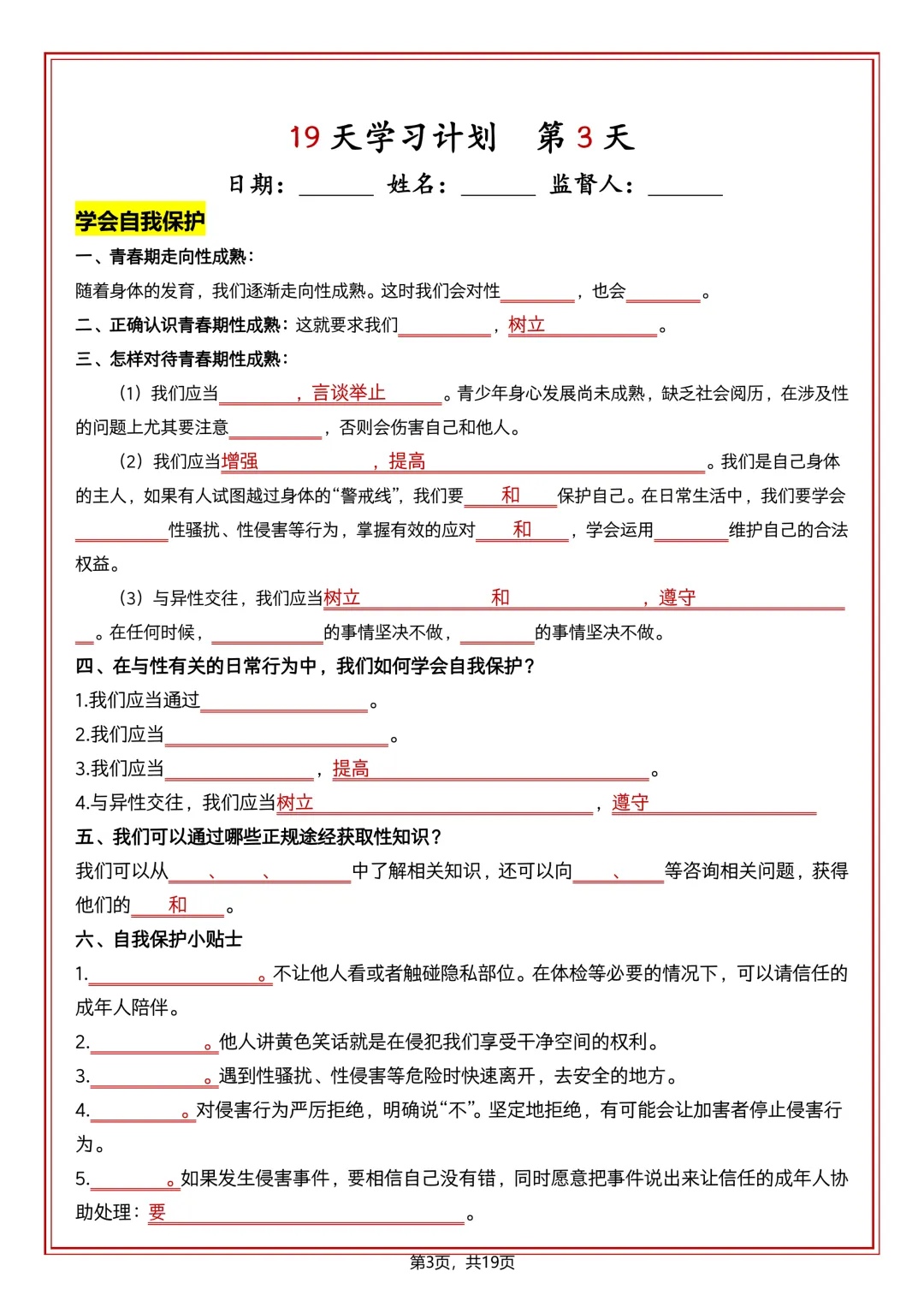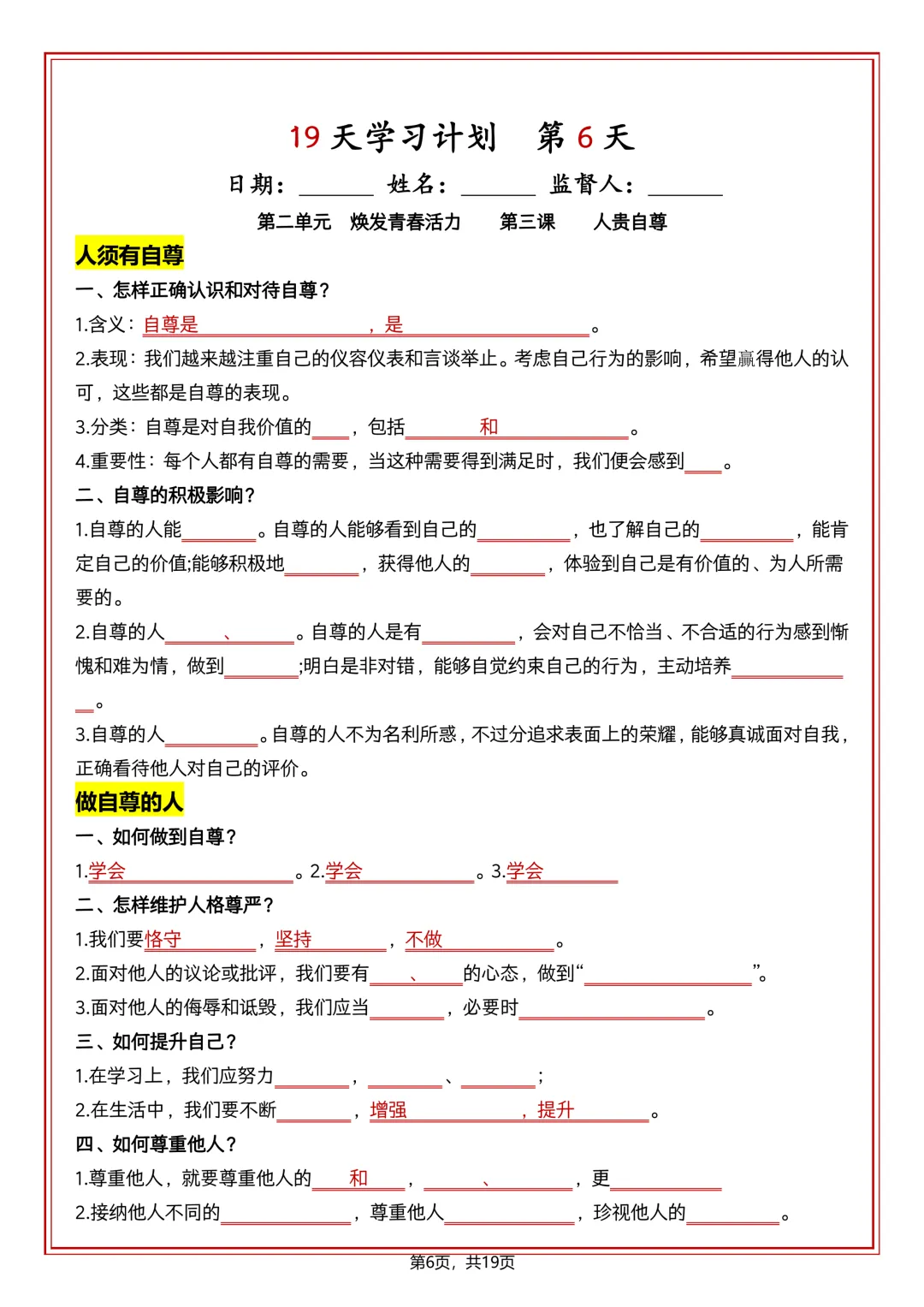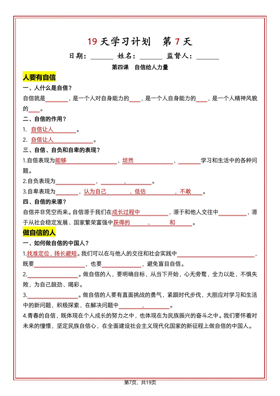 本站文章均为手工撰写未经允许谢绝转载:夜雨聆风 » 七下道法 19 天学习计划(知识清单)可打印!