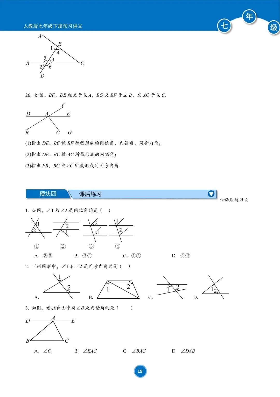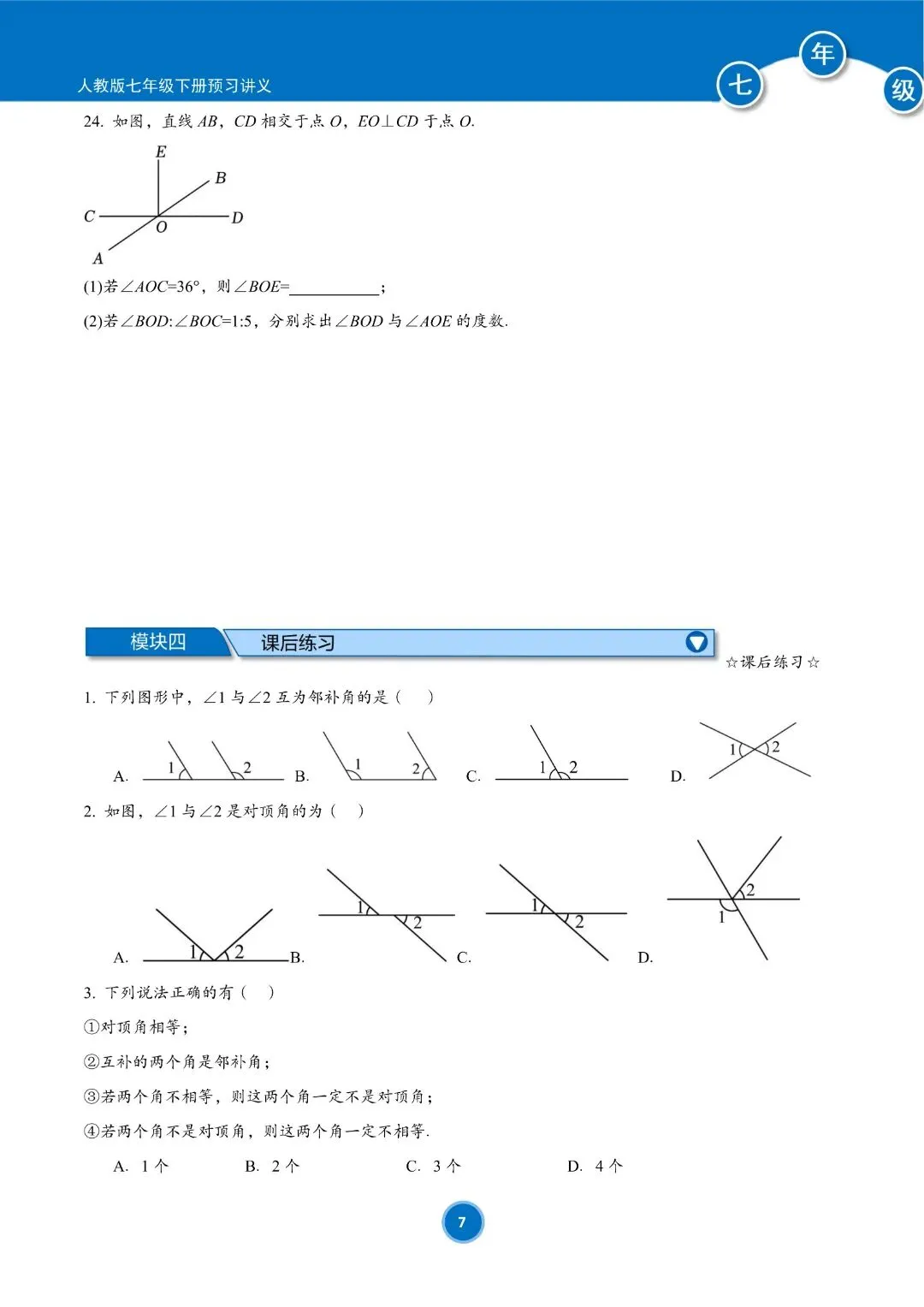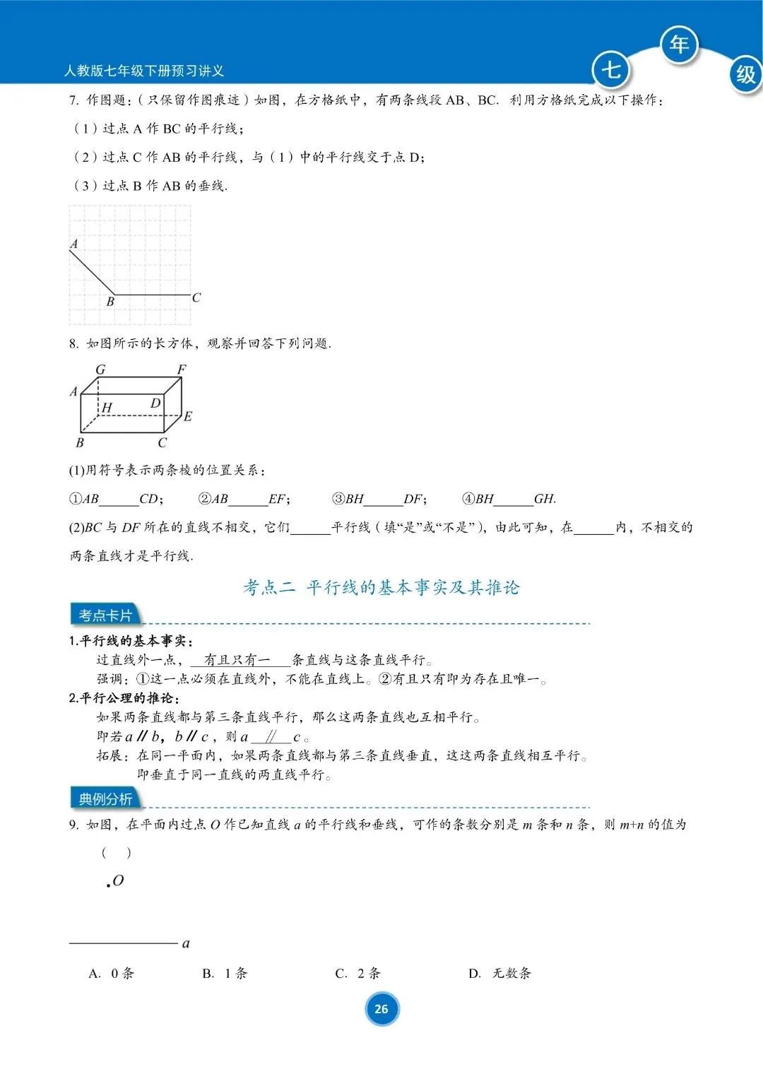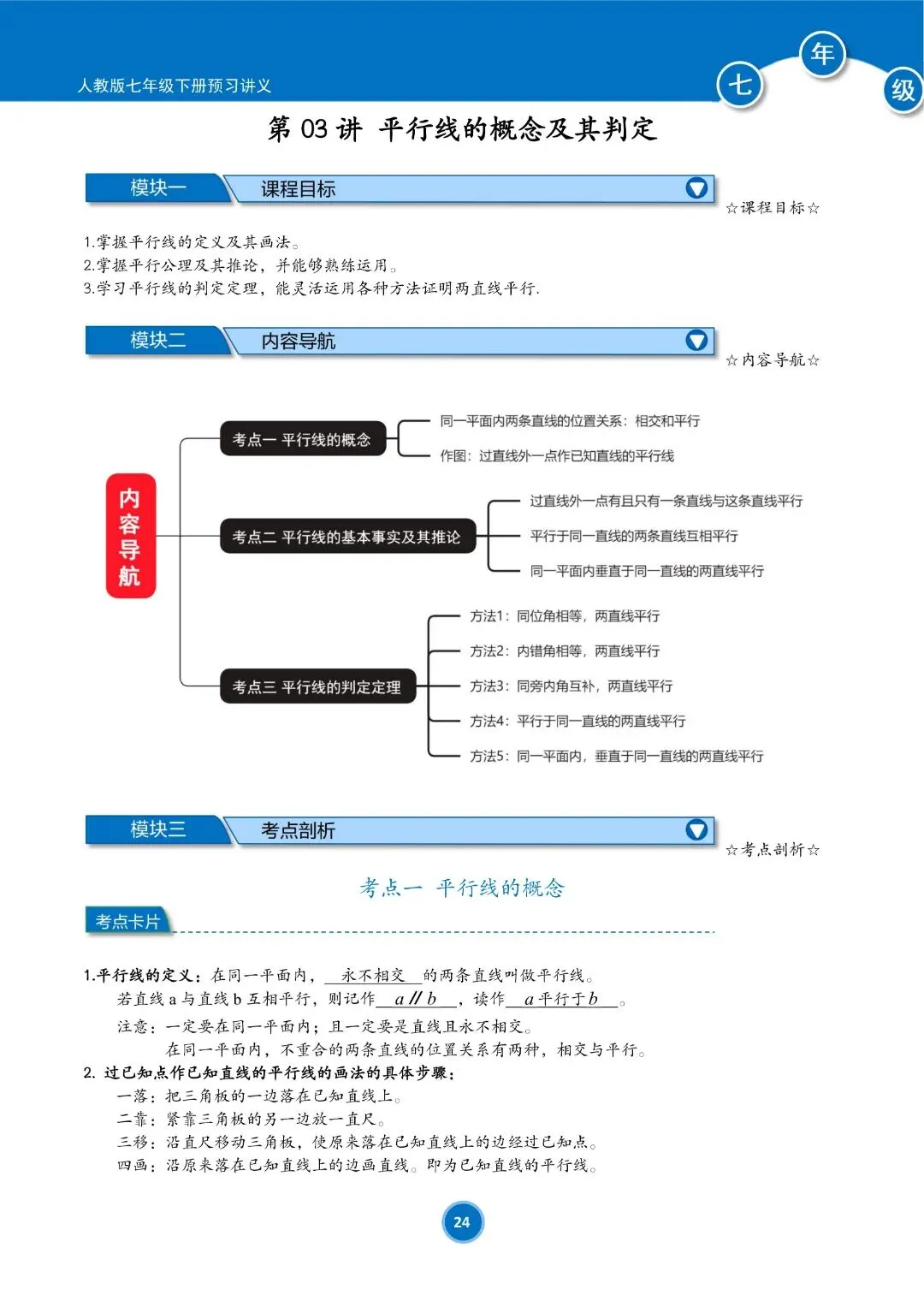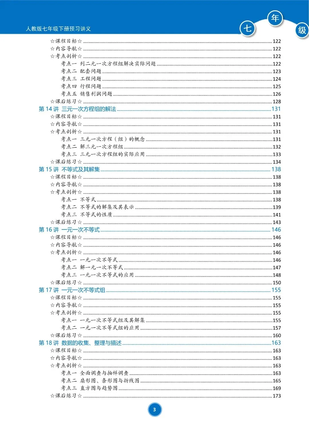 人教版七年级下册数学预习讲义(学生版)共184页,完整电子版可下载打印