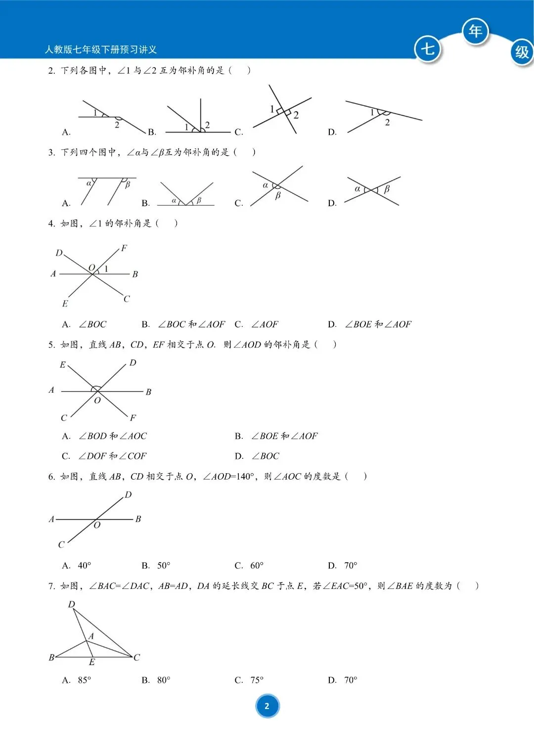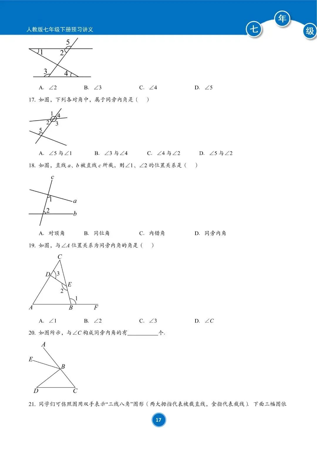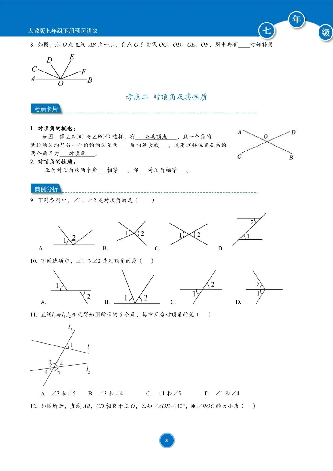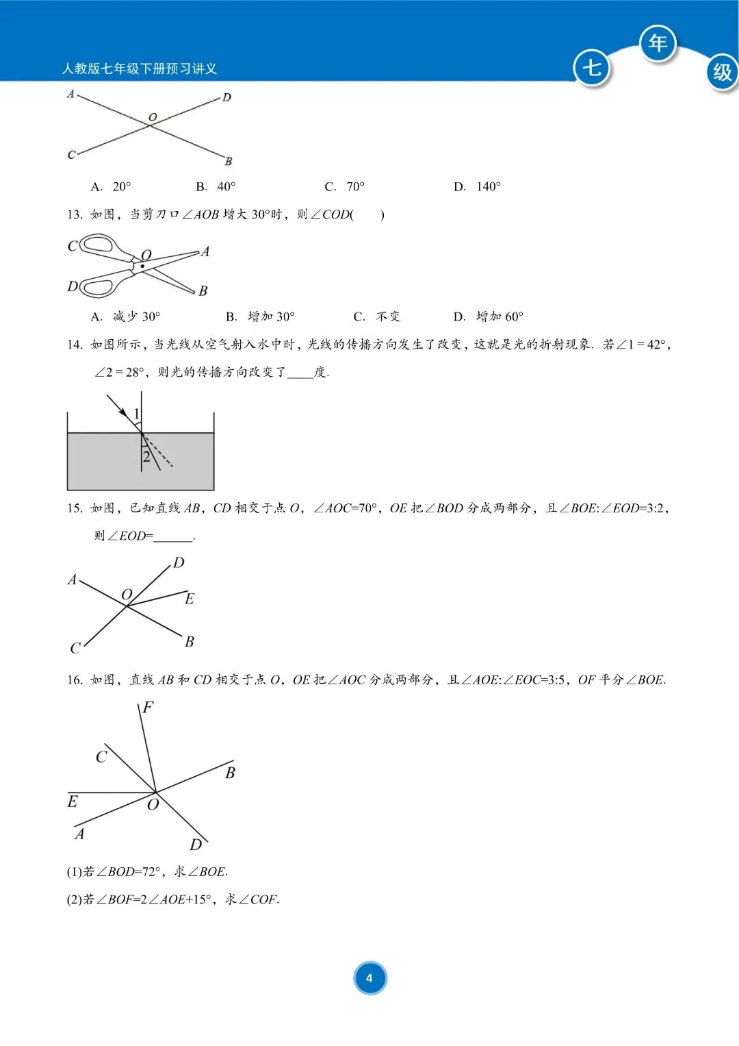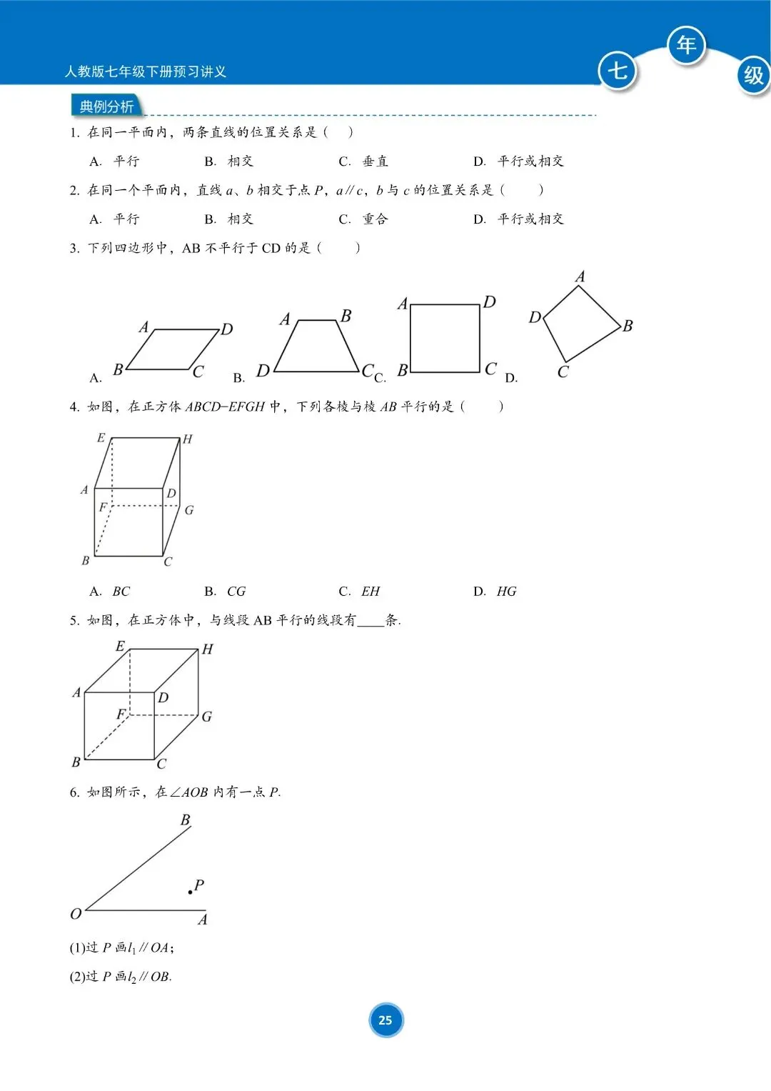人教版七年级下册数学预习讲义(学生版)共184页,完整电子版可下载打印