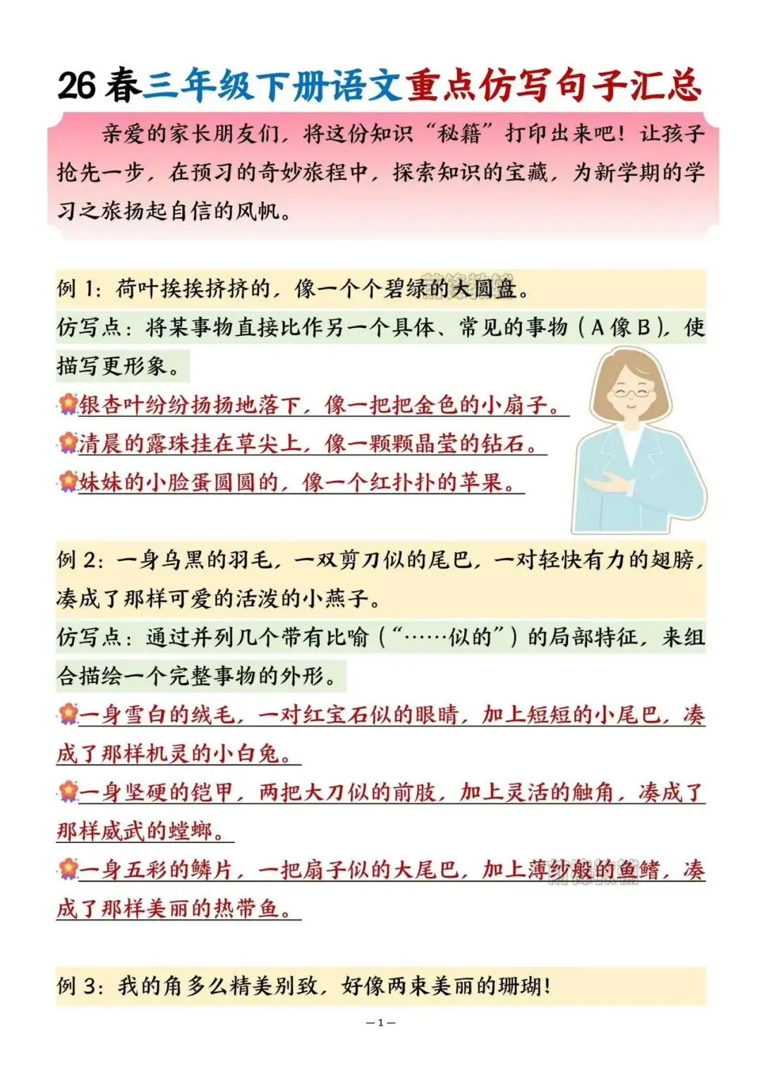 三下重点句子仿写汇总(有完整版可打印)