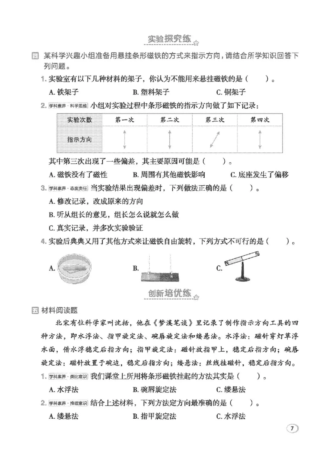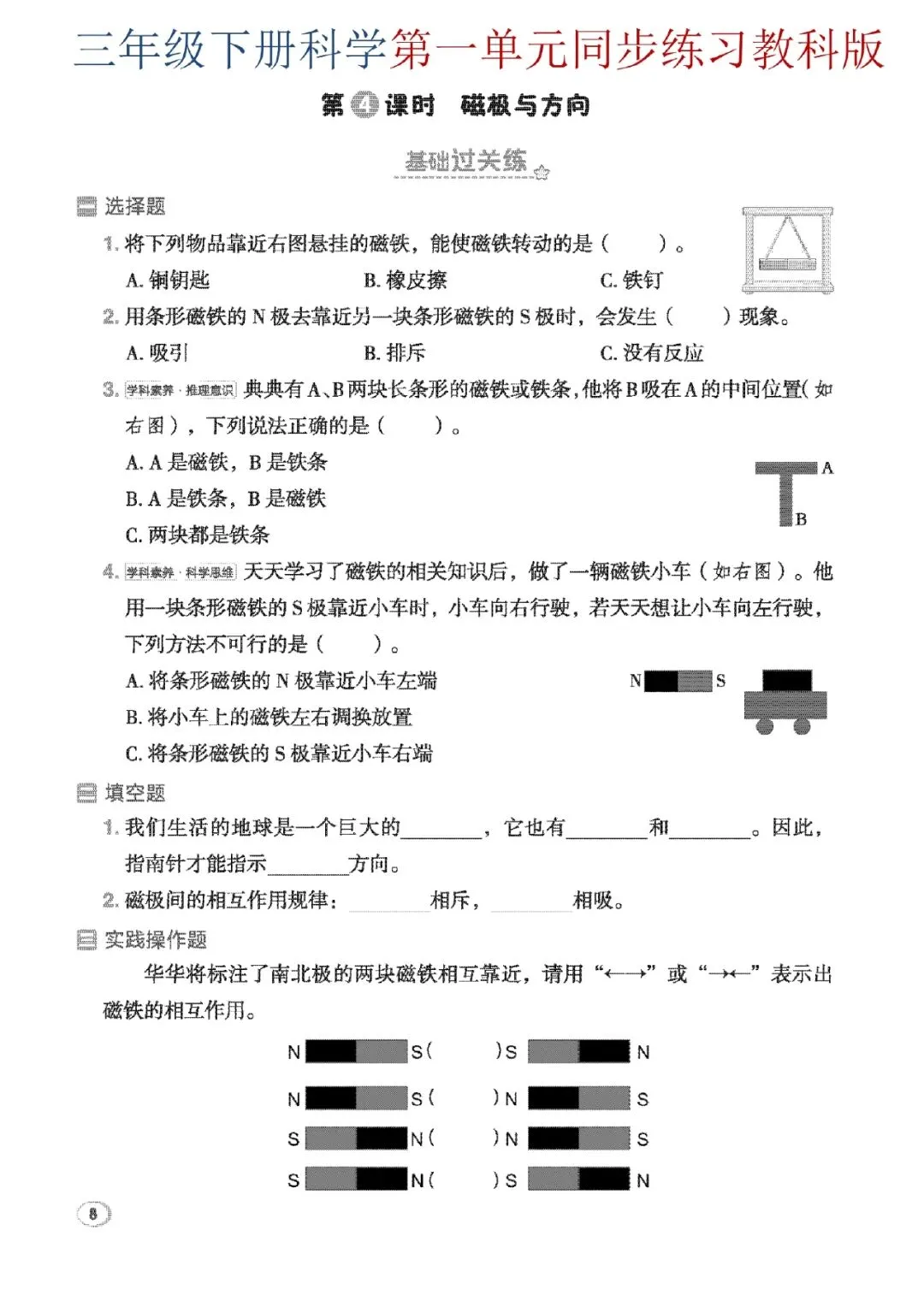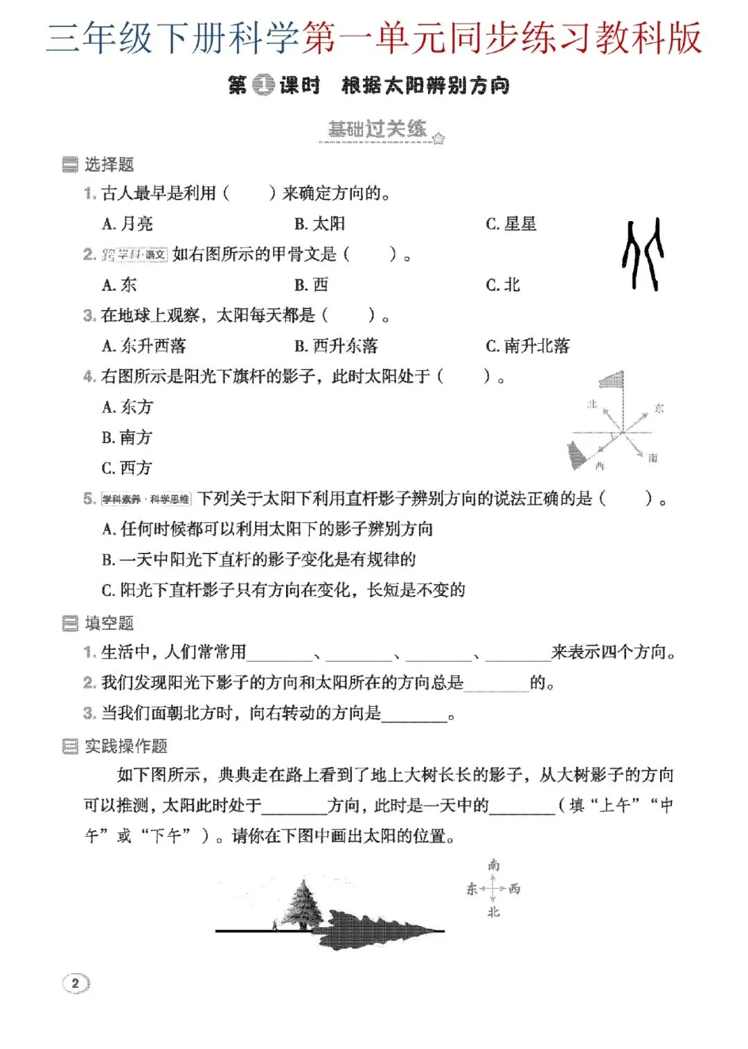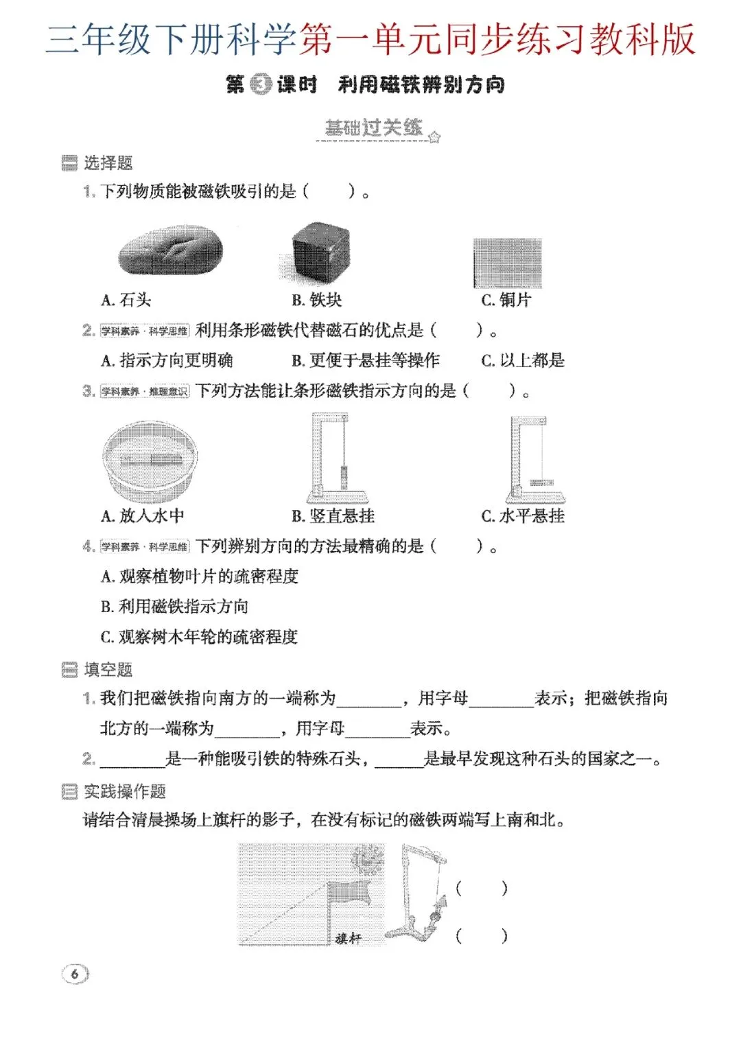 三年级下册科学第一单元教科版同步练习来啦~从太阳辨向、自然物辨向,到磁铁性质、小磁针制作,基础选择、填空、实验探究、材料阅读全覆盖,层层进阶练思维,课堂知识当场巩固,孩子轻松吃透单元重难点,科学考试不丢分~电子版可打印~~