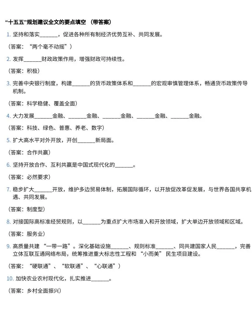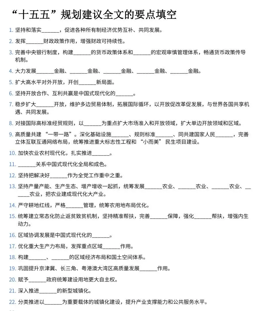 十五五规划全文| 原文PDF | “十五五”规划重点梳理汇总“ | 十五五”规划建议全文的要点填空