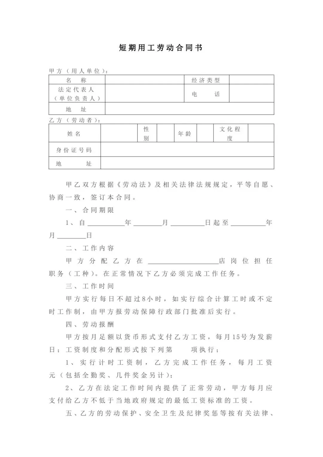 本文分享的是【劳务合同模板】