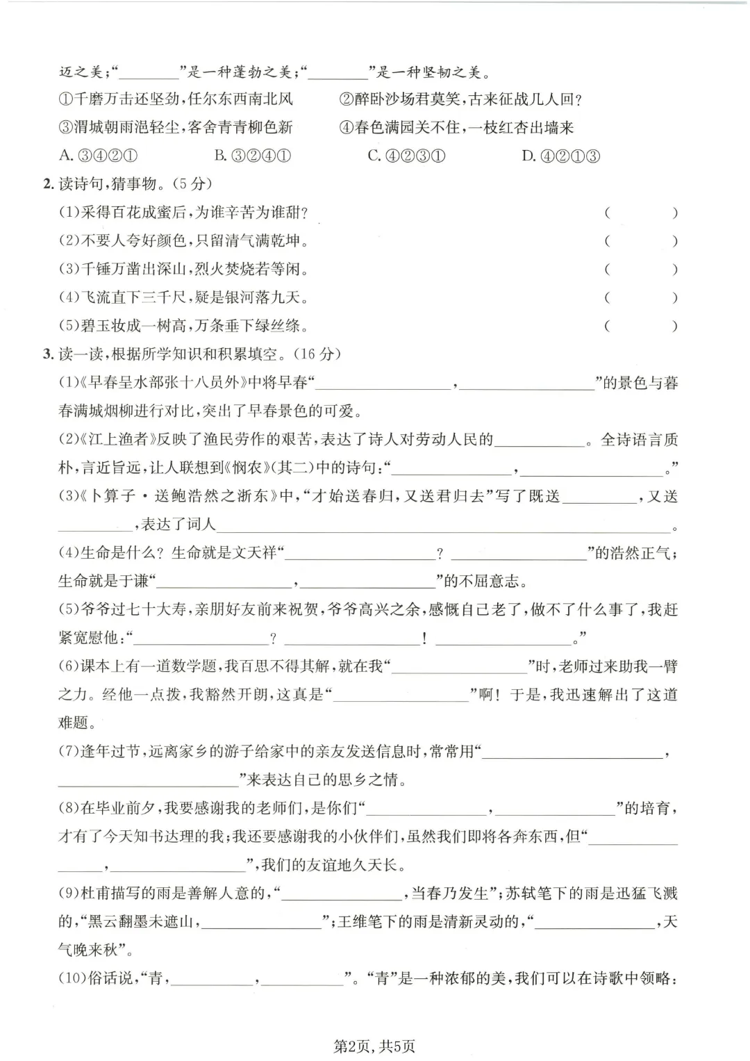 【六年级下册语文】古诗词诵读卷丨完整高清电子版可打印