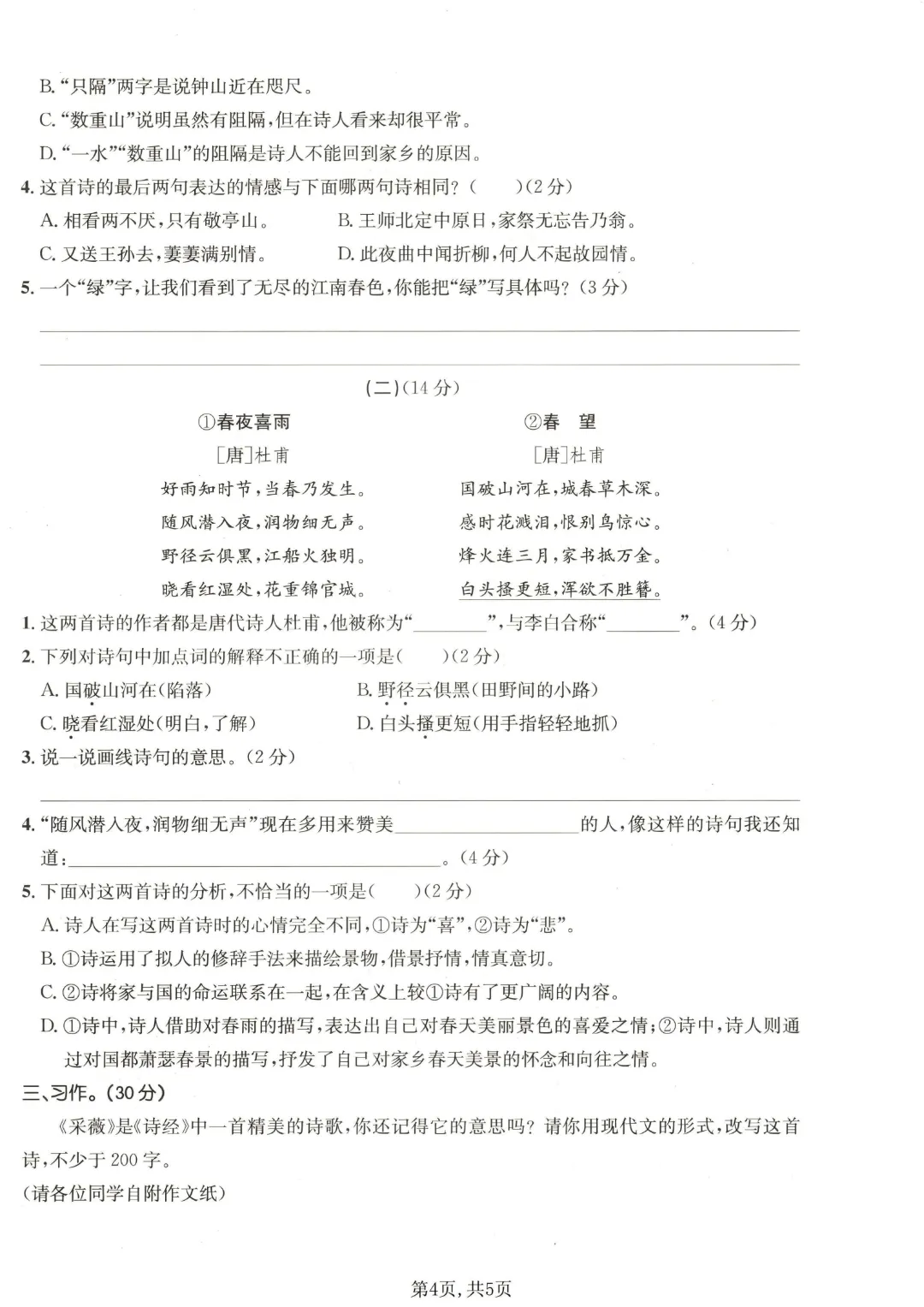 今天给大家分享的是:【六年级下册语文】古诗词诵读卷丨完整高清电子版可打印