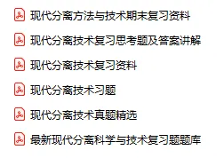 今天分享的资料是「0953-现代分离技术」电子版+学习笔记+知识点总结+期末考试重点+复习资料+习题集及答案+名词解释+历年真题试卷及答案+题库及答案+复习重点+思考题及参考答案+公式总结+考试重点基础题+知识总结+高清PDF可打印+免费分享!