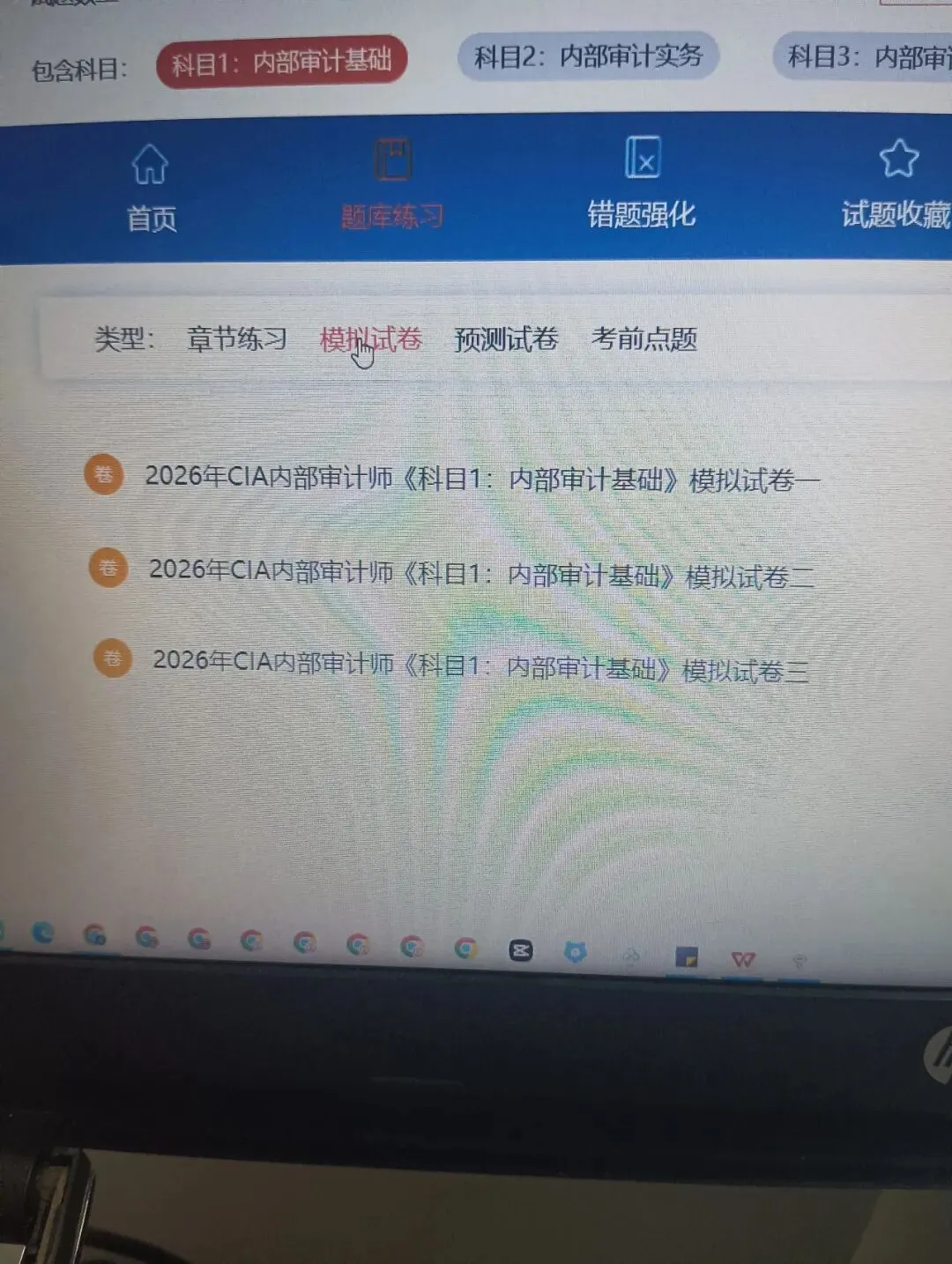 它覆盖内部审计基础2216道、实务3074道、知识要素2768道题,有章节练习逐个巩固知识点,模拟押题卷帮你熟悉考试节奏,错题强化针对性补漏,三端通用可存做题记录,有效期365天,还额外附赠三十余套模拟卷网盘资料。