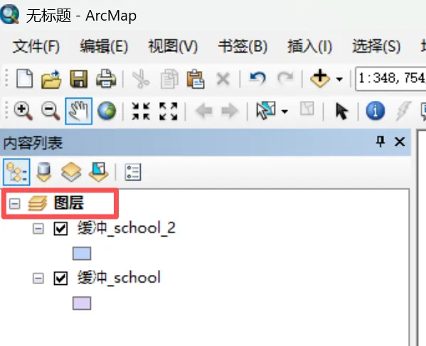注意!在ArcGIS中,新建一个地图文档后,会默认生成一个名称为“图层”的数据框,它本意是想告诉用户在这里放图层,但是很多初学者会将这个数据框认为是图层,大家切勿混淆!