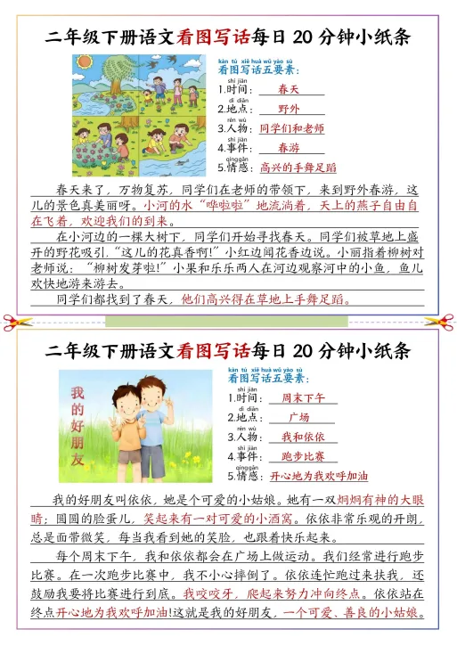 【免费下载】二年级(下)语文 看图写话每日一练范文,PDF电子版,可打印