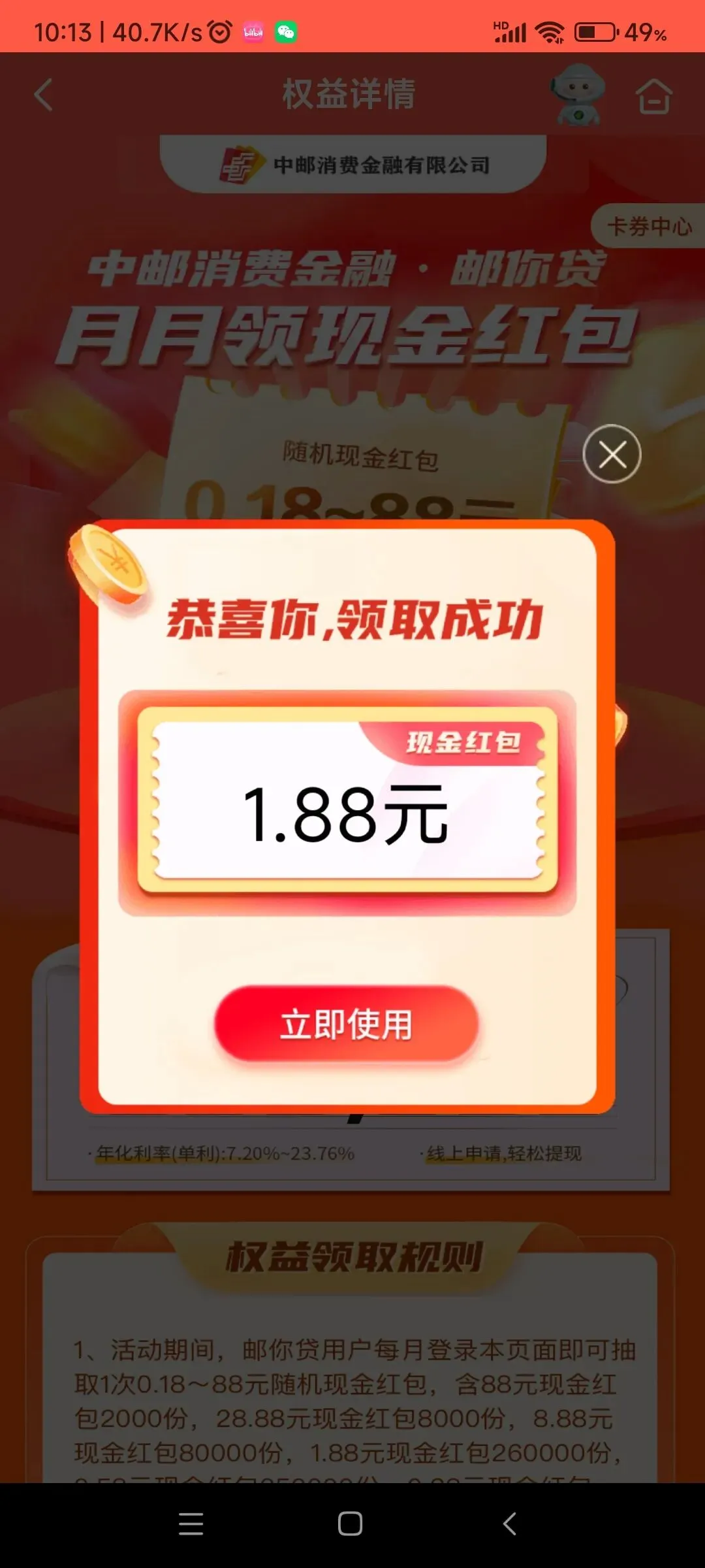 邮储app抽0.18-88亓