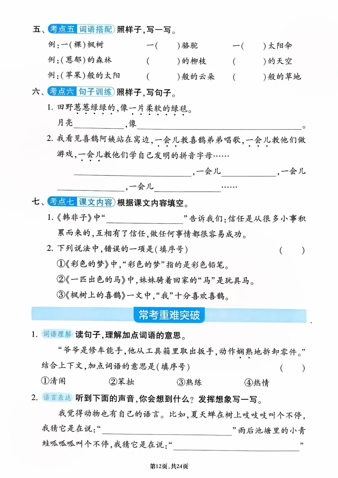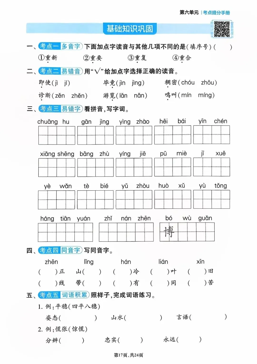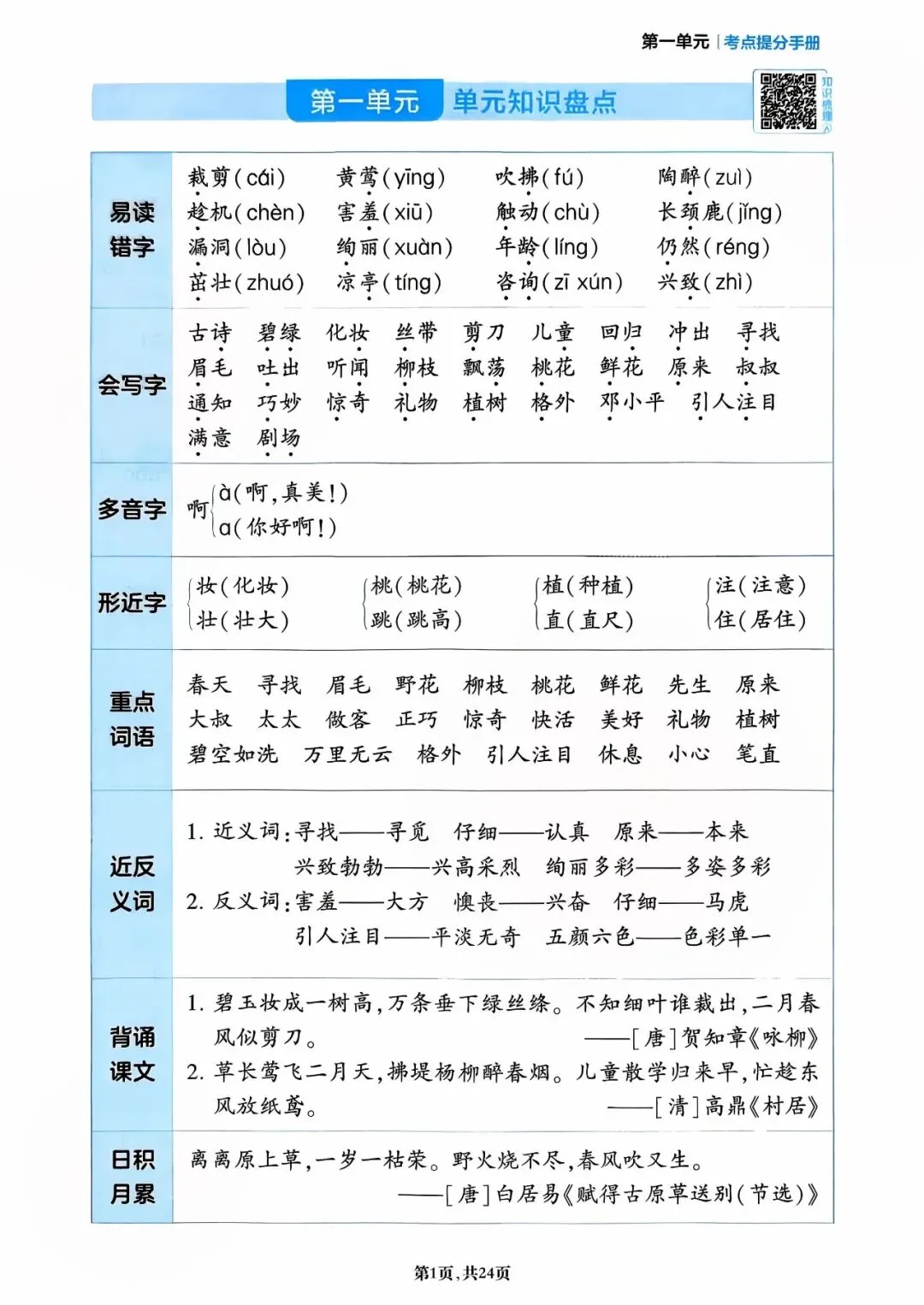 💡 单元学完盘一遍,基础练一遍,系统梳理不遗漏,语文根基更牢固!