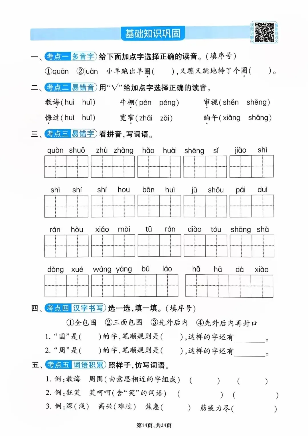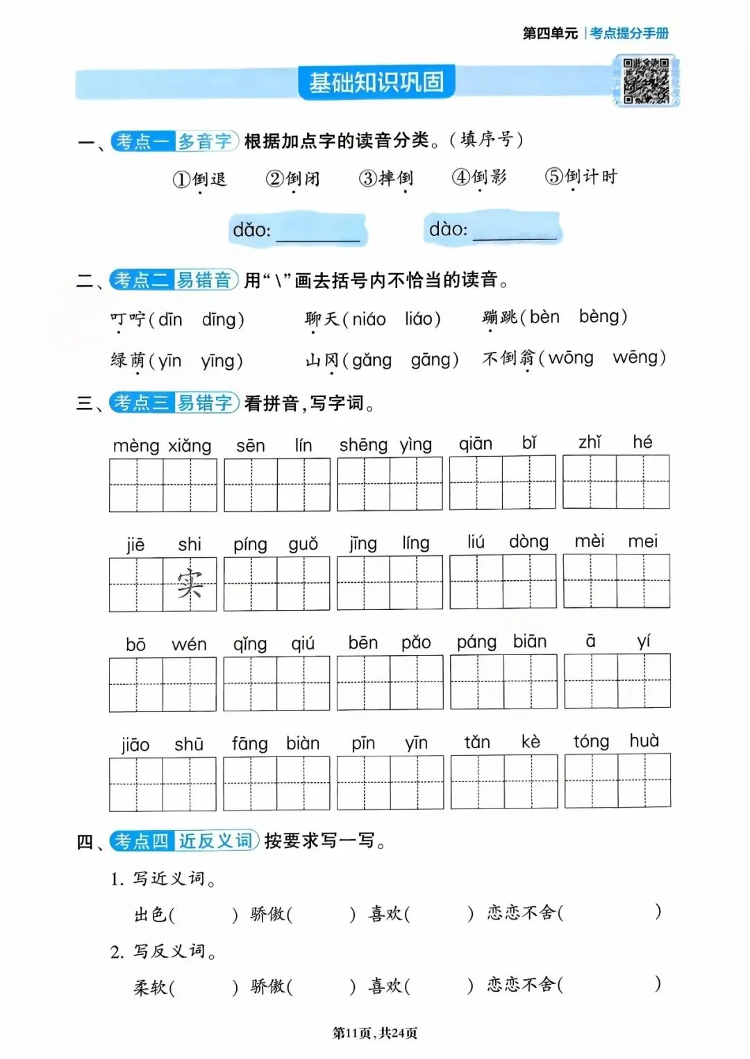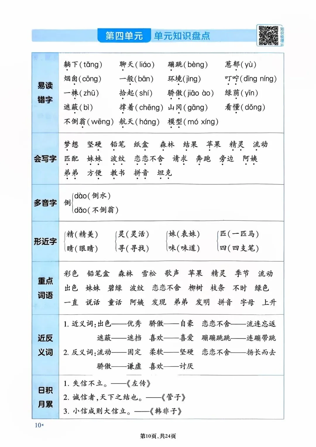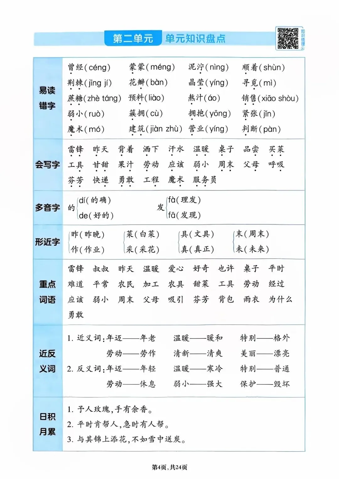 ✅ 生字词:会认会写,夯实字词基础 ✅ 多音字:单元易混读音对比记忆 ✅ 重点词语:AABB、动词搭配等归类积累 ✅ 近反义词:快速扩充词汇量 ✅ 日积月累:古诗、名言、成语全收录 ✅ 基础练习:配套巩固,即学即练