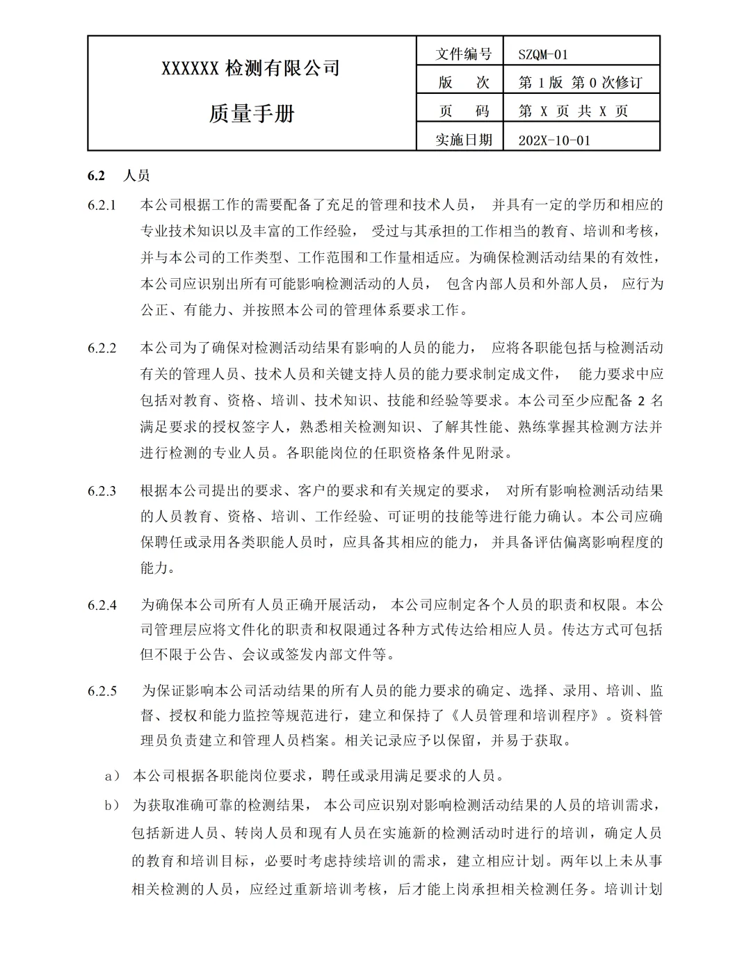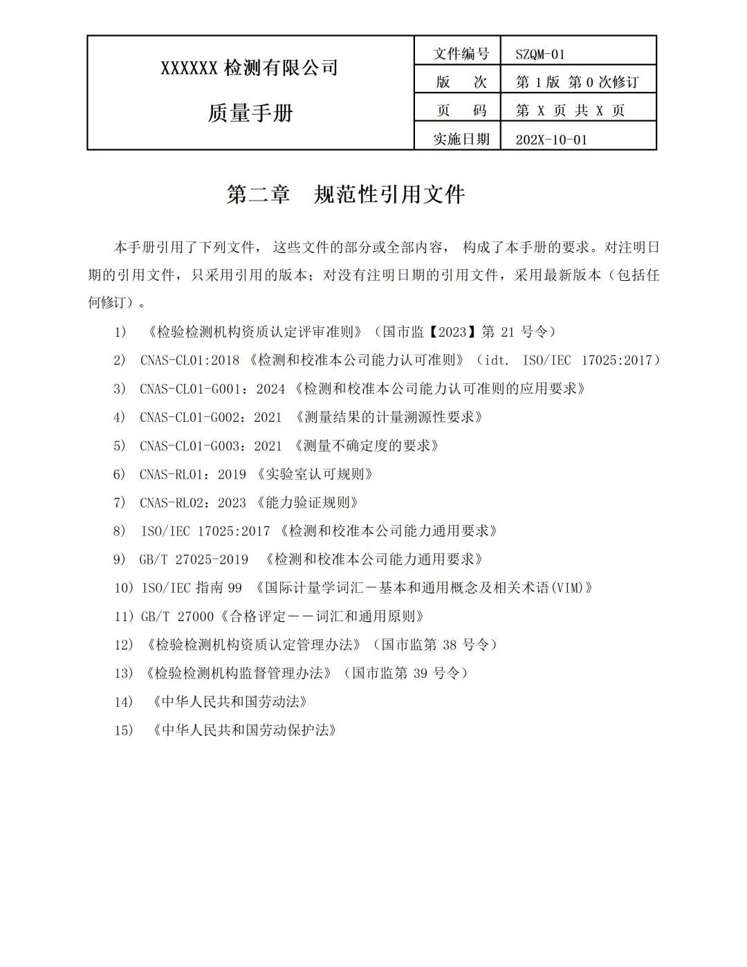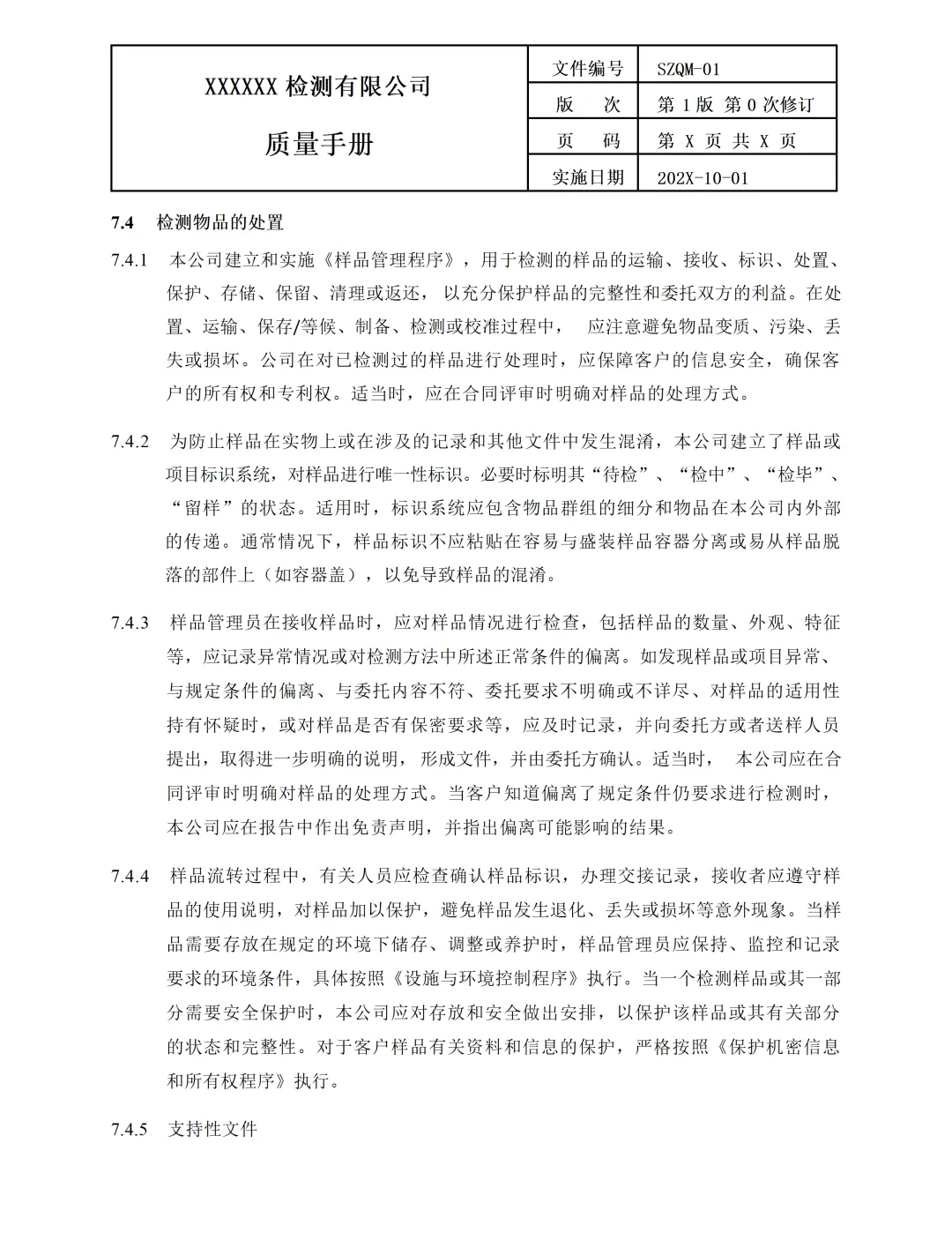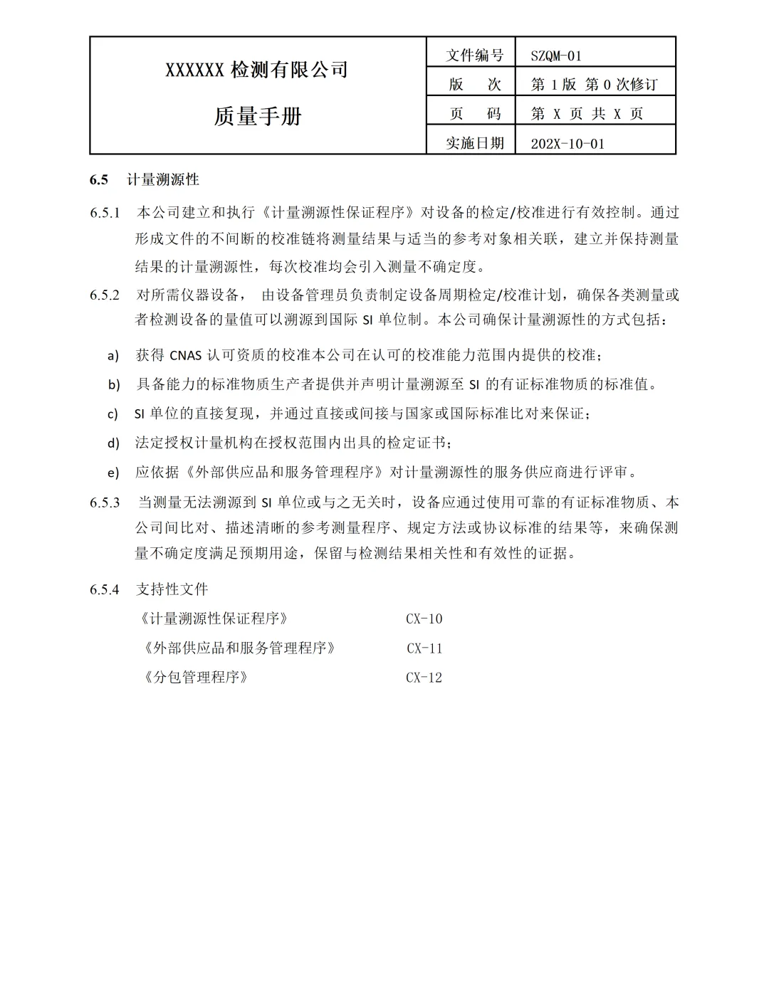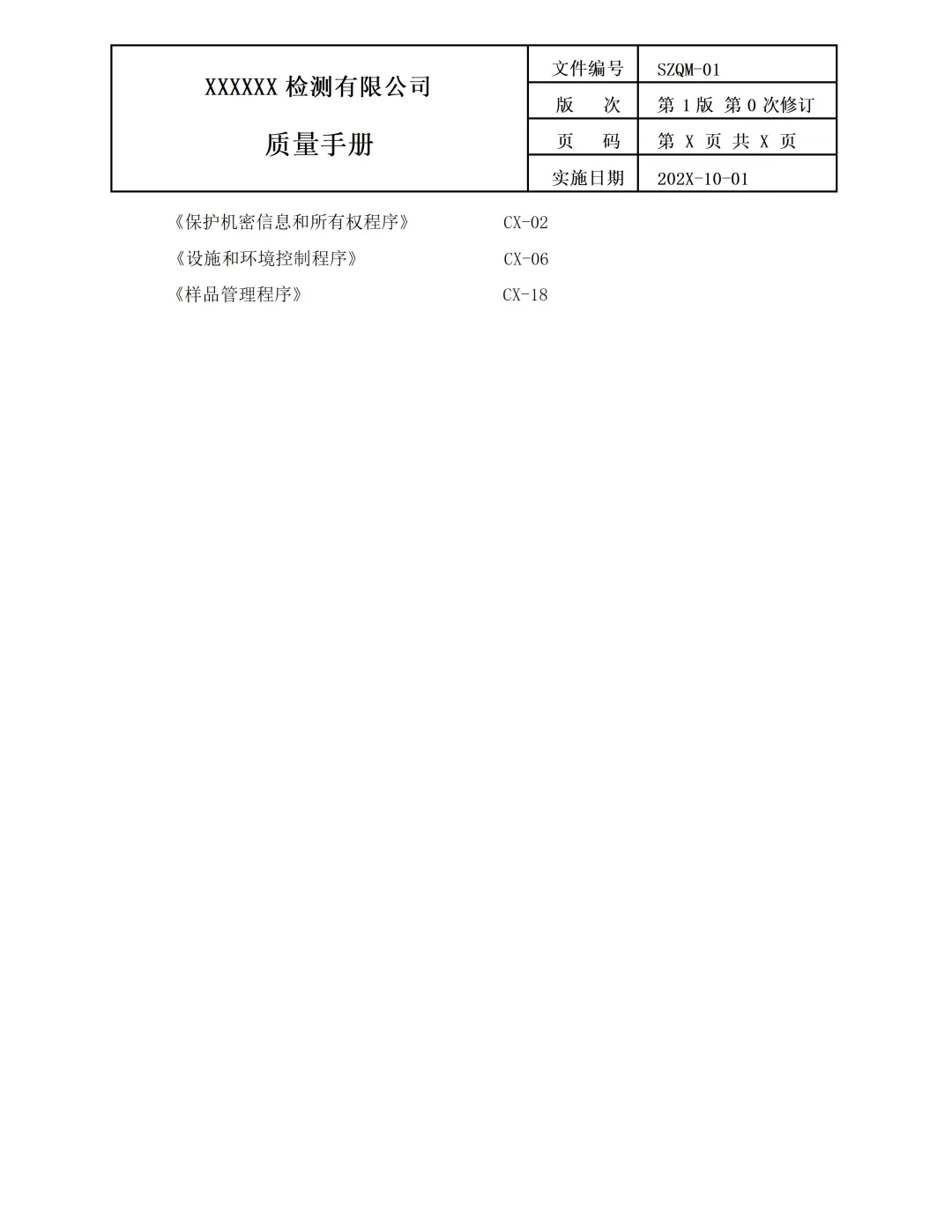 免费提供CMA/CNAS《质量手册》和《程序文件》模板一套 word 格式供参考
