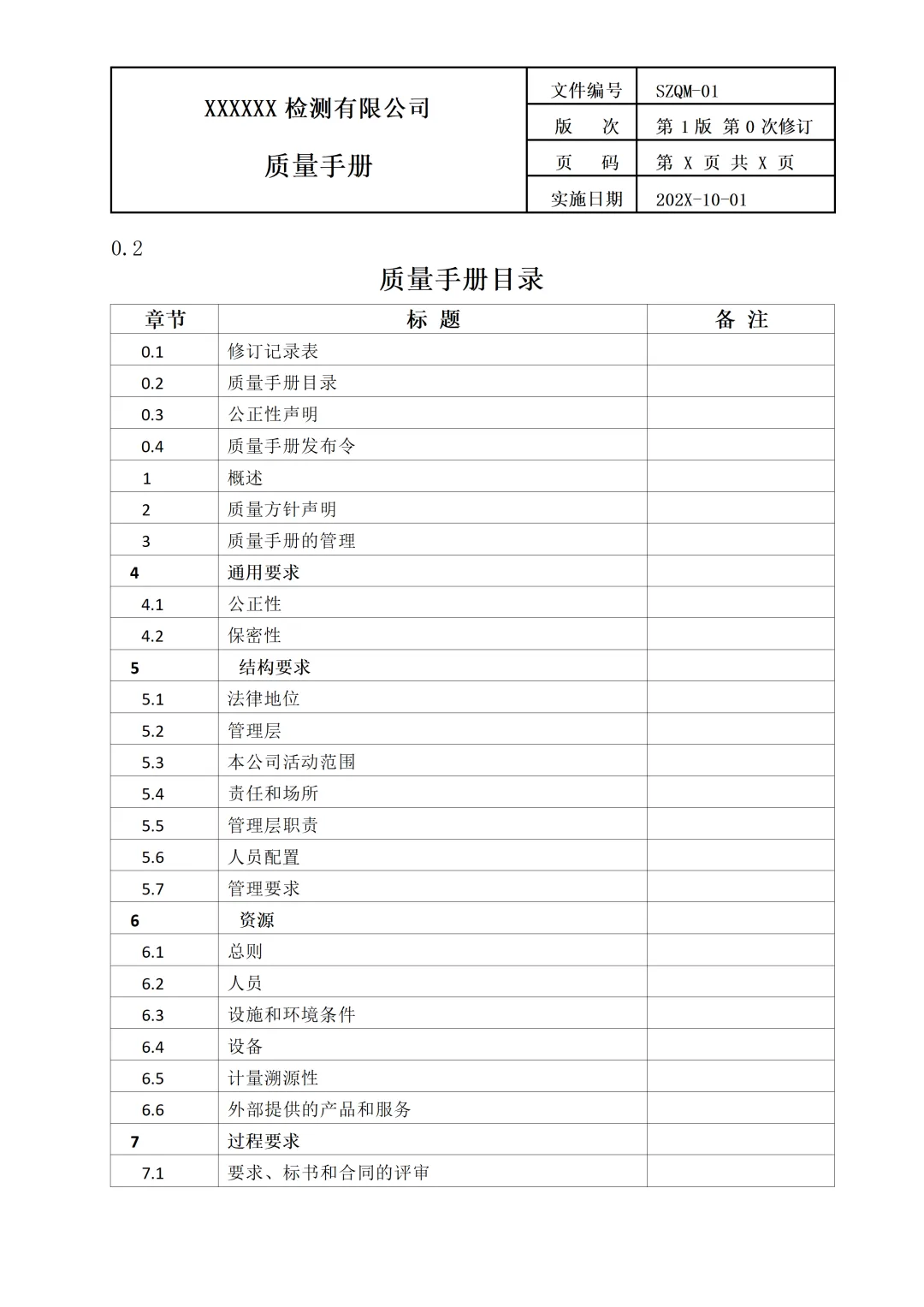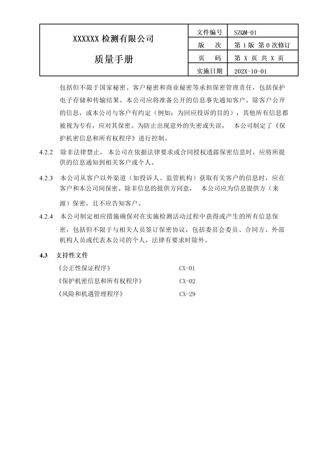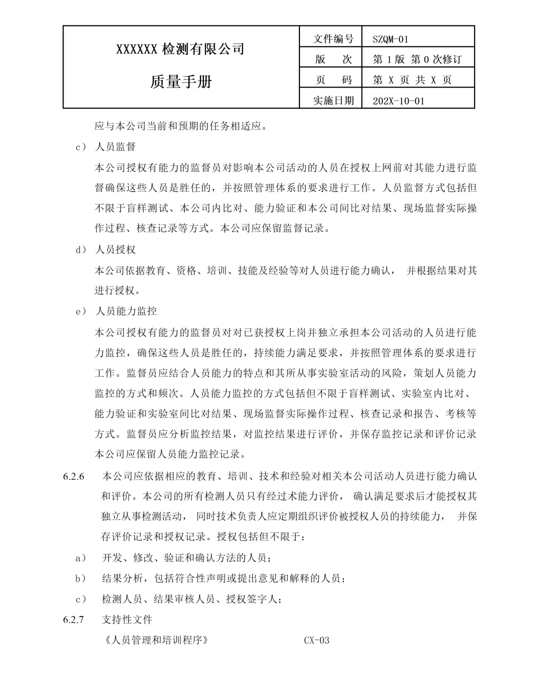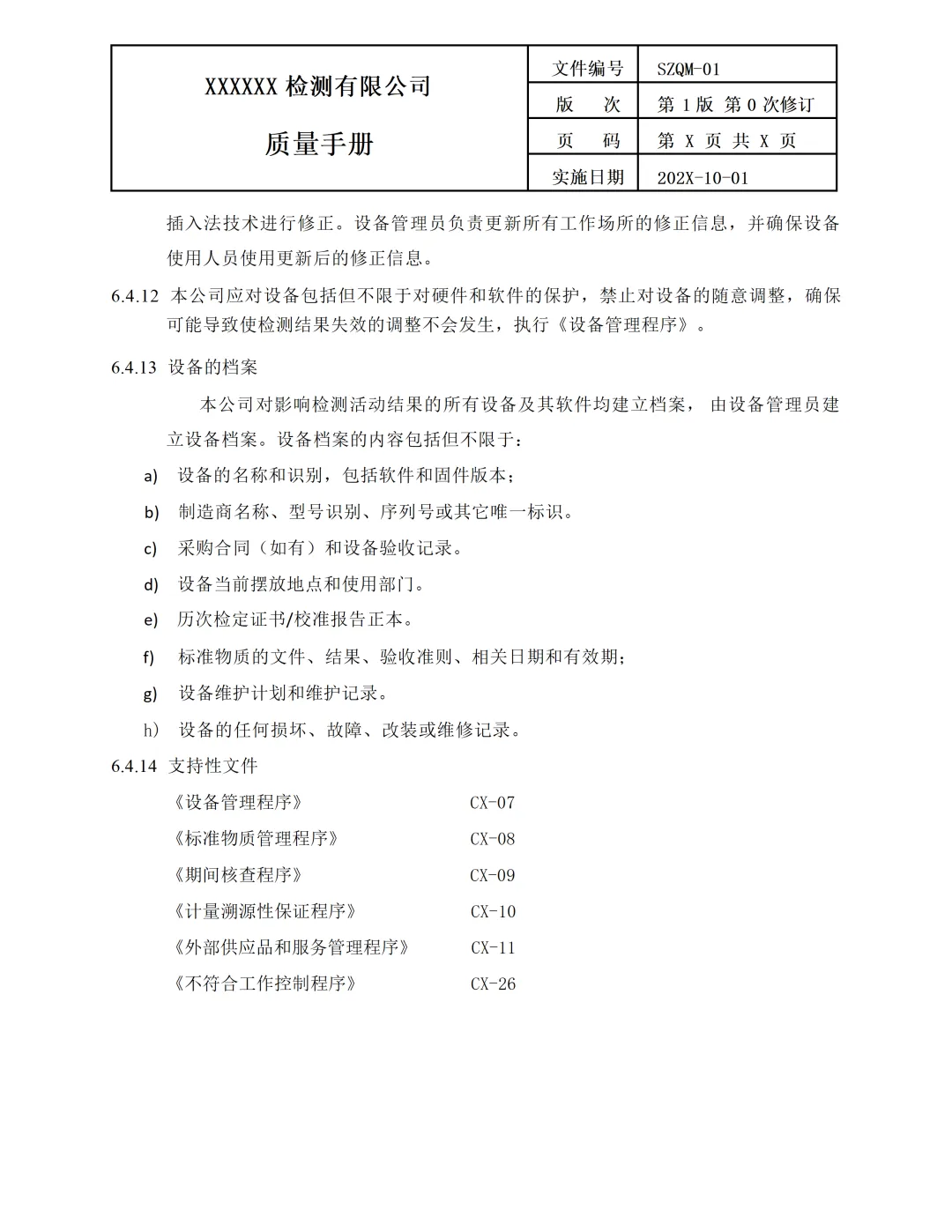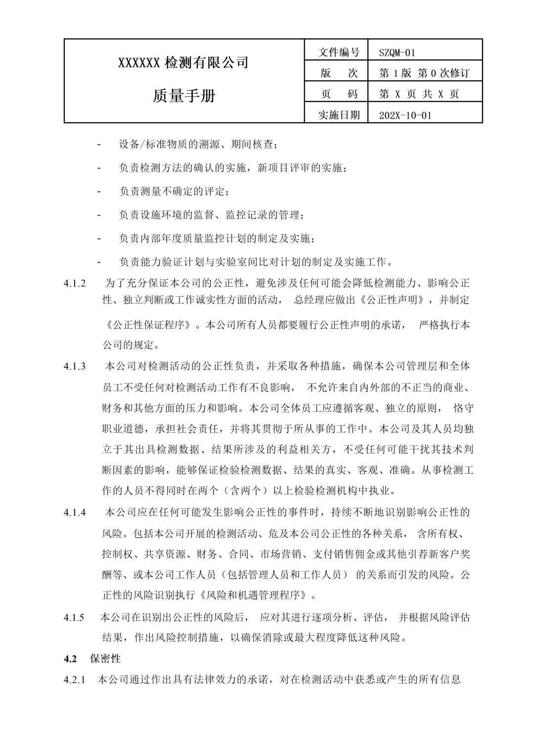 免费提供CMA/CNAS《质量手册》和《程序文件》模板一套 word 格式供参考