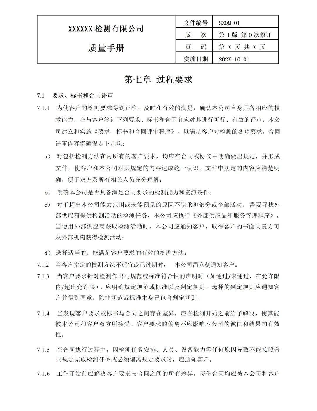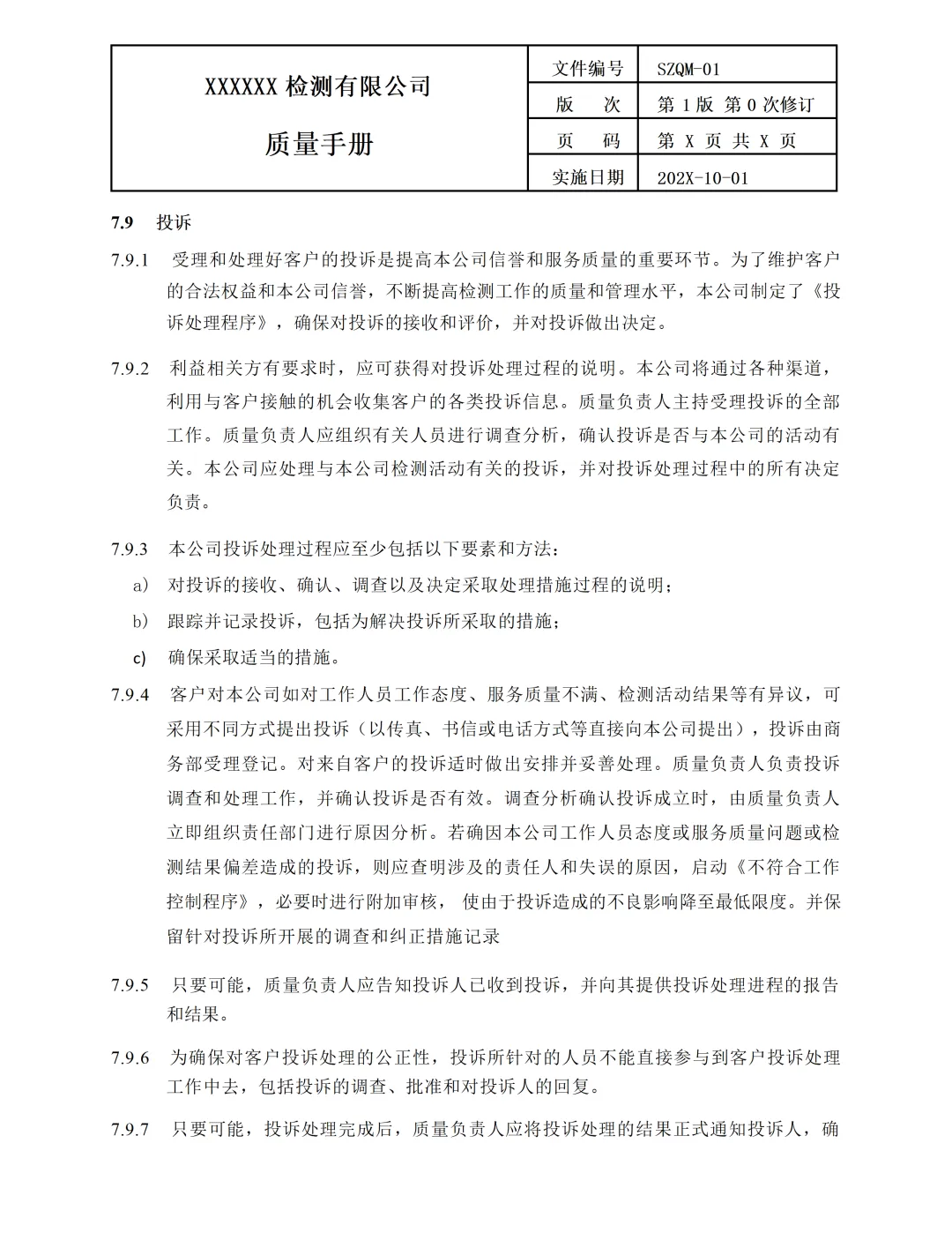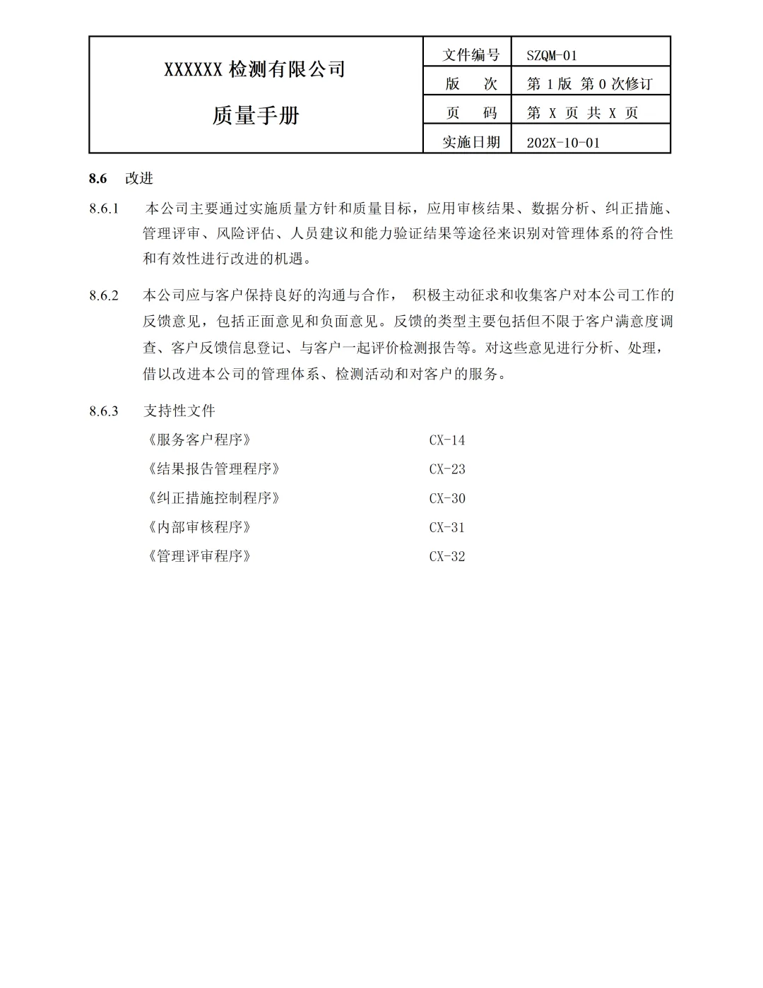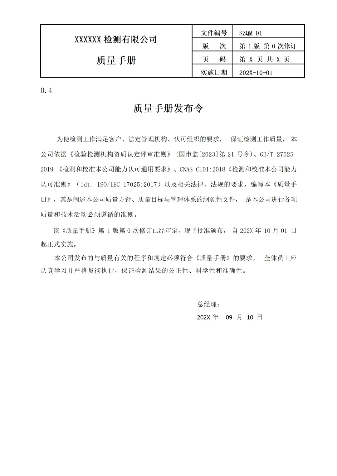 免费提供CMA/CNAS《质量手册》和《程序文件》模板一套 word 格式供参考