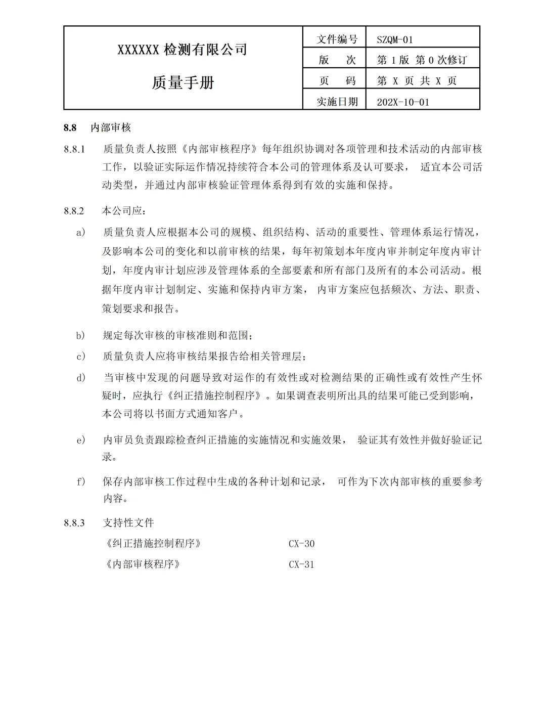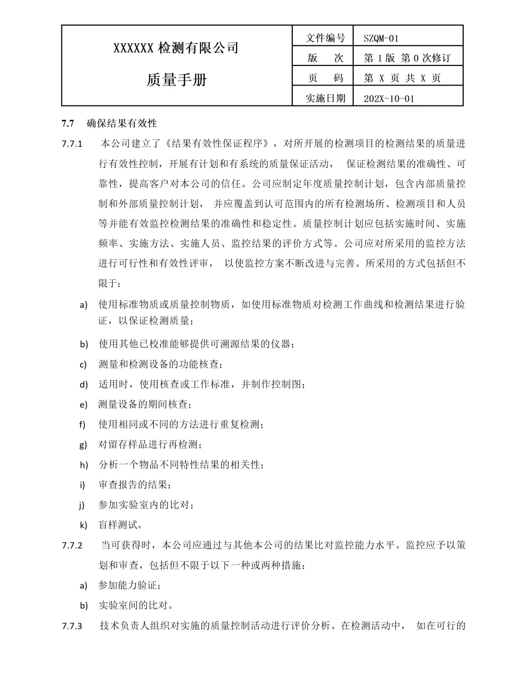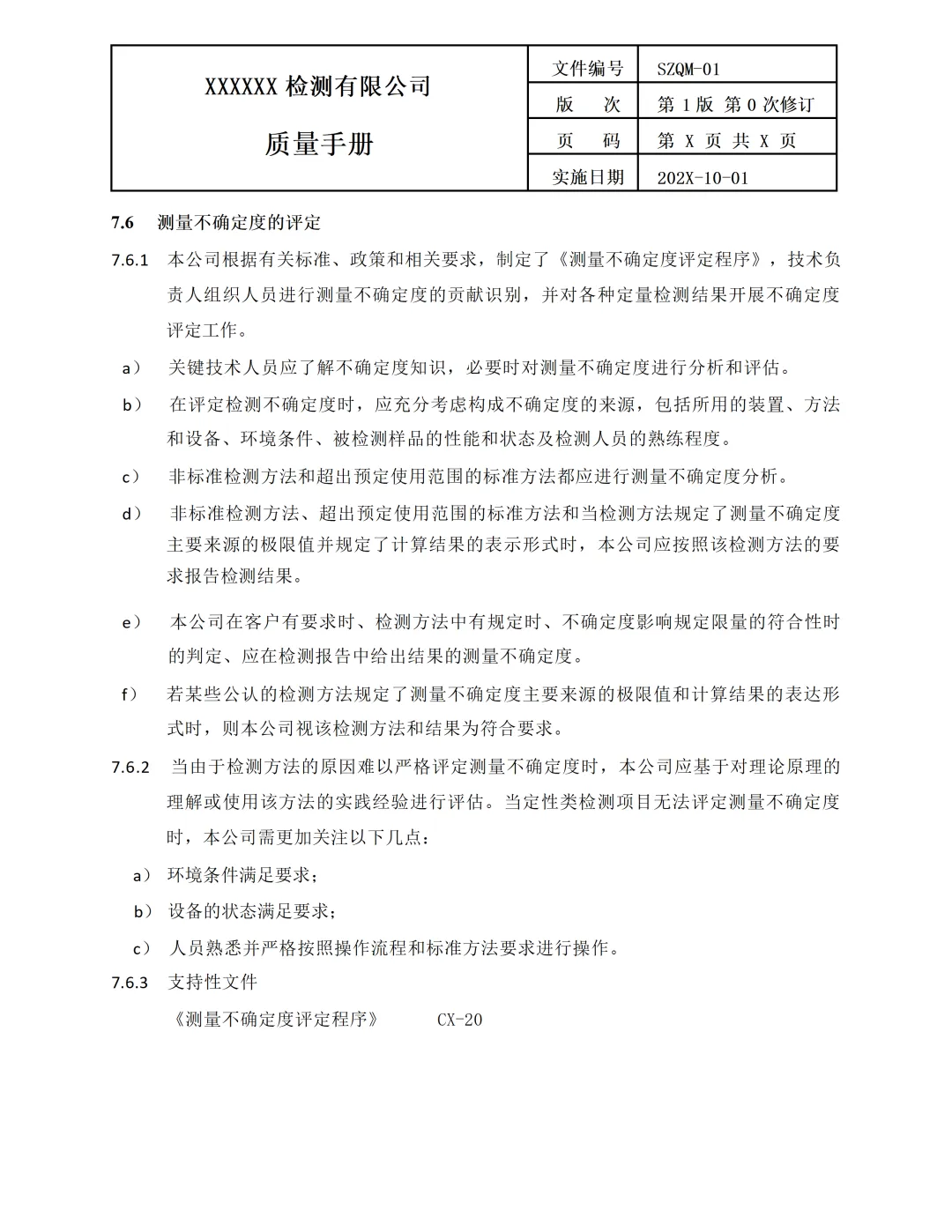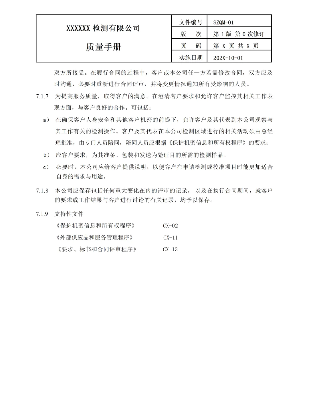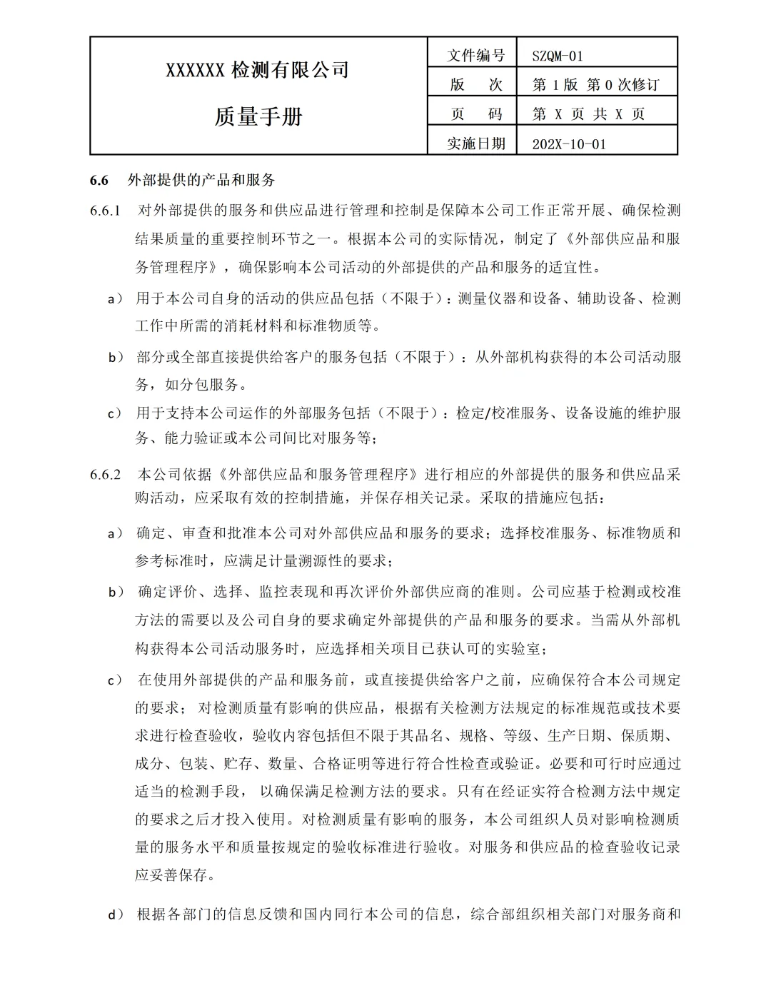 免费提供CMA/CNAS《质量手册》和《程序文件》模板一套 word 格式供参考