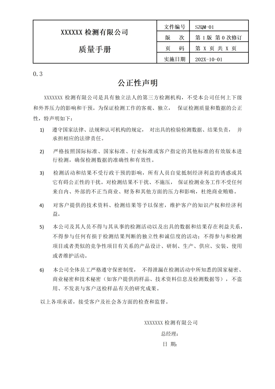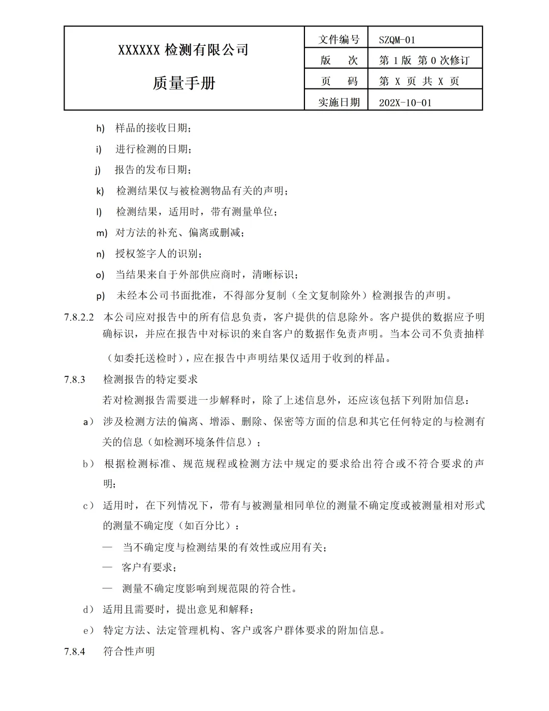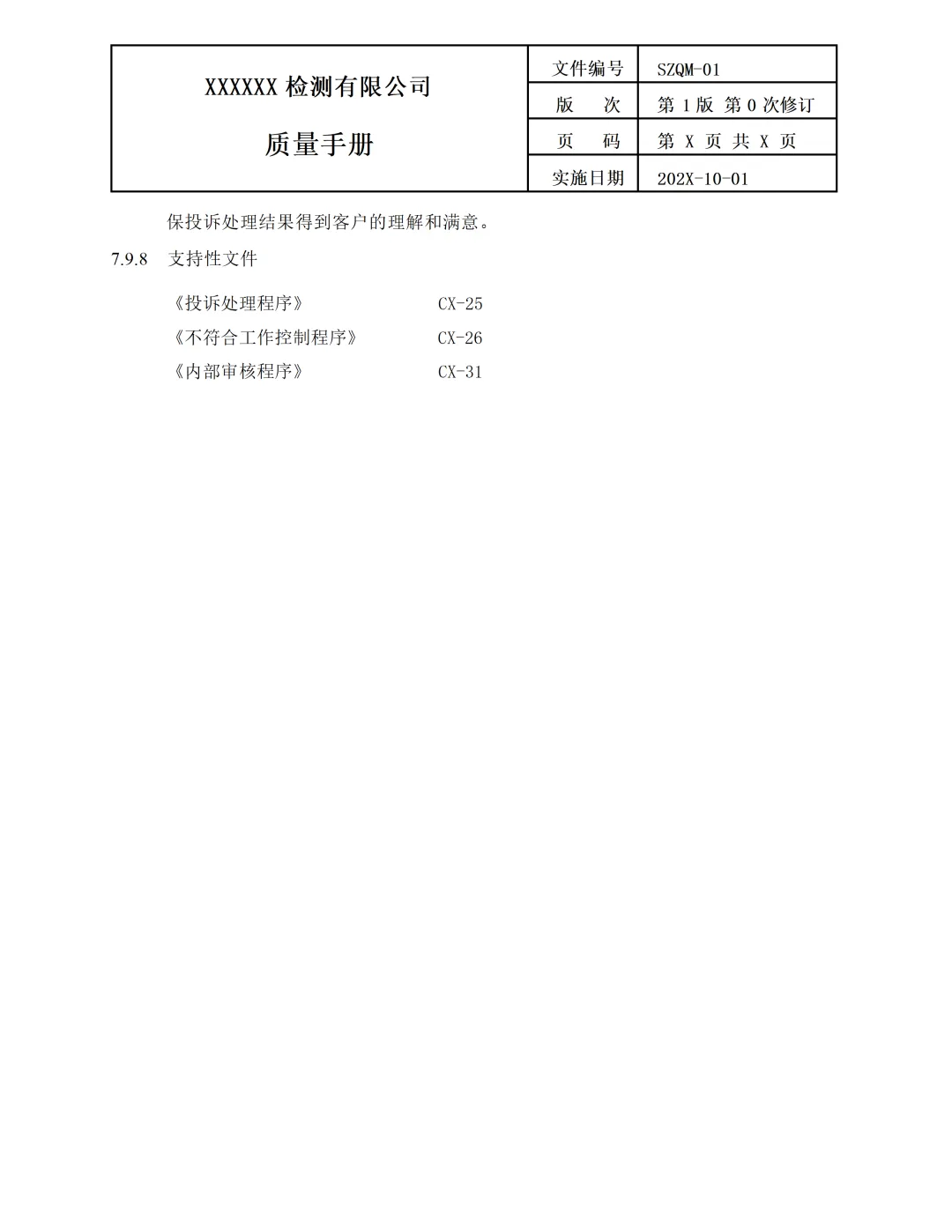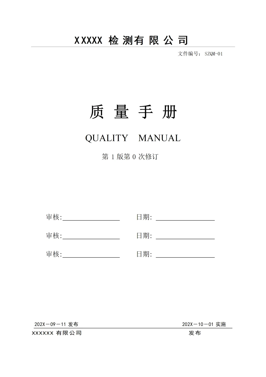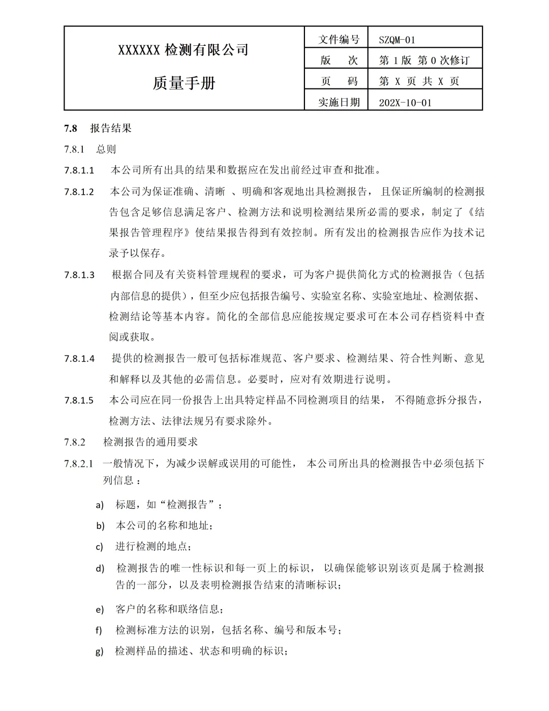 免费提供CMA/CNAS《质量手册》和《程序文件》模板一套 word 格式供参考