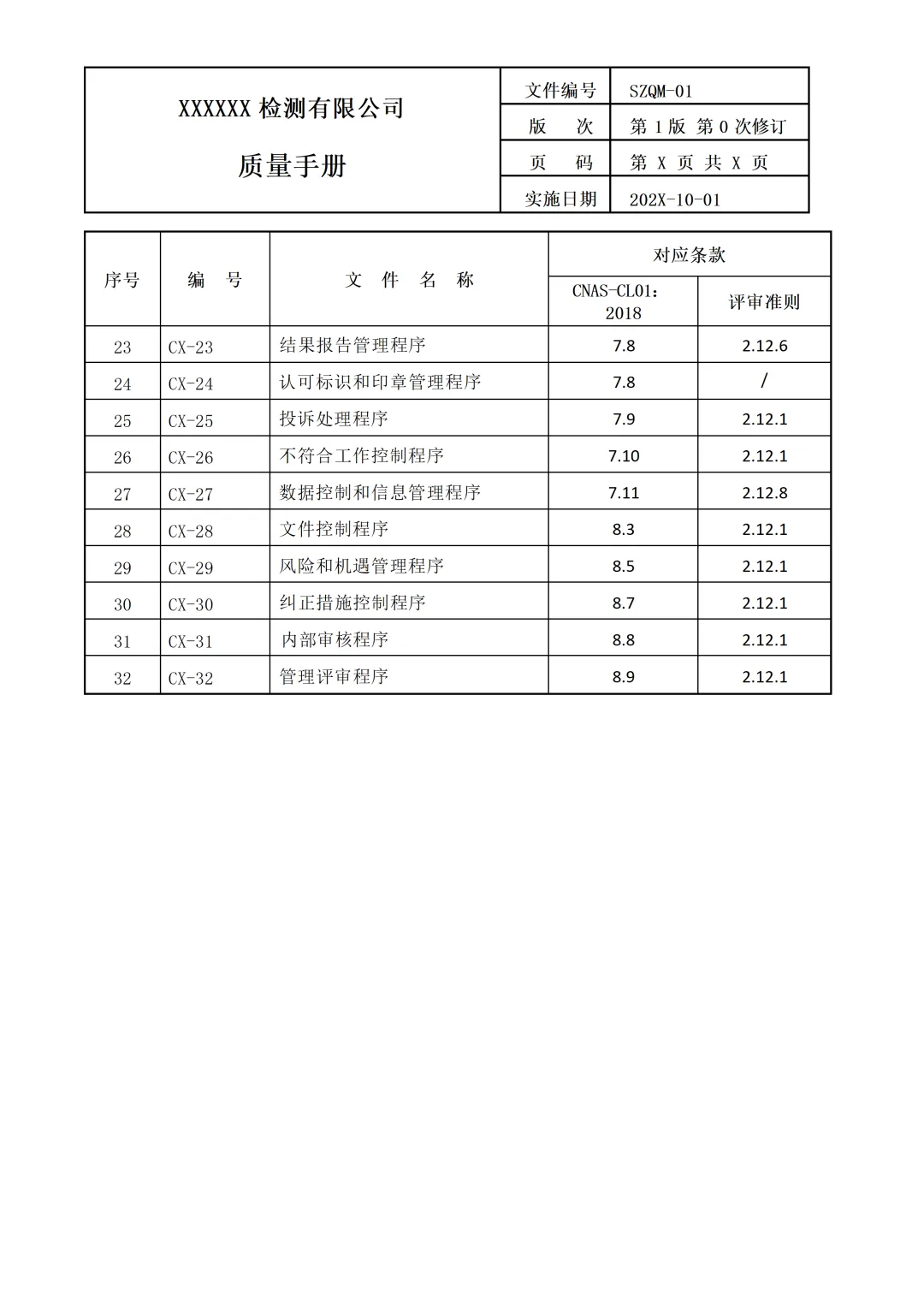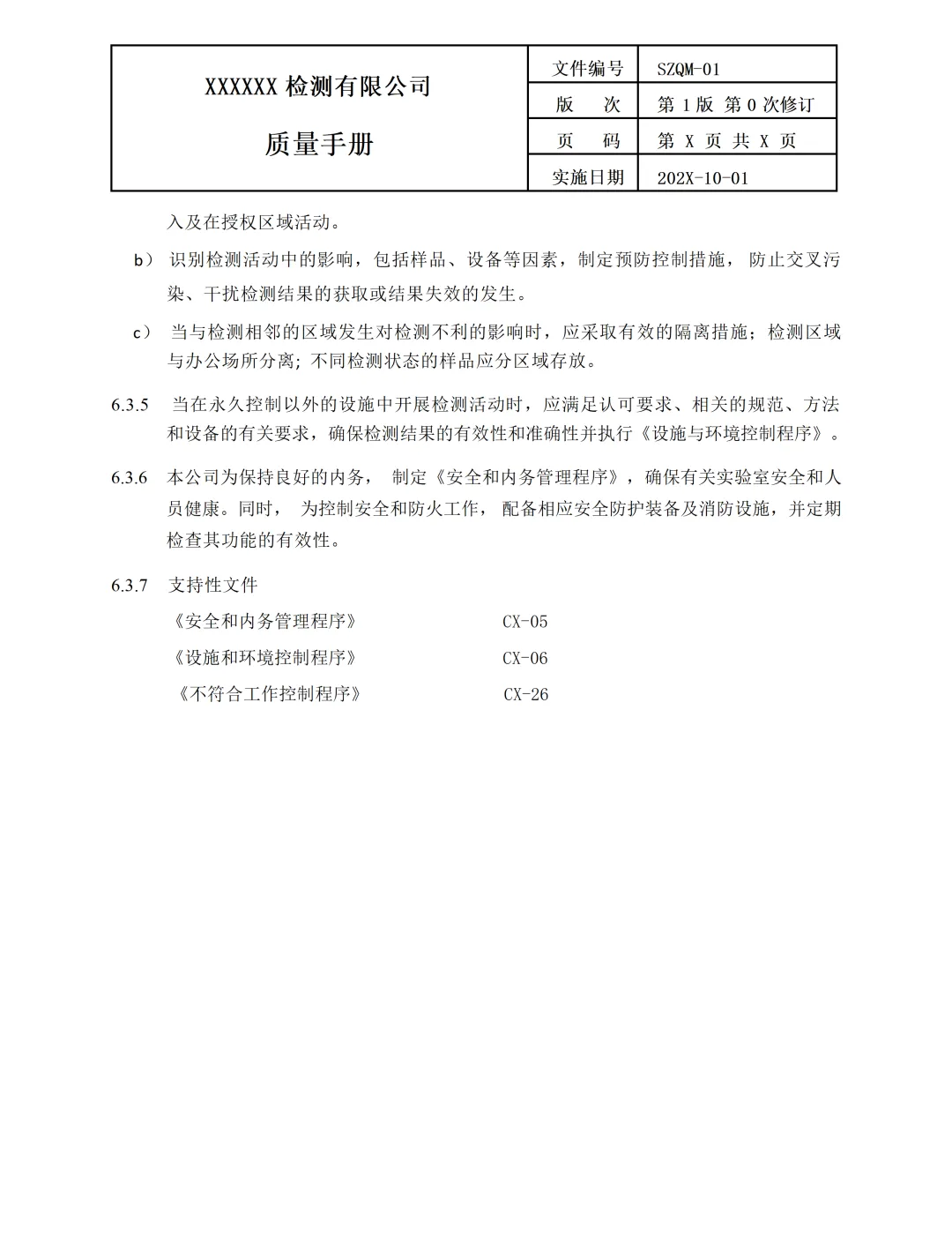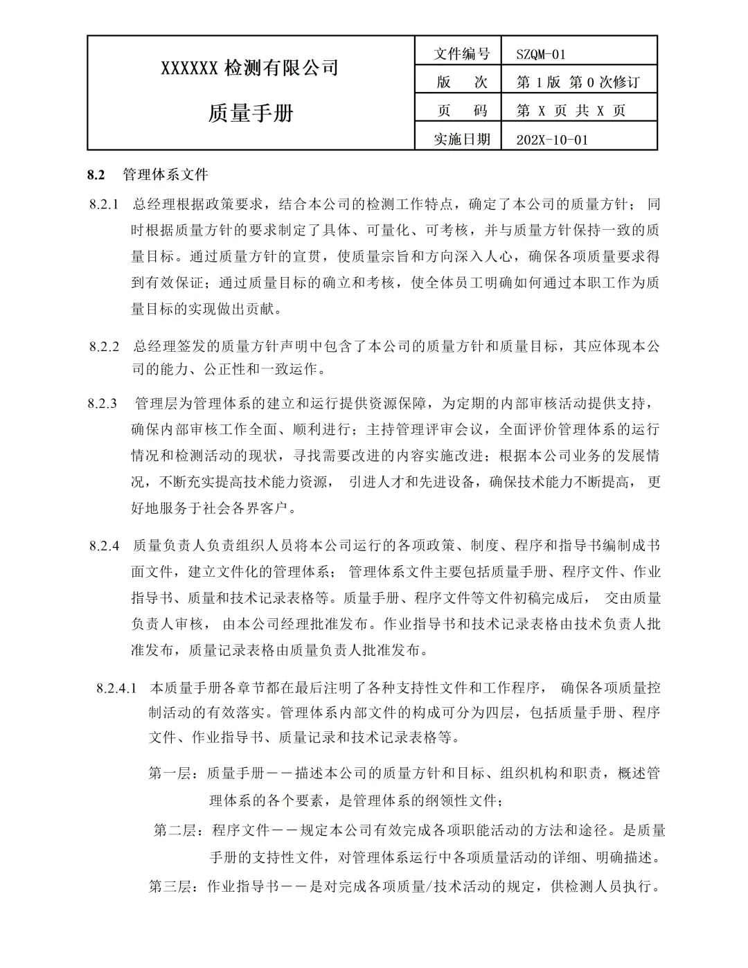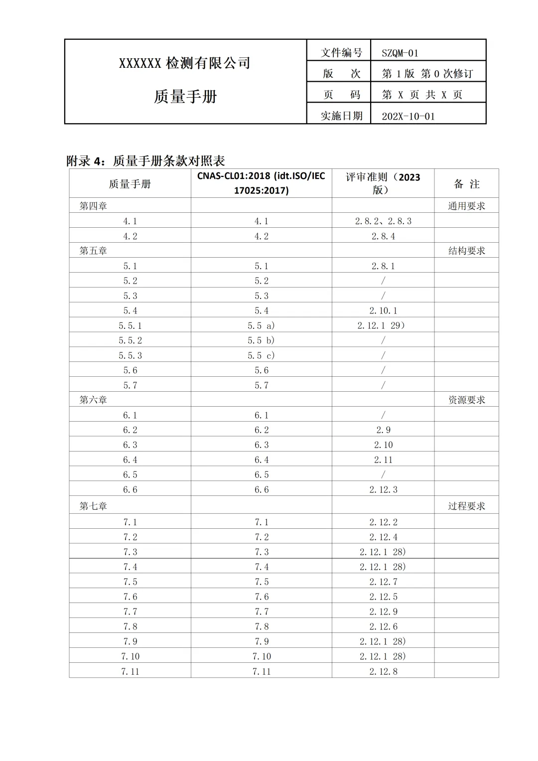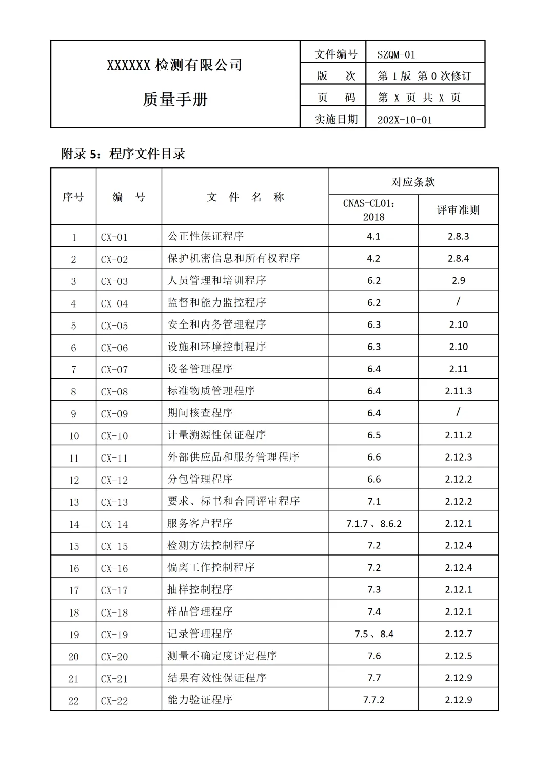5、新版质量手册和程序文件(适合CMA/CNAS)模板一套 word 格式