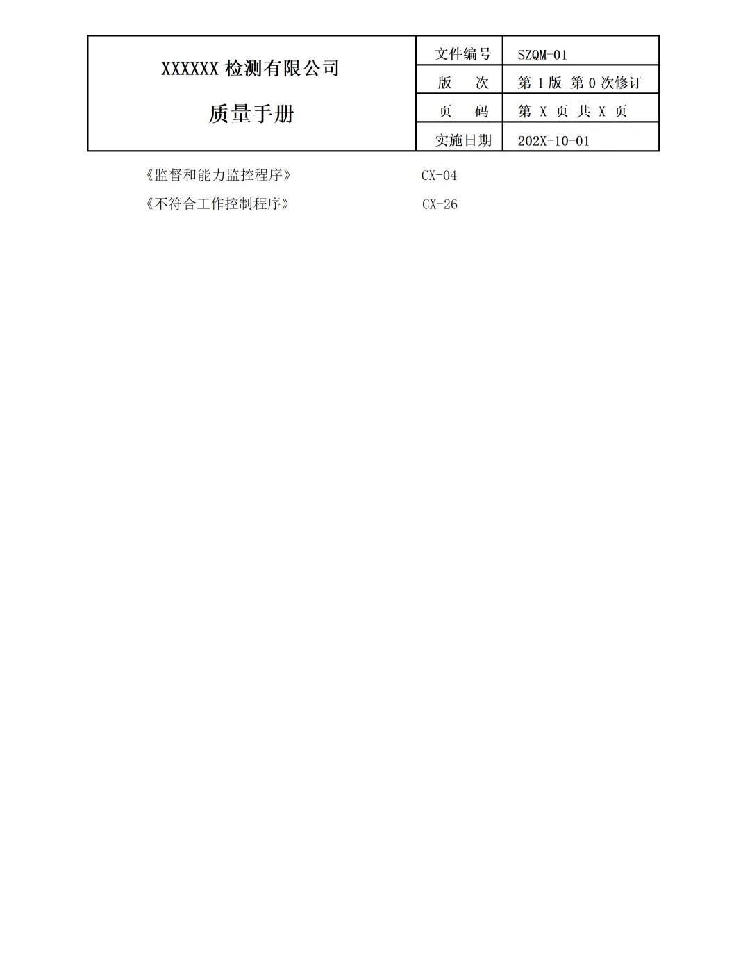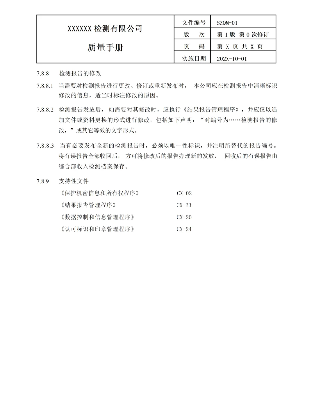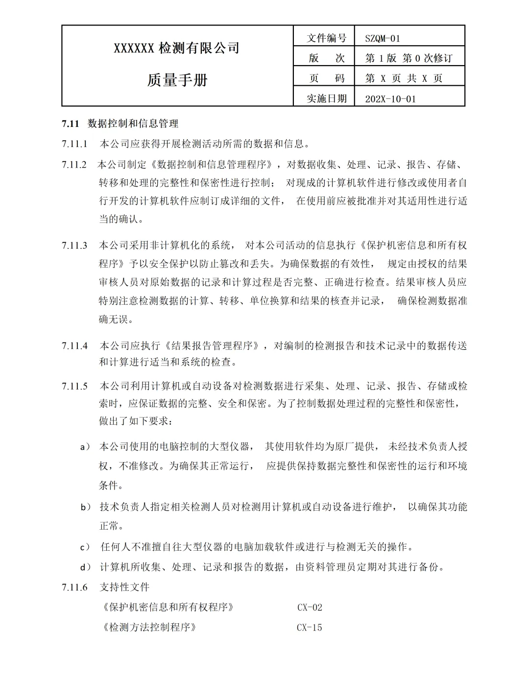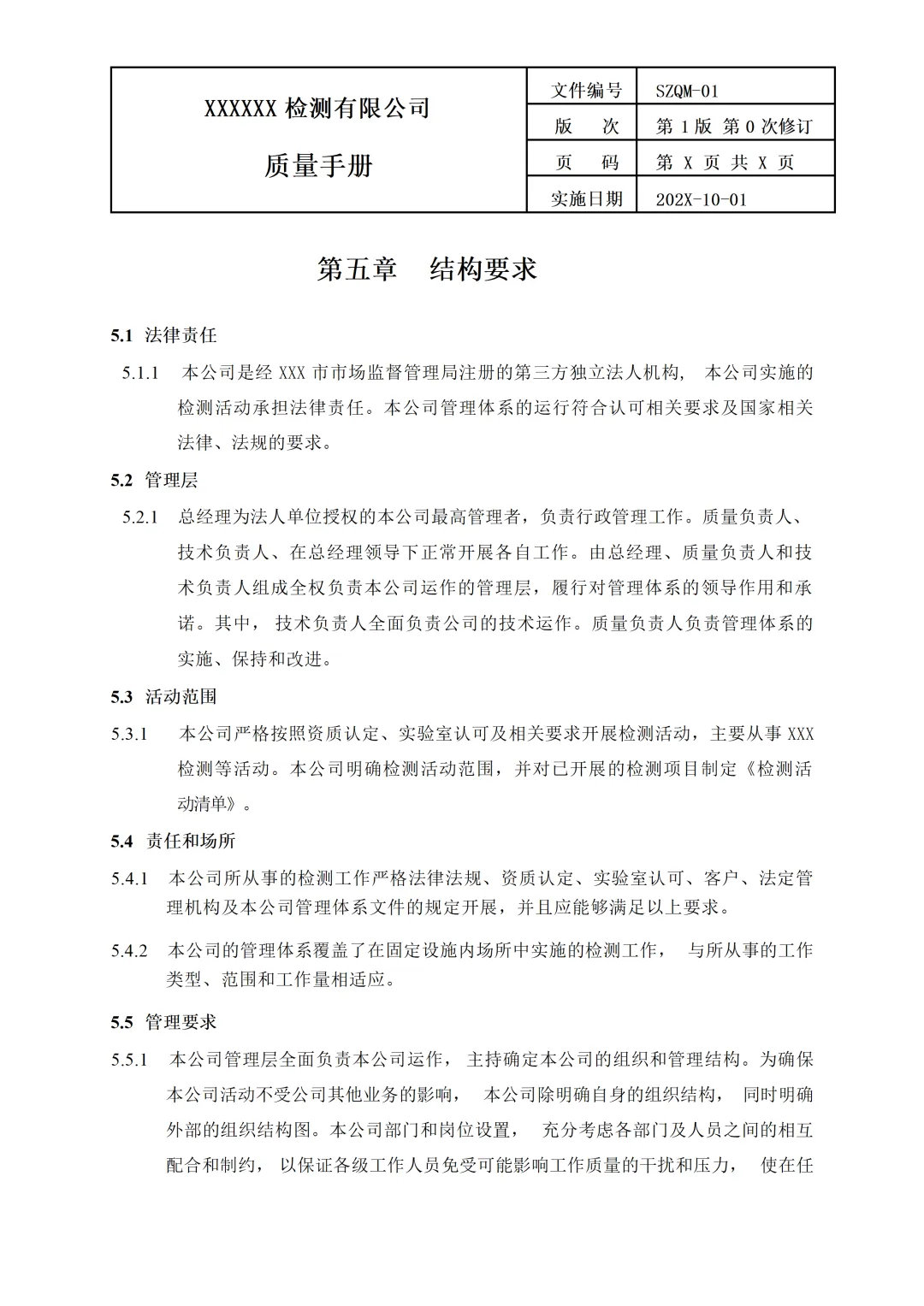 5、新版质量手册和程序文件(适合CMA/CNAS)模板一套 word 格式
