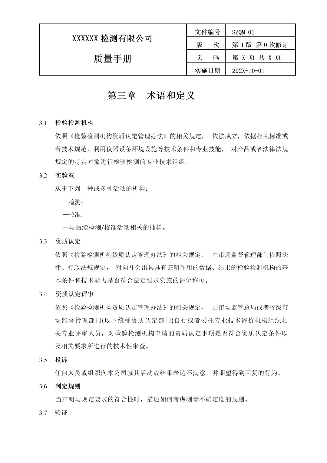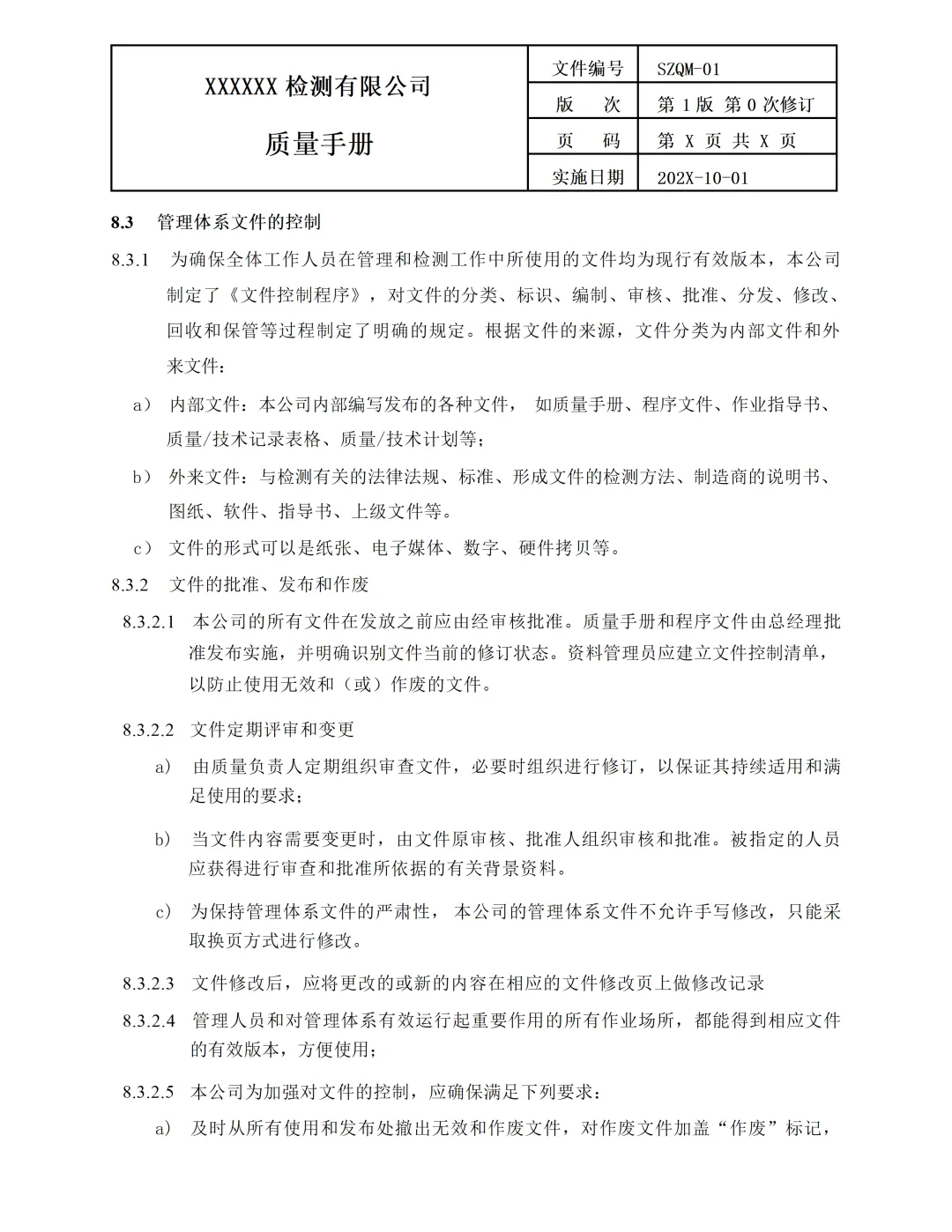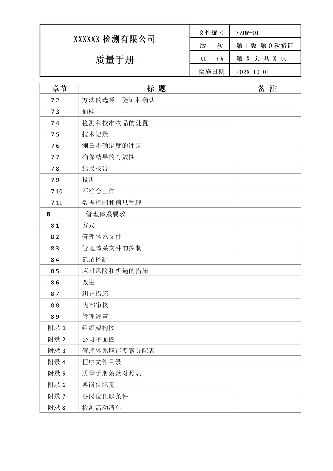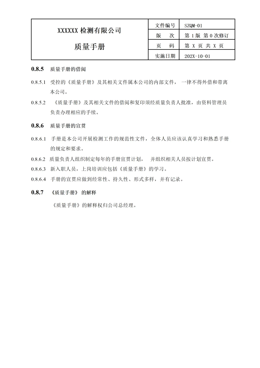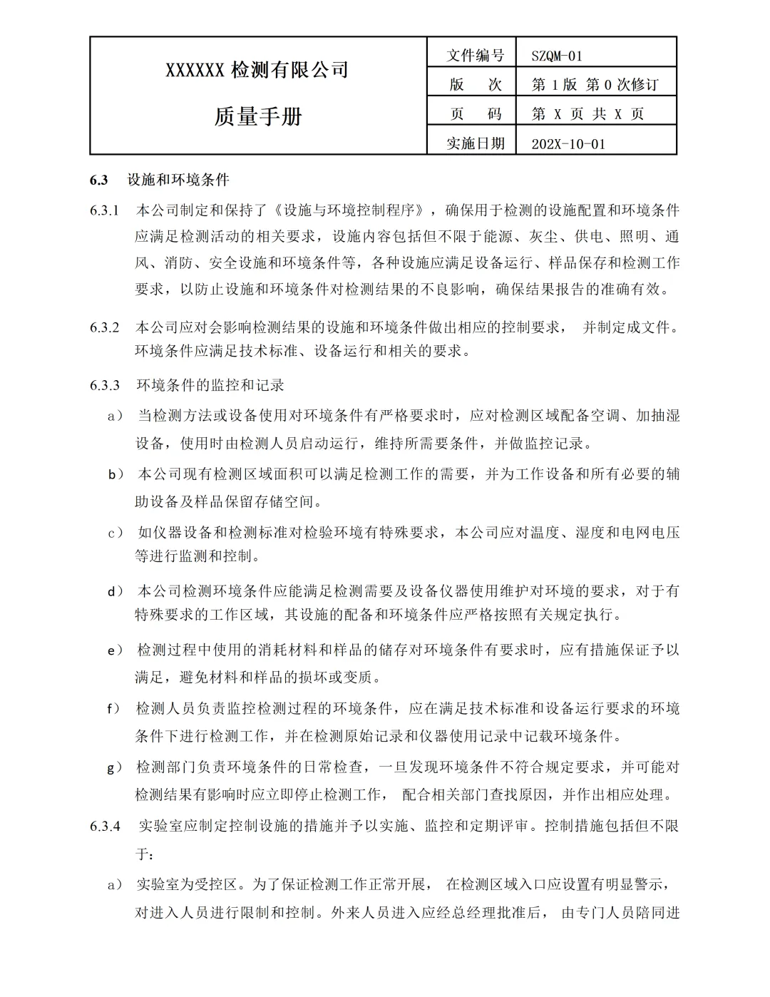 5、新版质量手册和程序文件(适合CMA/CNAS)模板一套 word 格式