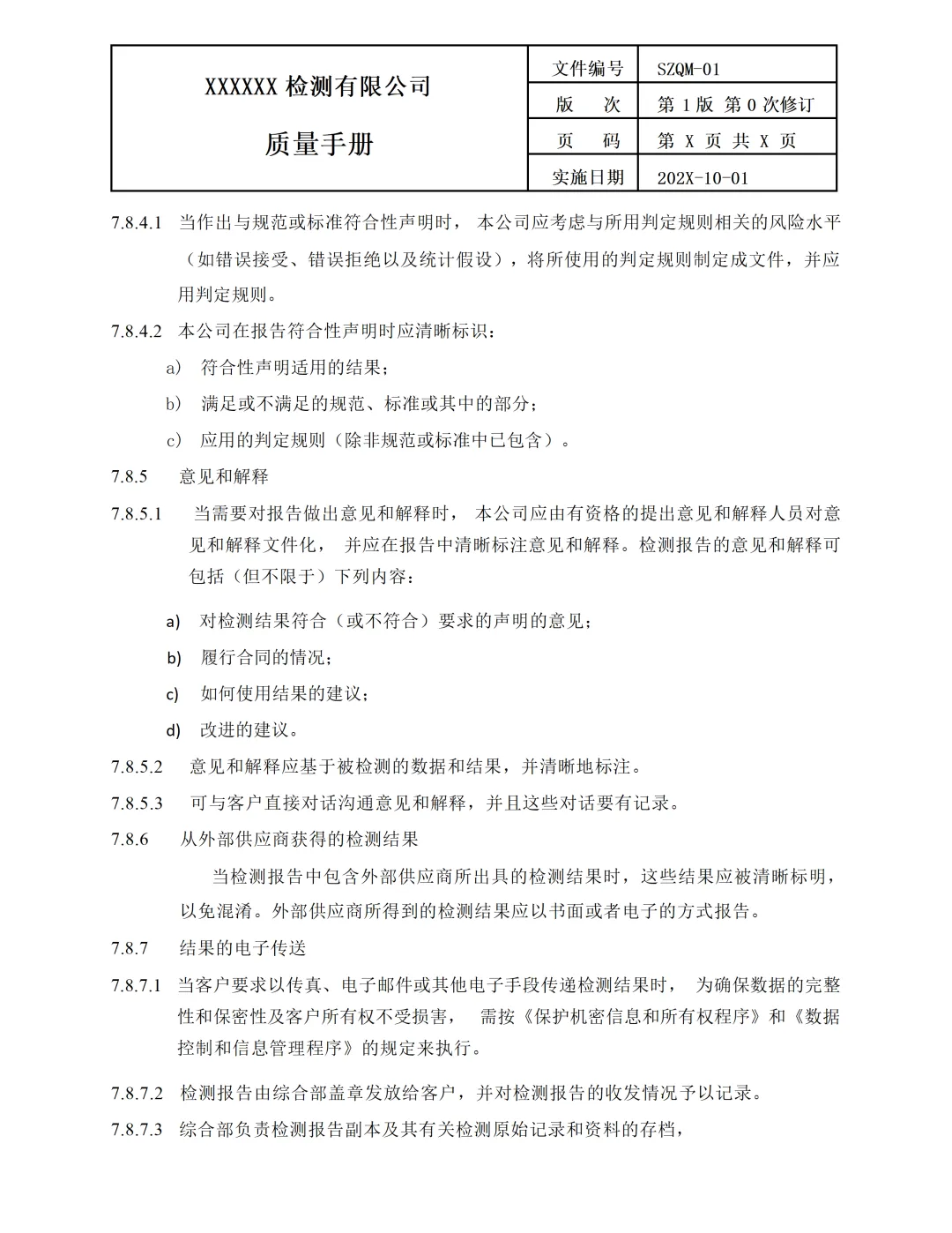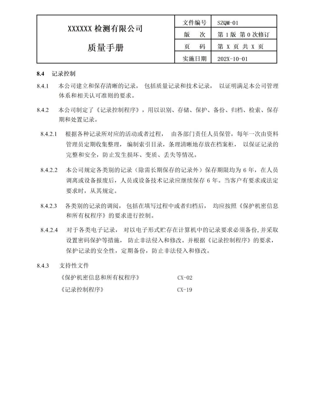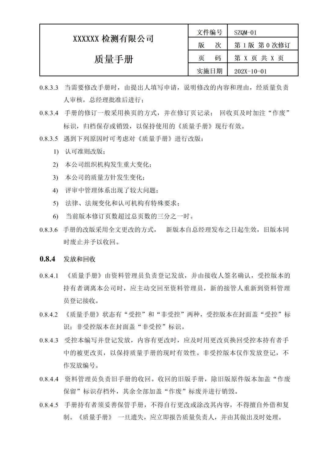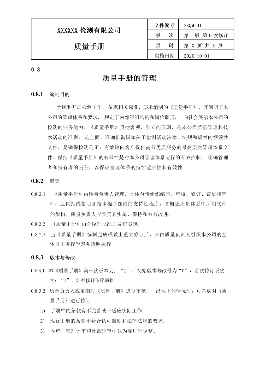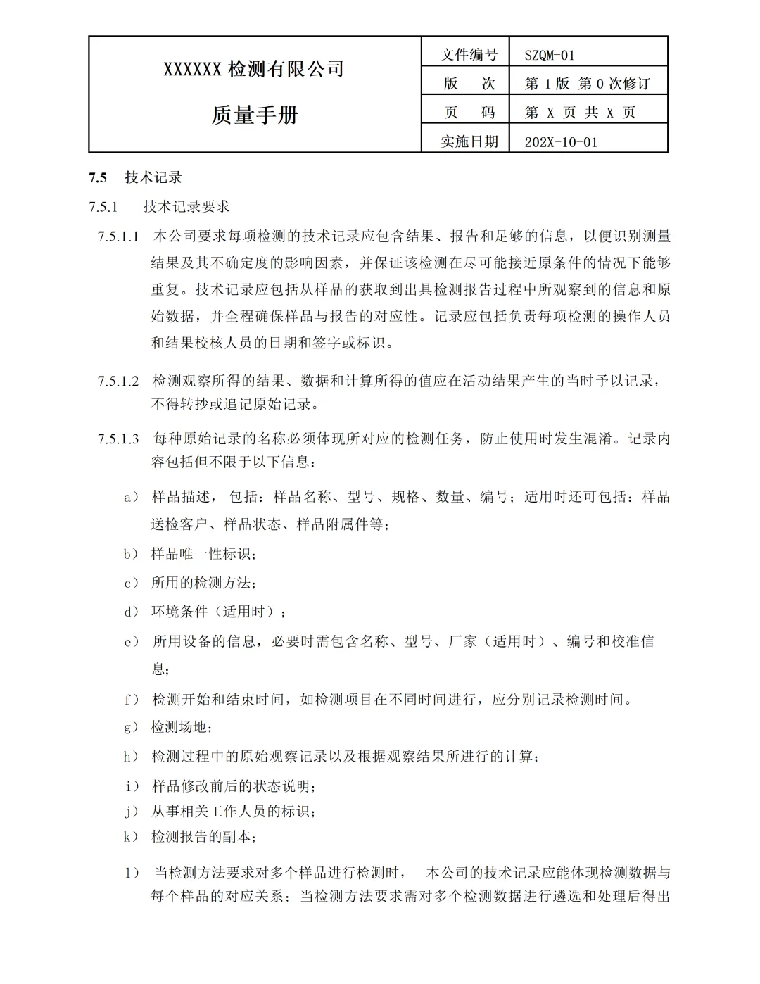 5、新版质量手册和程序文件(适合CMA/CNAS)模板一套 word 格式