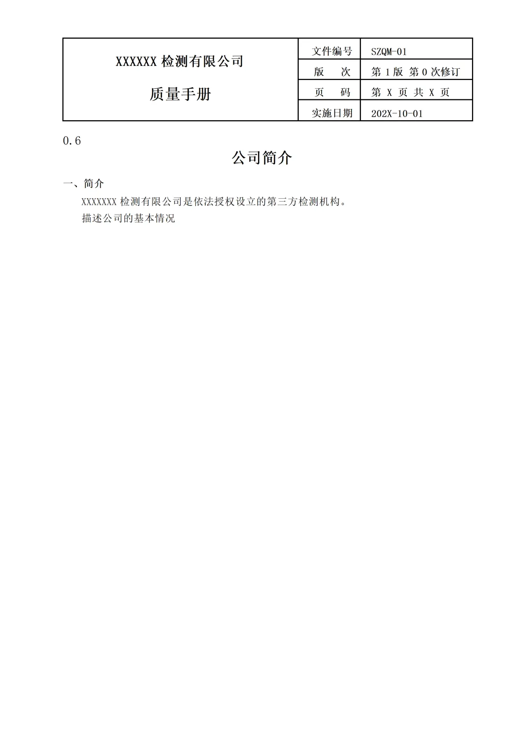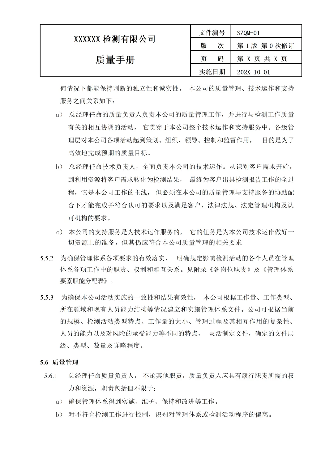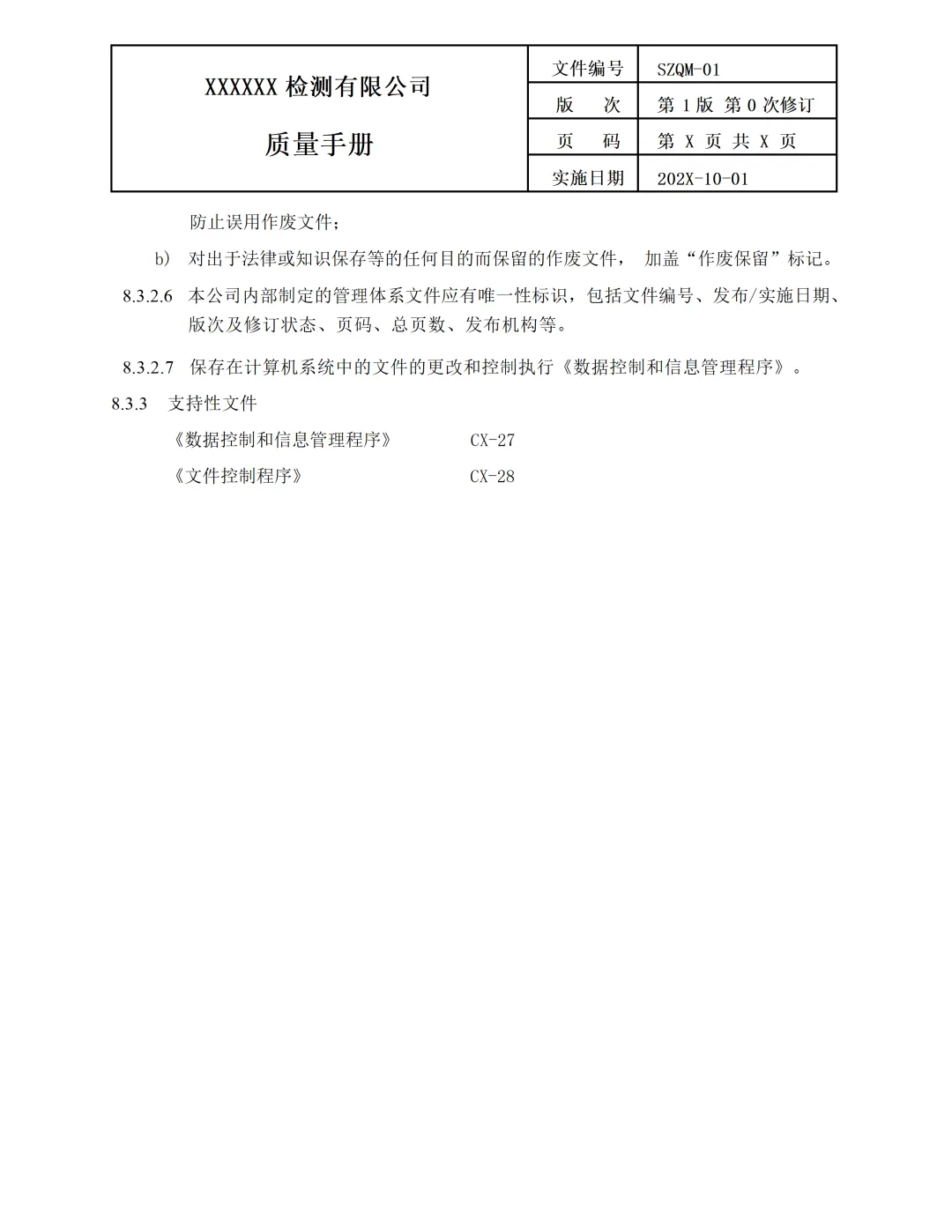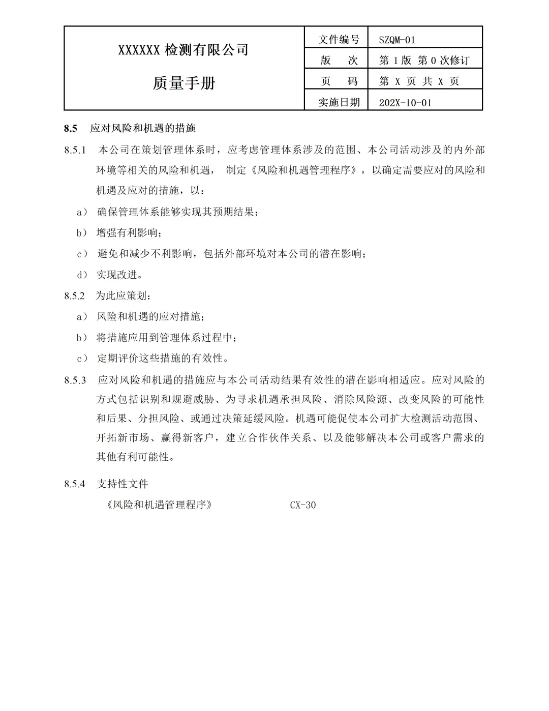 5、新版质量手册和程序文件(适合CMA/CNAS)模板一套 word 格式