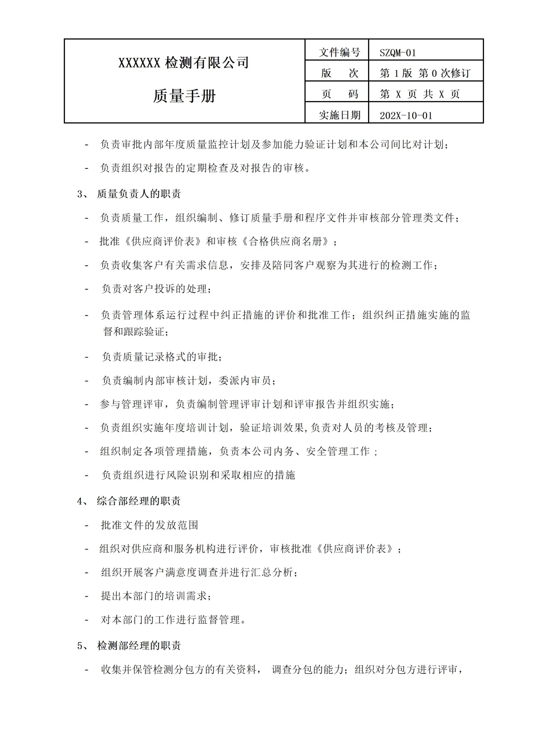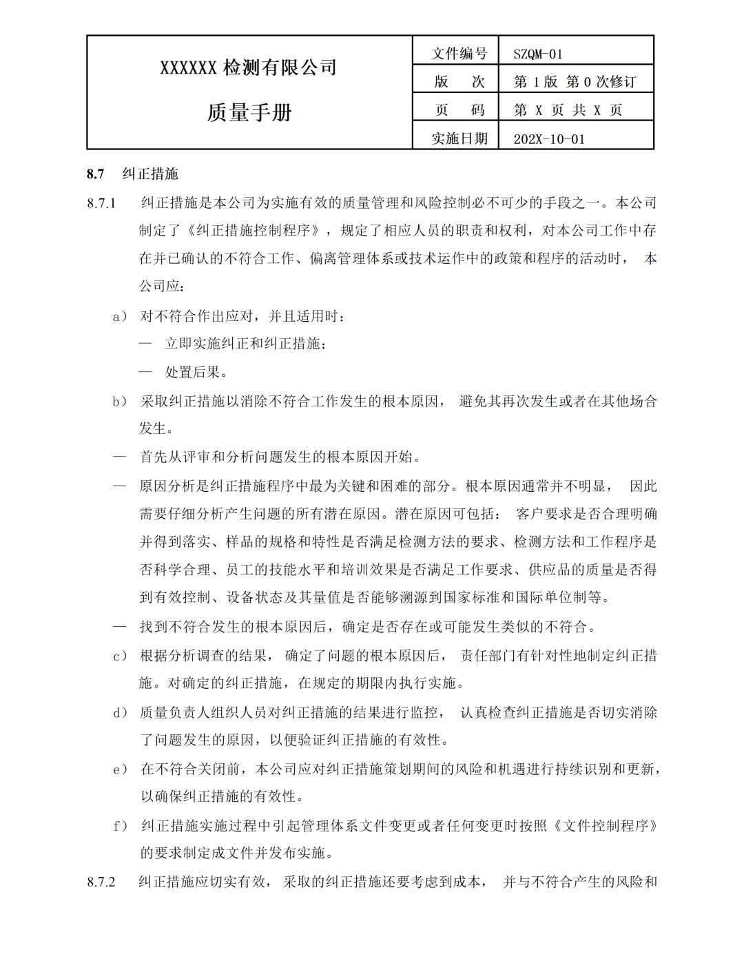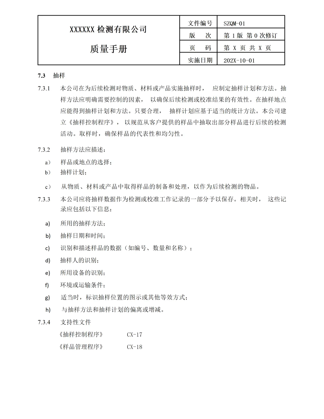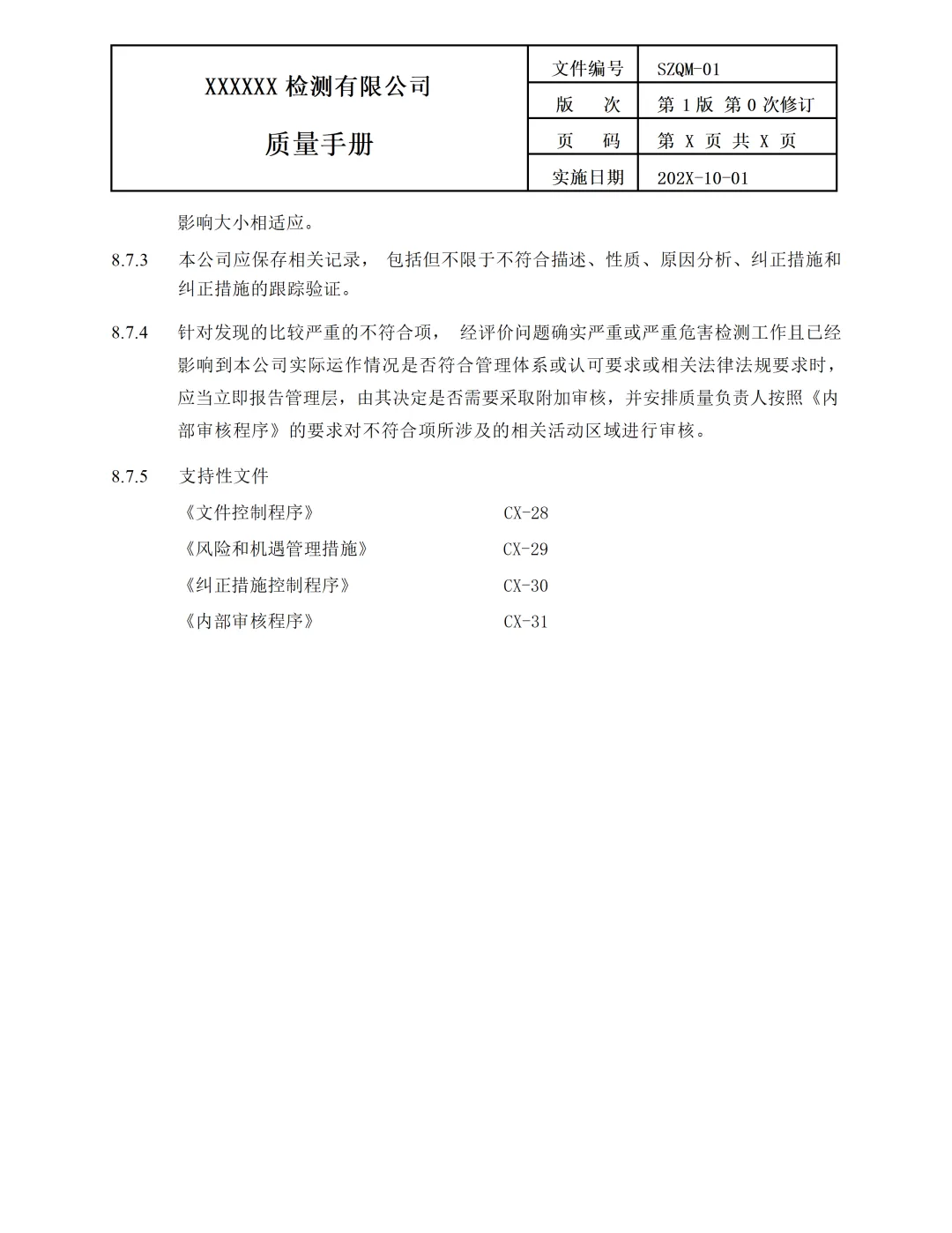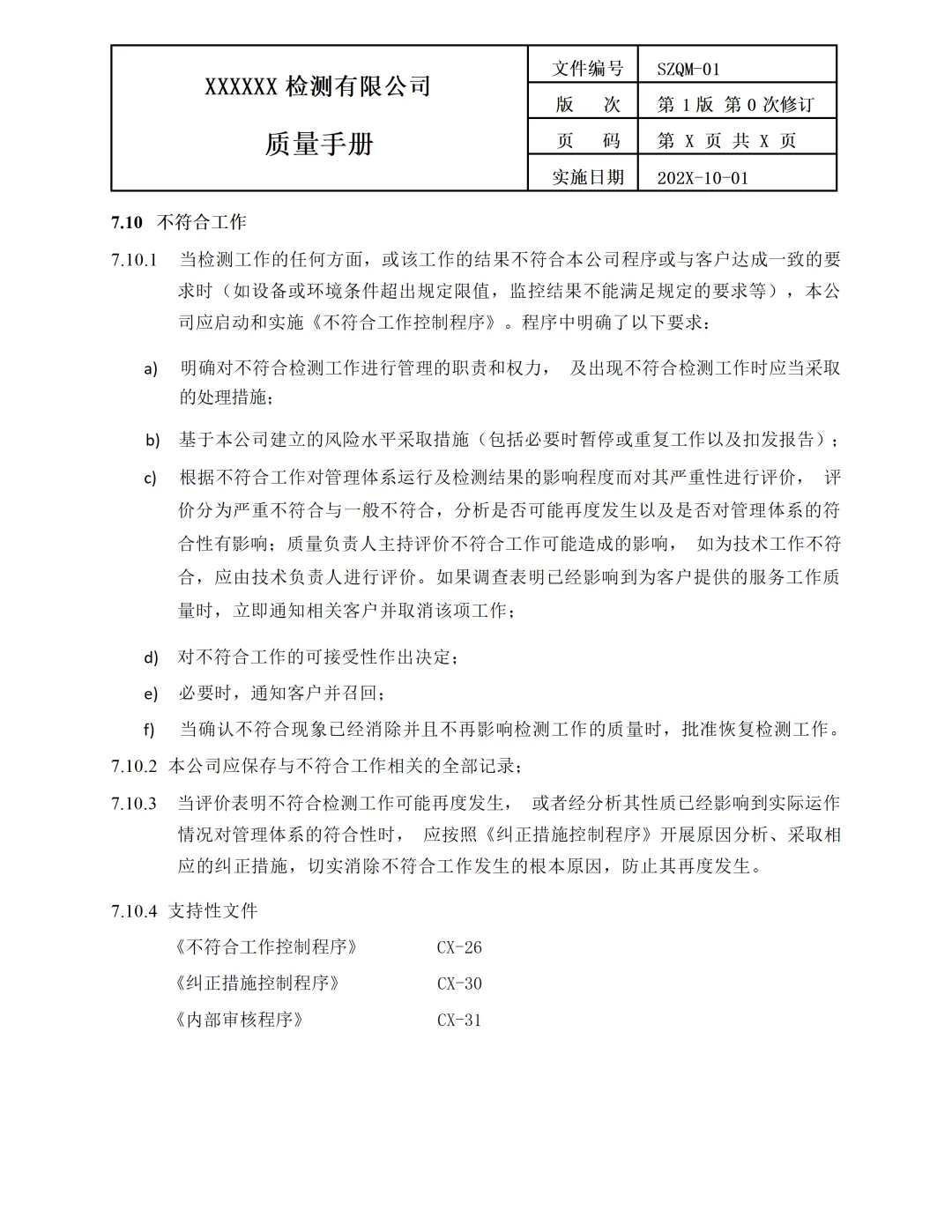 5、新版质量手册和程序文件(适合CMA/CNAS)模板一套 word 格式