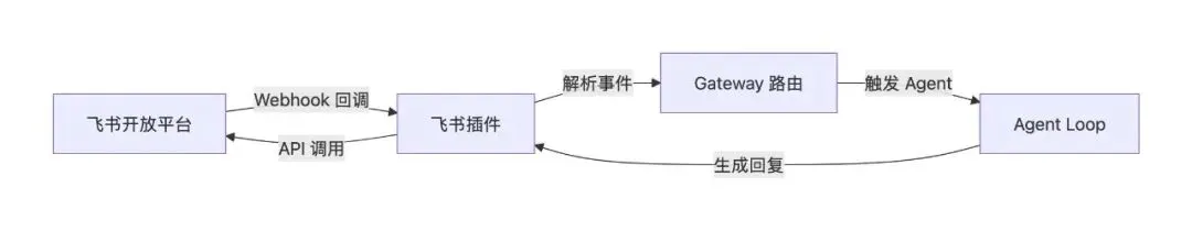 让我们以飞书插件为例,看看一个完整的 Channel 插件是怎么工作的。飞书作为 Extension 插件接入 OpenClaw,核心流程: