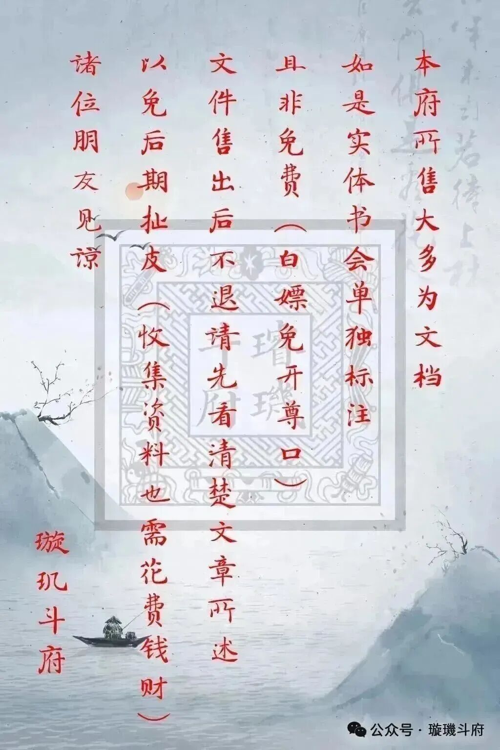 本府敬告:凡每日之间,本府或随缘馈赠文牍,无拘无束,一任尊意。若有需用者,敬祈私信相求,不必客套。心意但凭随喜,厚薄多寡,悉听尊便。唯望诸君以礼相待,言辞温恭;若出言不逊、举止无状,本府唯有婉拒,不复相予,尚祈海涵,勿见责焉。