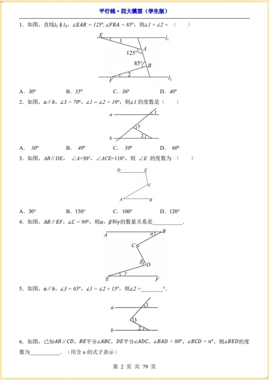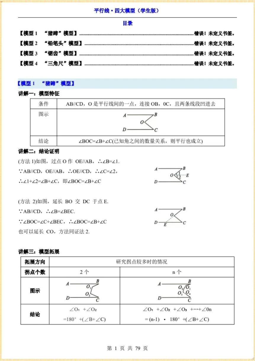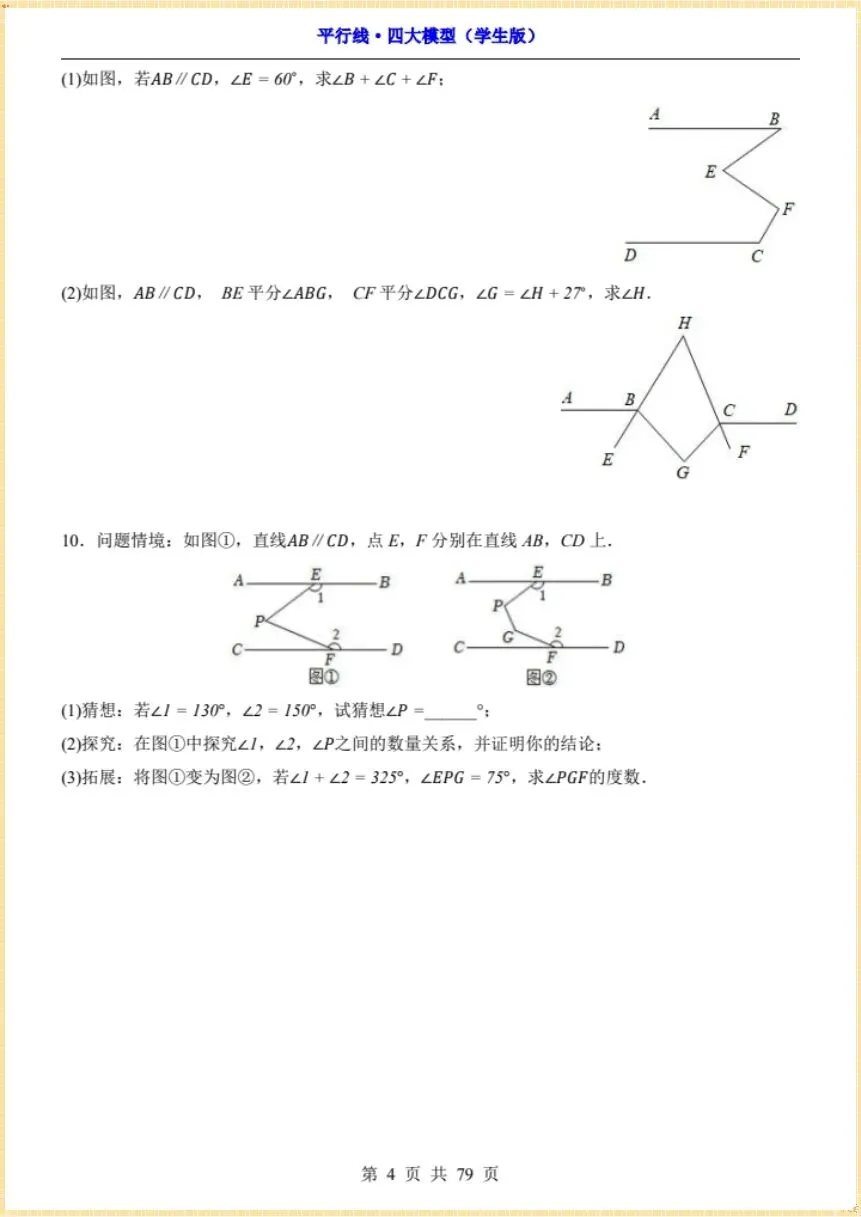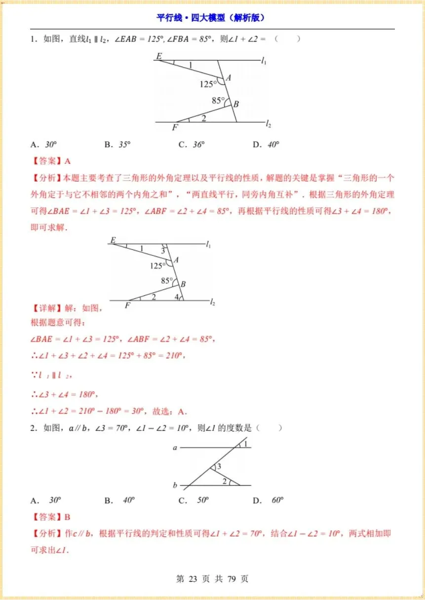 2026新《平行线·四大模型》,有完整电子版(学生版+解析版),可下载可打印