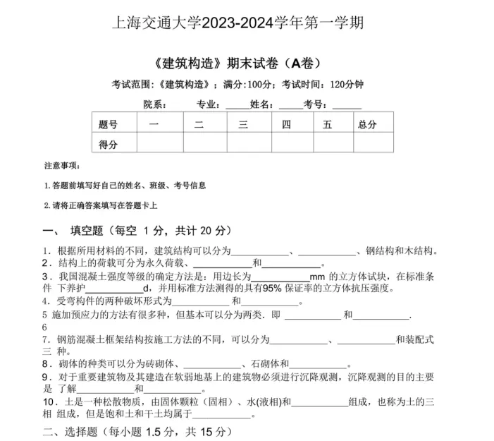 上海交通大学建筑构造期末试题,可打印 获取更多考研资料可加小编QQ:3542263029或者v信kyzlfx 先点“赞+在看”联系客服即可免费赠送公共课(政治英语数学)资料 其他院校陆续更新中…….有需要联系客服留言即可 更多真题资料会第一时间为大家推送 还有其他年份,可联系客服详询 01 部分截图如下🔥 温馨服务 免责申明:资料整理于网络如有侵权请告知删除 长按并识别下方二维码关注公众号,不定时发放考研福利哦 扫一扫添加微信好友,获取更多考研信息哦~