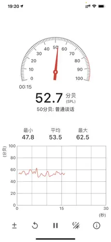 一款分贝测量工具,通过手机麦克风测环境噪声分贝,表盘和曲线双形式展示,可看最小 / 平均 / 最大分贝值及测量时间,支持设备专属校准,图表刷新平滑,操作简单易上手。