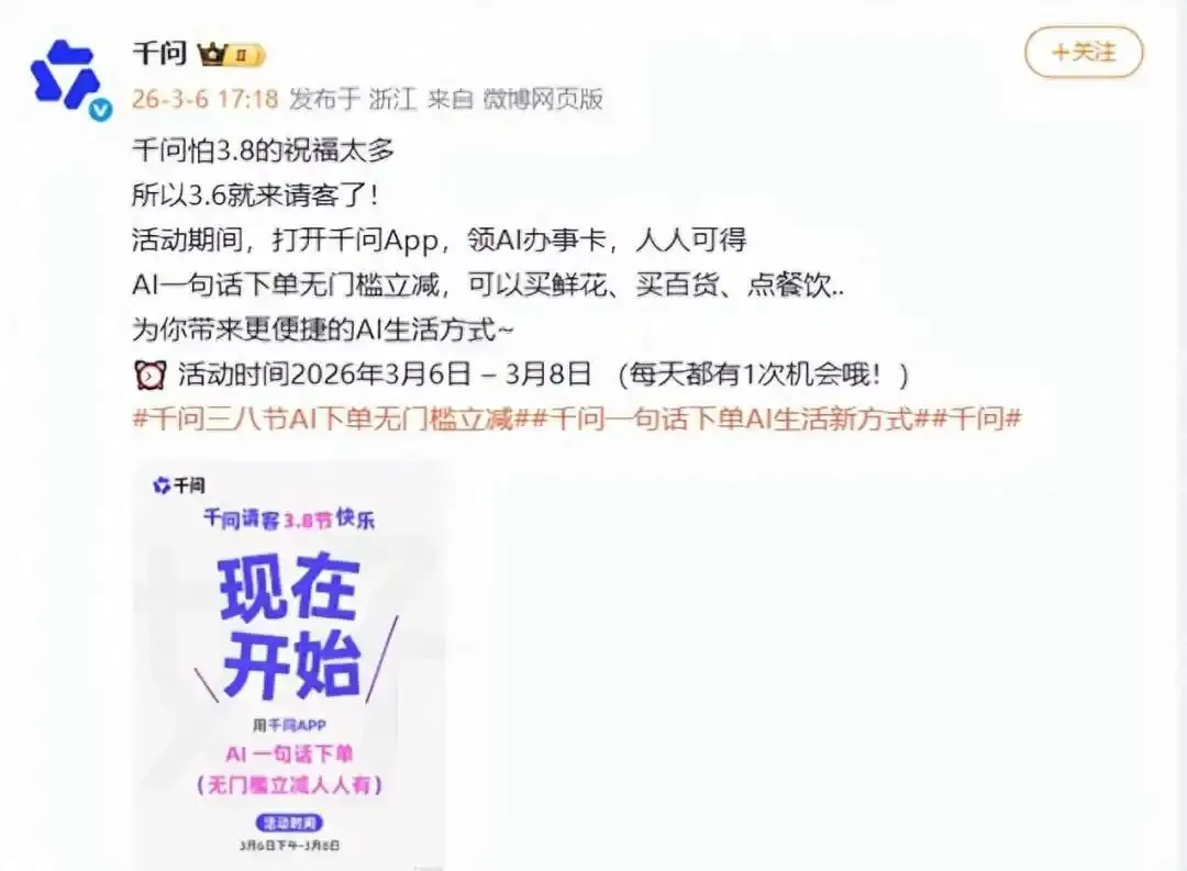 不过有人琢磨,发这么多优惠券到底值不值,毕竟去年春节他们砸了三十个亿搞免单,可千问的人倒不纠结这个,他们说让AI真能帮上忙,比啥都强,现在就看接下来两天,这波活动还能不能再热闹起来。