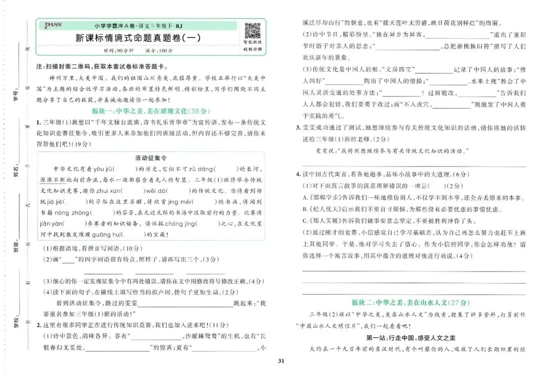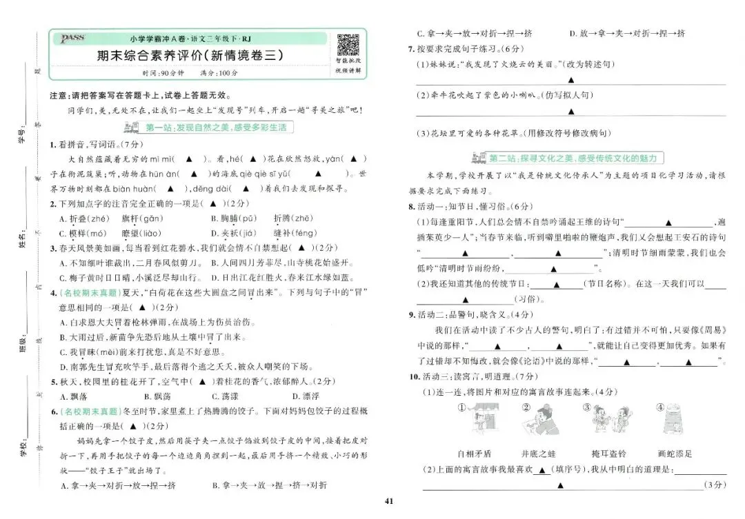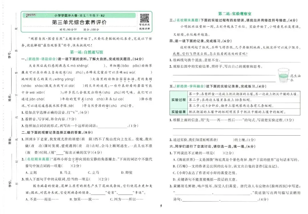 26春 · 三下语文《小学学霸冲A卷》(含电子打印版)